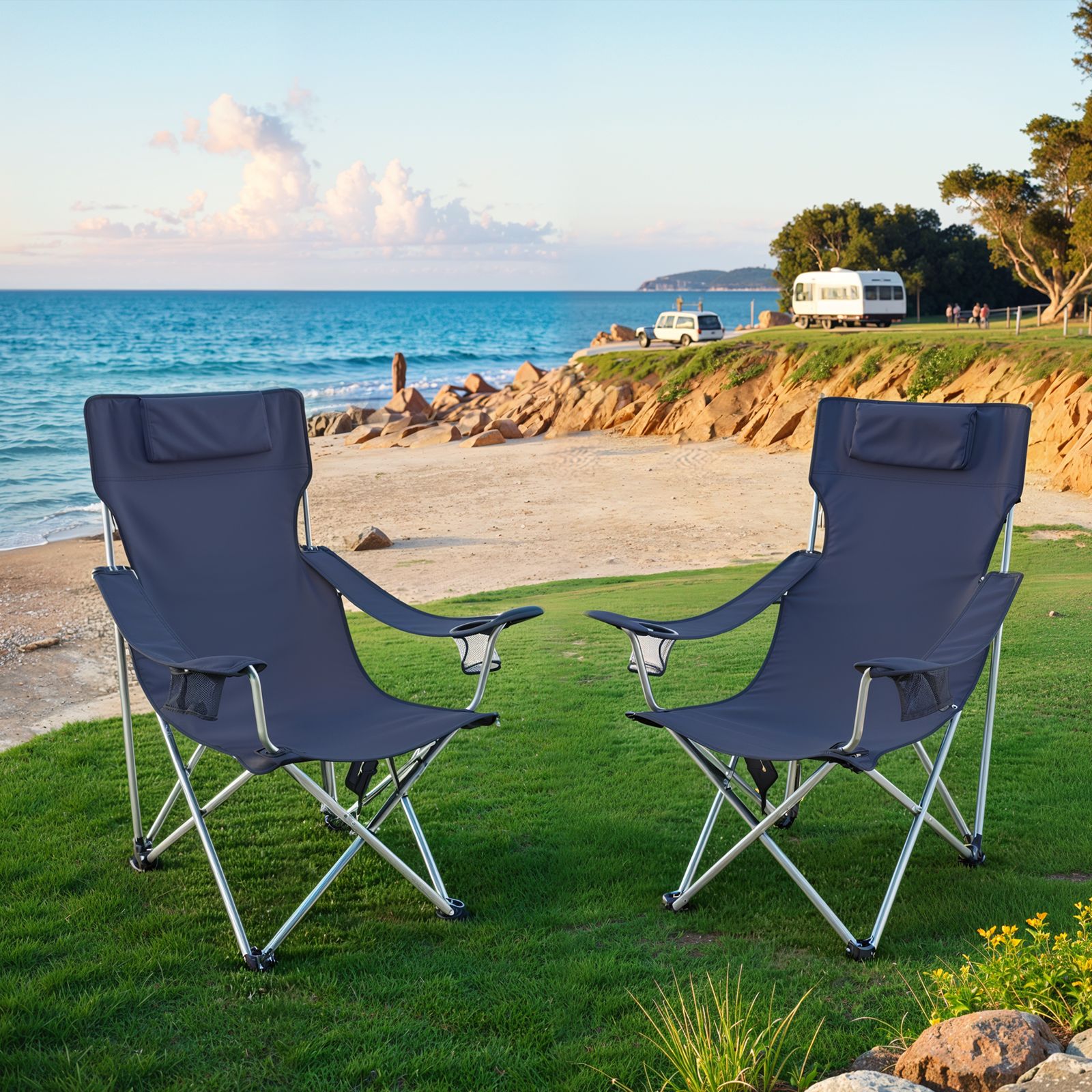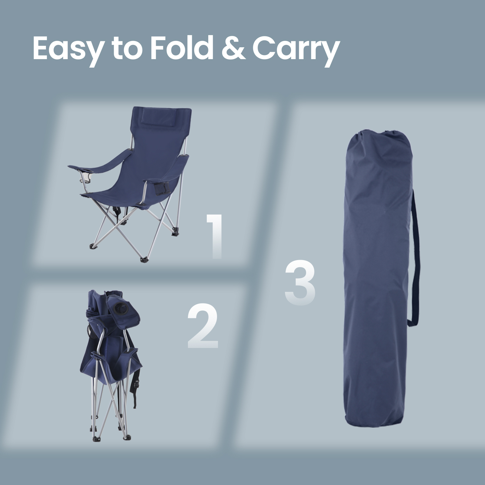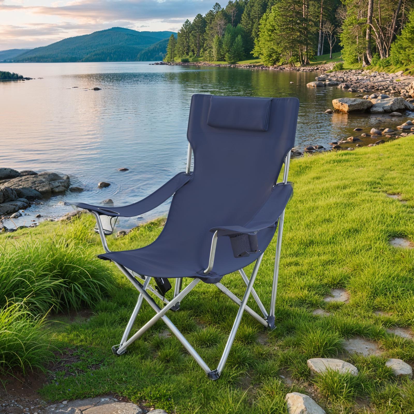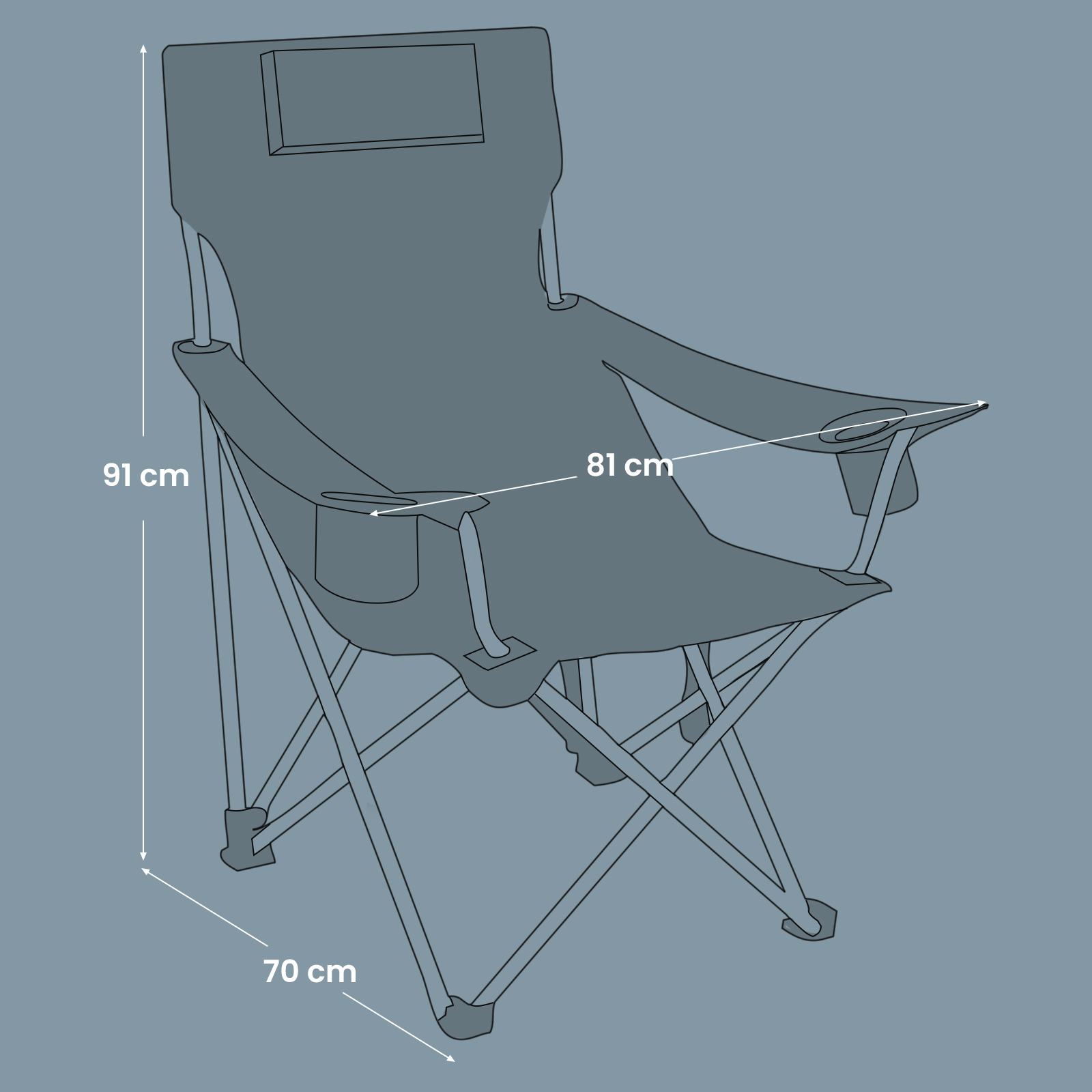 Escape the stresses of work and immerse yourself in nature. SONGMICS has developed a range of camping chairs to offer you comfort outdoors. Sit down on one of these chairs and relax your body and soul. Comfort in your carry-on After a long day full of activities, you’ll want to sit down on this outdoor chair, which has a soft headrest and practical armrests, and relax. Are you planning a trip and your destination is far away from the campsite? This chair weighs only 3.8 kg. Simply fold it up and take it with you! Wherever you want This folding chair is hard to beat in terms of versatility. It is perfect for camping trips. However, if you are a passionate angler, you can also take it with you to the river or the sea. This folding chair is also ideal if you want to have a picnic in the park with your family. Product details: – Color: Dark blue – Material: Iron frame, 600D Oxford fabric – Overall size: 81 x 70 x 91 cm (L x W x H) – Package size: 98 x 17 x 15 cm – Weight: 3.8 kg – Max. static load capacity: 150 kg Scope of delivery:- 1 x camping chair – 1 x carrying bag SONGMIES notes: – The maximum load capacity of the camping chair is 150 kg. Please do not exceed this maximum weight. – Please unfold the camping chair completely before use. – Protect the product from rain; do not expose the camping chair to strong sunlight for long periods of time.