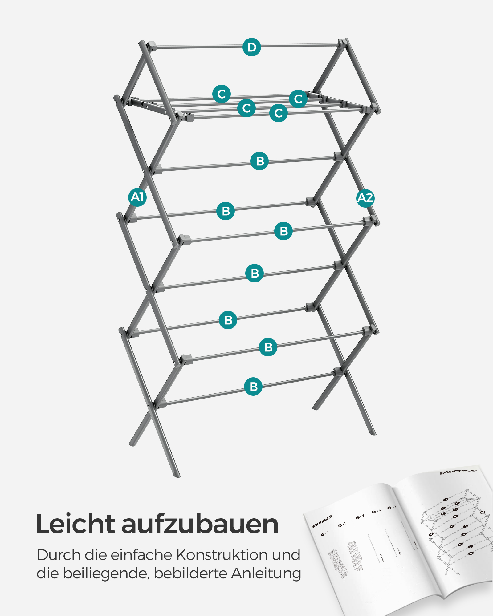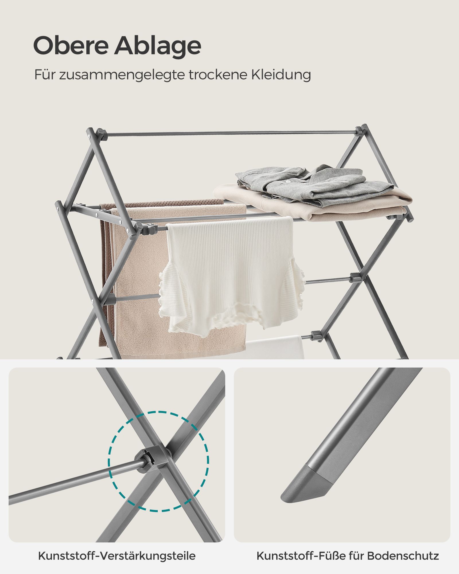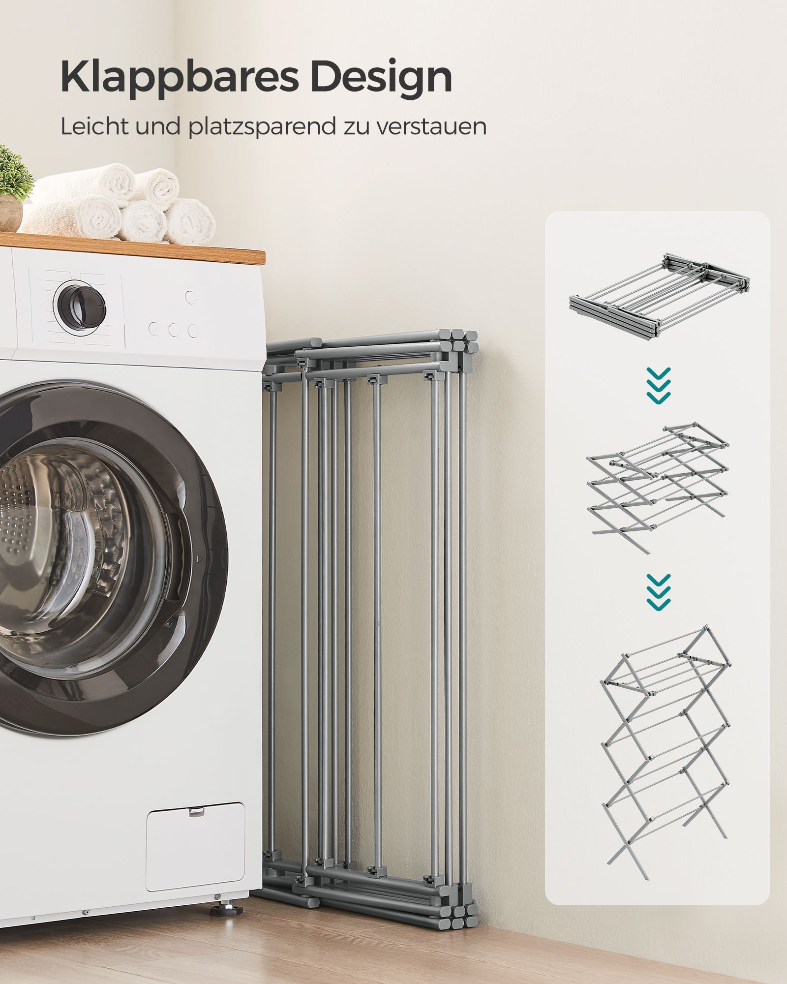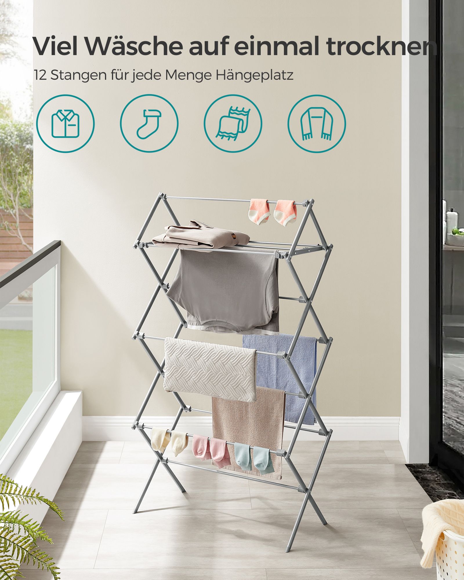 SONGMICS clothes horse, foldable standing dryer, compact, space-saving, steel frame, 37 x 75 x 135.1 cm, easy to assemble, for indoor and outdoor use