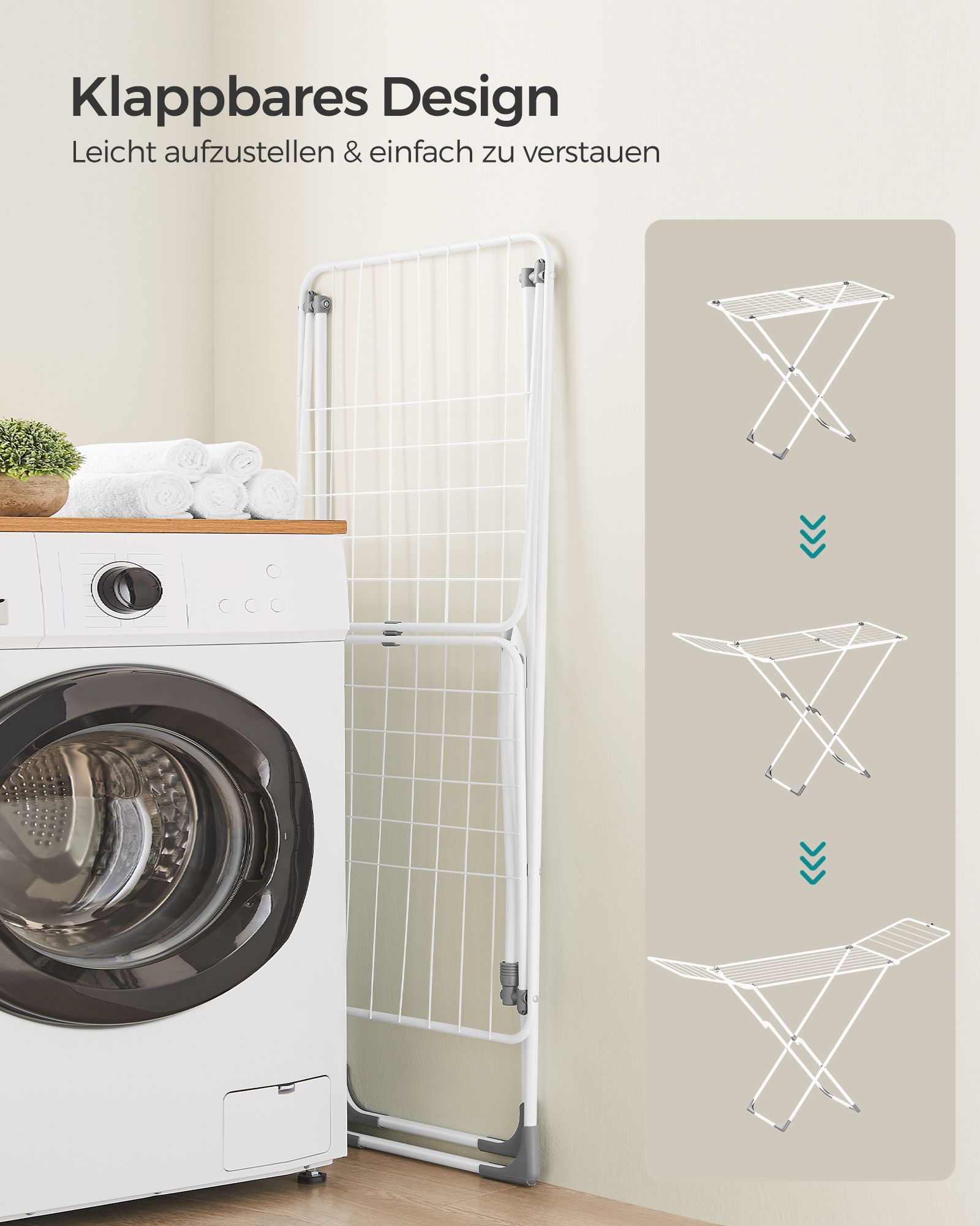 SONGMICS clothes horse, foldable standing dryer, wing clothes horse, free-standing, for indoor and outdoor use, for bed linen and clothing