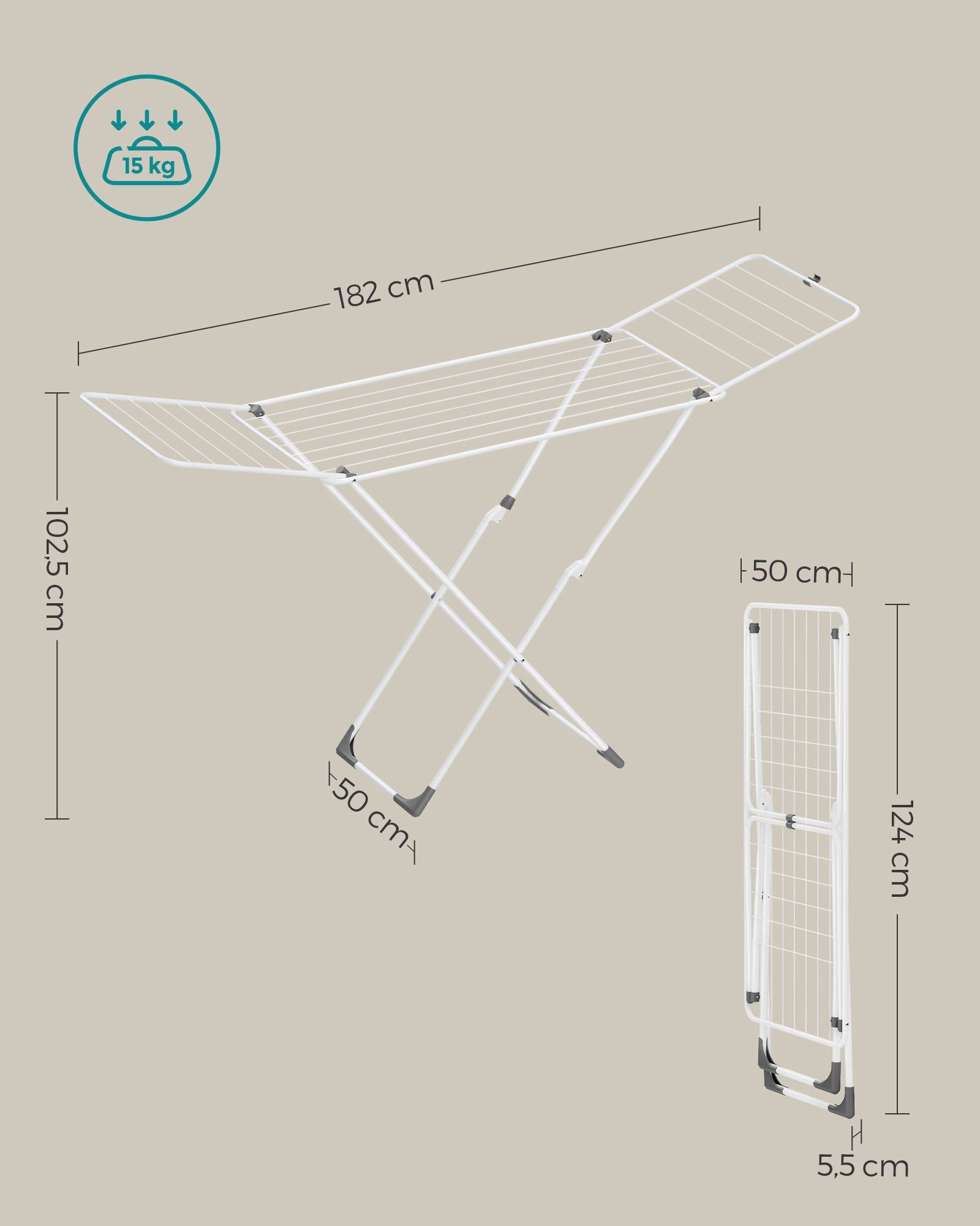 Size when folded: 5.5 x 50 x 124 cm (D x W x H)