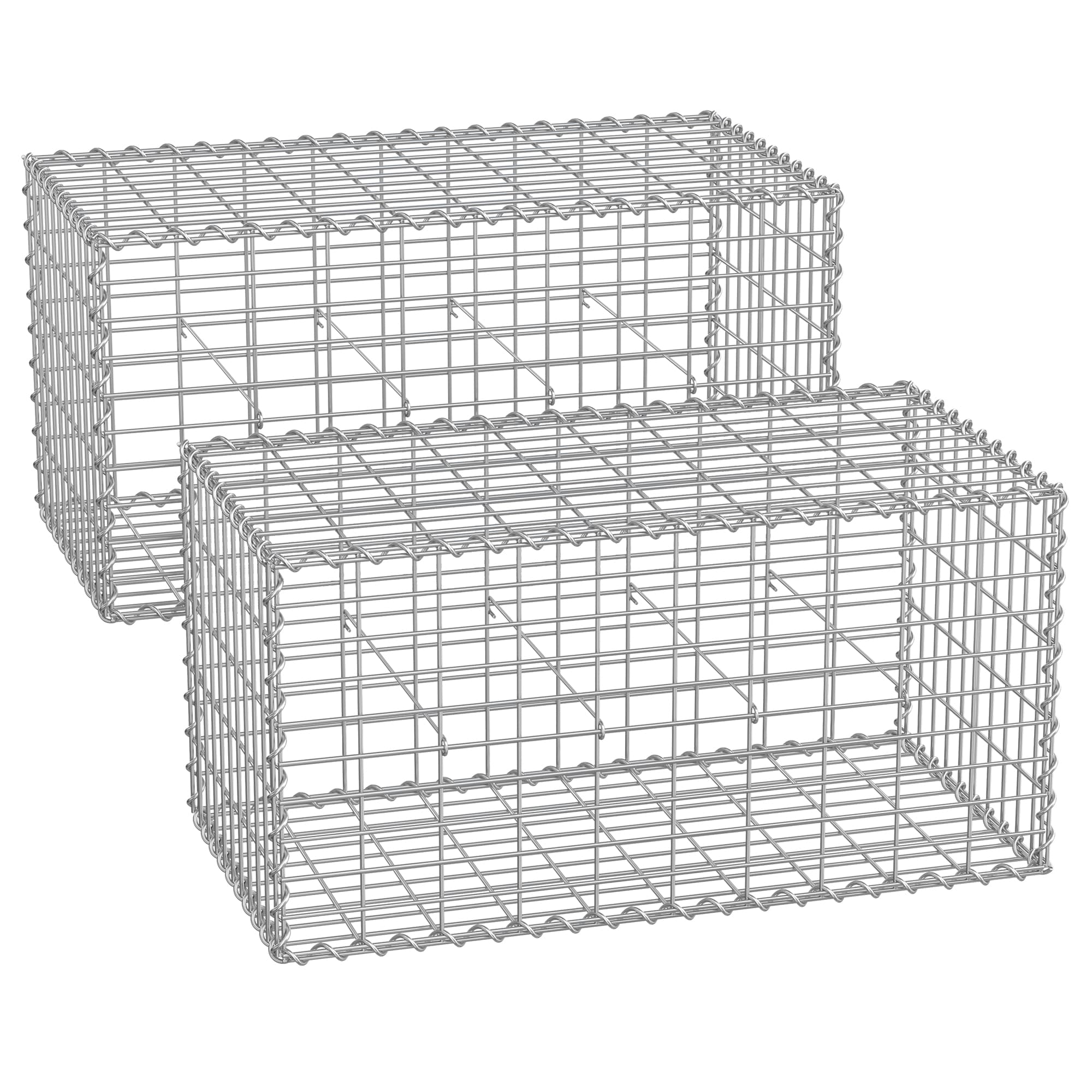 Gabion basket, metal stone basket with 5 x 10 cm mesh size for wall stones, galvanized, stone gabion wall, 100 x 50 x 50 cm, silver