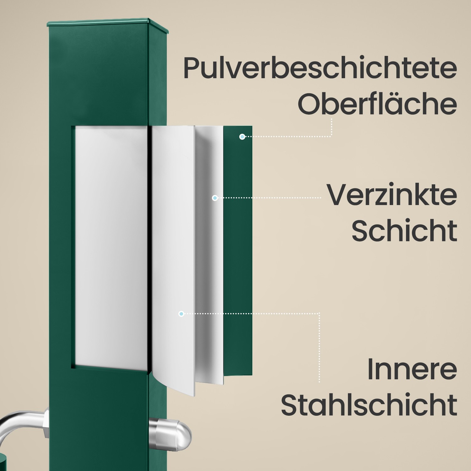 – Material: Galvanized steel, PP plastic handles, metal key, aluminum lock cylinder