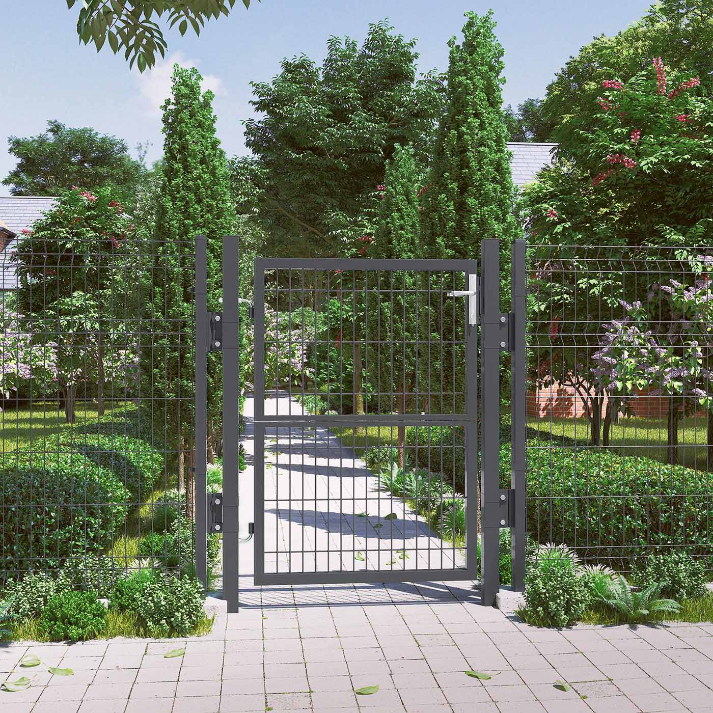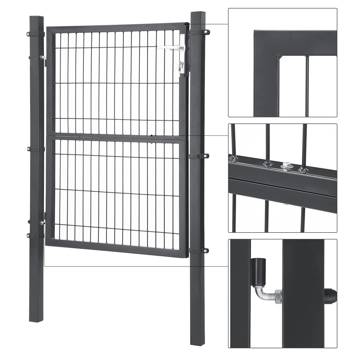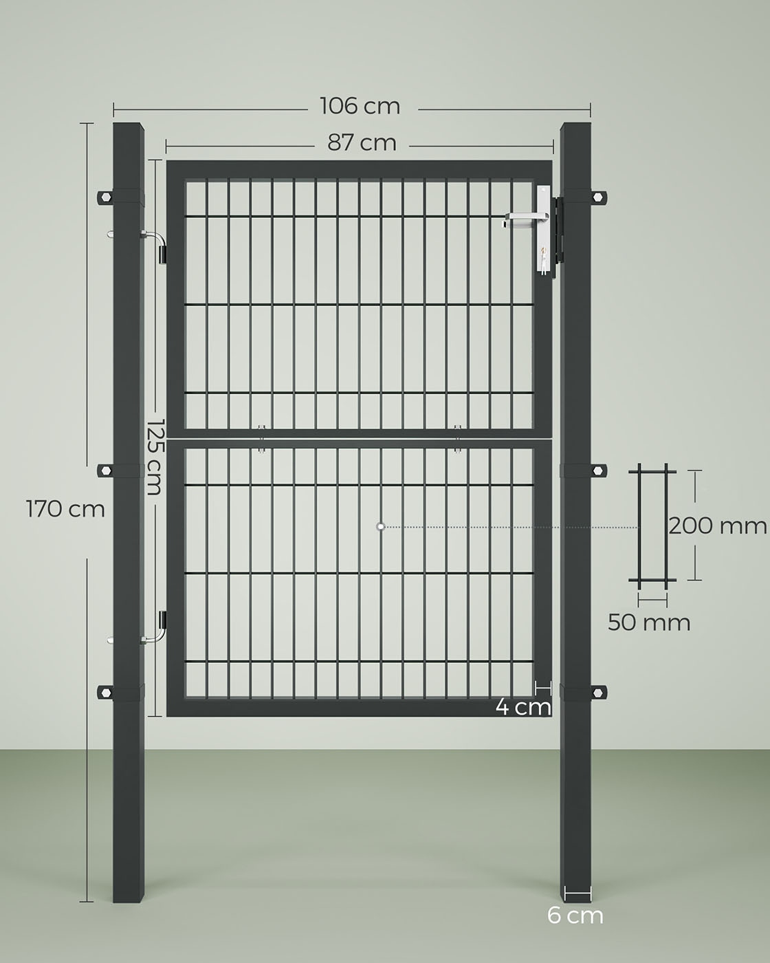 SONGMICS Garden gate made of galvanized steel, garden door, fence gate, yard gate, with lock, door handle, and key, 106 x 125 cm (L x H), green GGD175G
