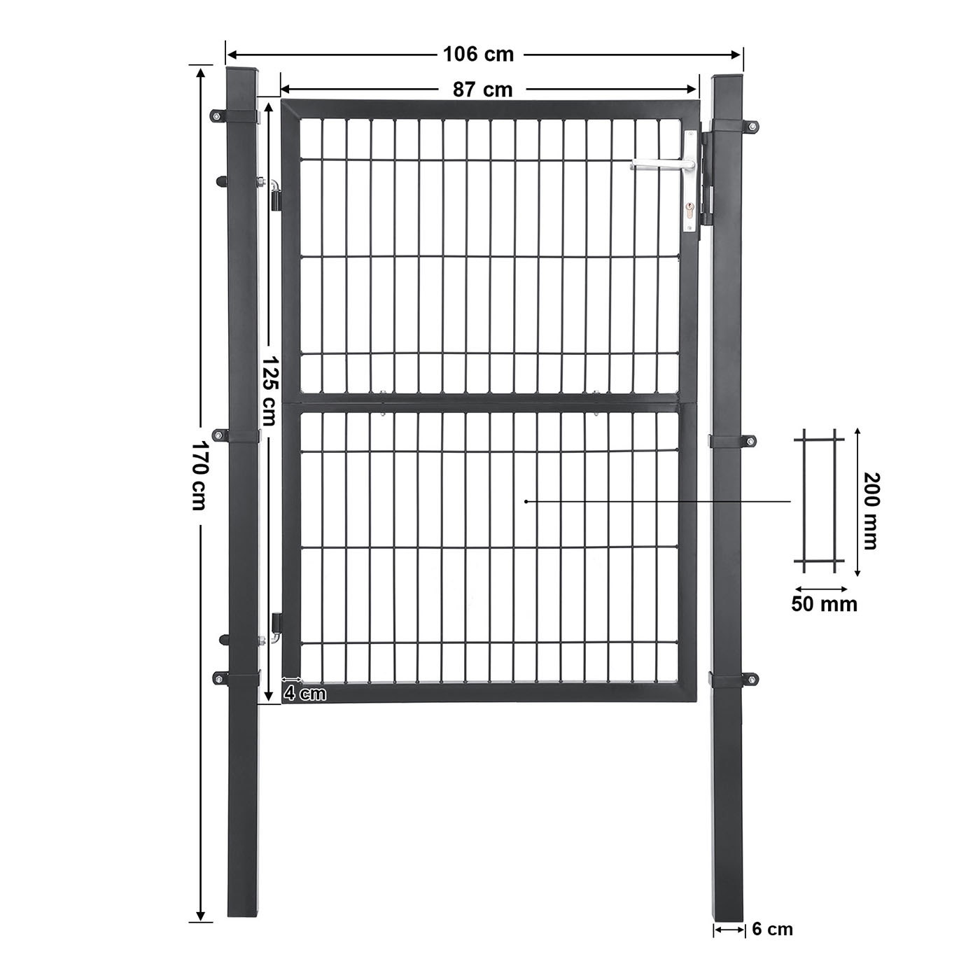– Overall dimensions: 106 x 6 x 170 cm (L x W x H)