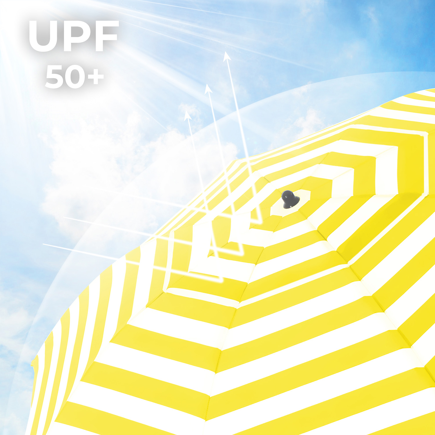 Enjoy the beautiful weather in the shade! The outdoor season has begun and it’s time to equip your garden, patio, or beach area with adequate sun protection: a parasol! When you finally reclaim your outdoor space after long, cold winter days and invite your friends over for a barbecue, it’s the perfect time to use your new parasol! The “must-have” for summer This parasol can be bent on both sides, so you can adjust it to the time of day and the angle of the sun. The diameter of the parasol is 1.8 meters and the height is 2.3 meters. This means that 3 to 4 people can fit under the sunshade. The pole of the parasol is made of stainless steel. In addition, the polyester cover offers excellent UV protection up to UPF 50+. It also has several ventilation openings to allow wind to pass through, ensuring that the garden parasol remains stable. Product details:- Material: Powder-coated steel, 160 g/m² polyester – Height: 2.3 m – Length of canopy: 2 m – Horizontal diameter: 1.8 m – Ø parasol pole: 22/25 mm, wall thickness: 0.5 mm – Weight: 2 kg Scope of delivery:- 1 x parasol – 1 x carrying bag SONGMS notes: – A parasol base is not included. – Close the parasol at night and in strong winds. – It is not recommended to use this parasol in rainy weather.