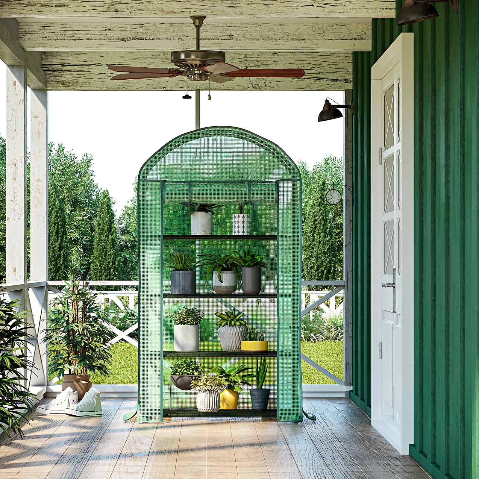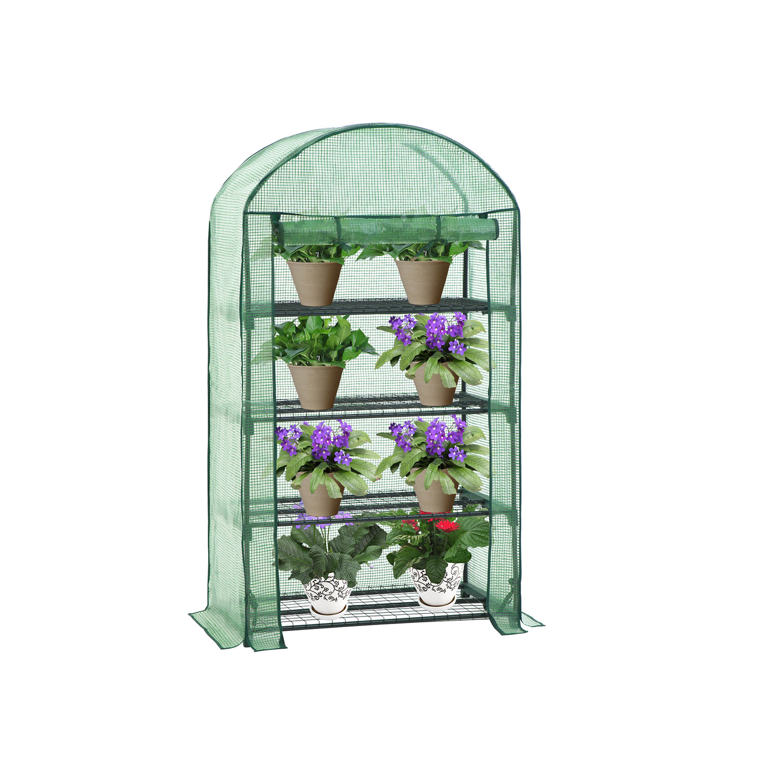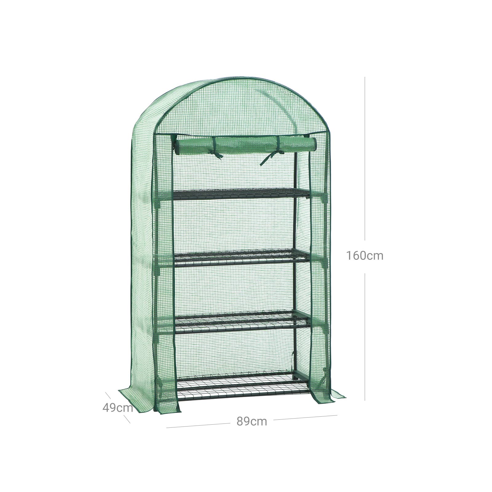 The sturdy foil greenhouse looks great in your garden or on your balcony and offers perfect protection for your plants in every season! They are optimally protected from wind, rain, sunlight, and bird damage, and the special mesh foil also promotes optimal growth for your plants. The frame and tarpaulin make a very sturdy impression. Tear-resistant mesh tarpaulin made of PE, very wear-resistant, durable, and frost-resistant. When not in use in summer, the mesh tarpaulin can be removed, washed with water, and then stored properly. Product details: – Frame: powder-coated steel tubes (ø 16 mm; thickness 0.32 mm) – Cover: PE mesh tarpaulin (140 g/m²) – Mesh base: iron wire – Dimensions: 89 x 158 x 69 cm (W x H x D)- Door dimensions: 49 x 136 cm- Floor space: 89 x 69 cm (approx. 0.34 m²)- Net weight: approx. 6 kg- Color: green- Load capacity of each mesh panel: 15 kgScope of delivery:- 1 x greenhouse (foil, metal tubes, 4 x mesh base and other accessories) – 1 x instructions