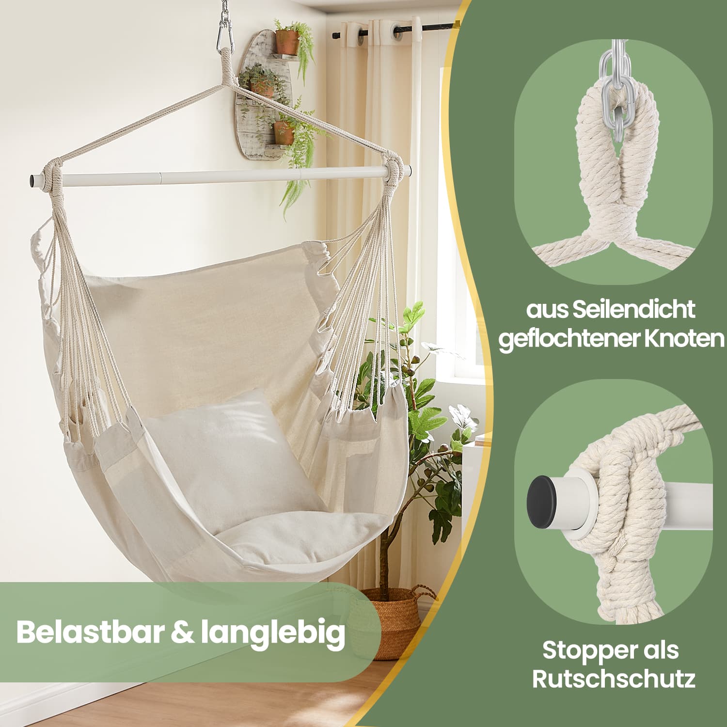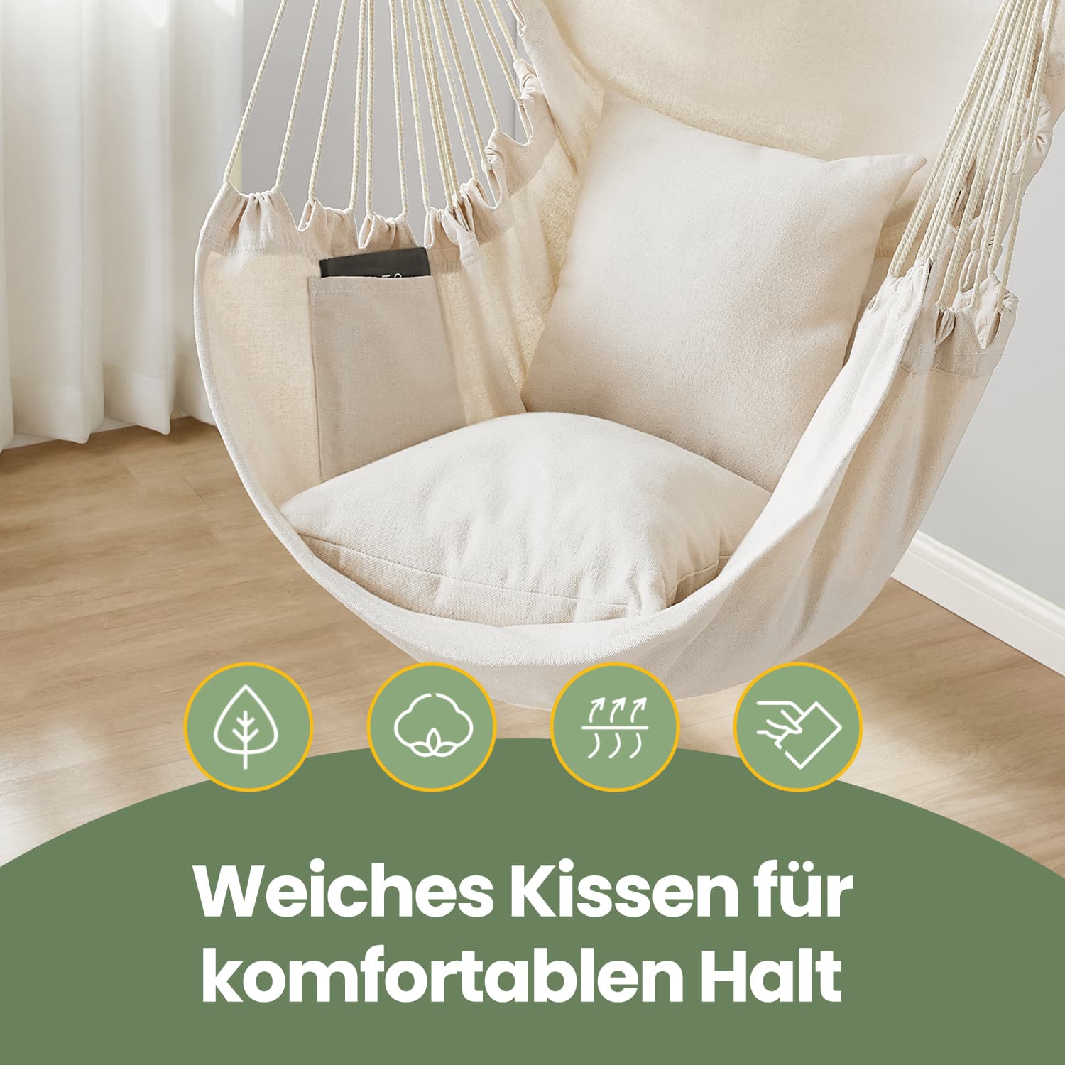 SONGMICS hanging chair, hanging swing with 2 cushions, hanging chair