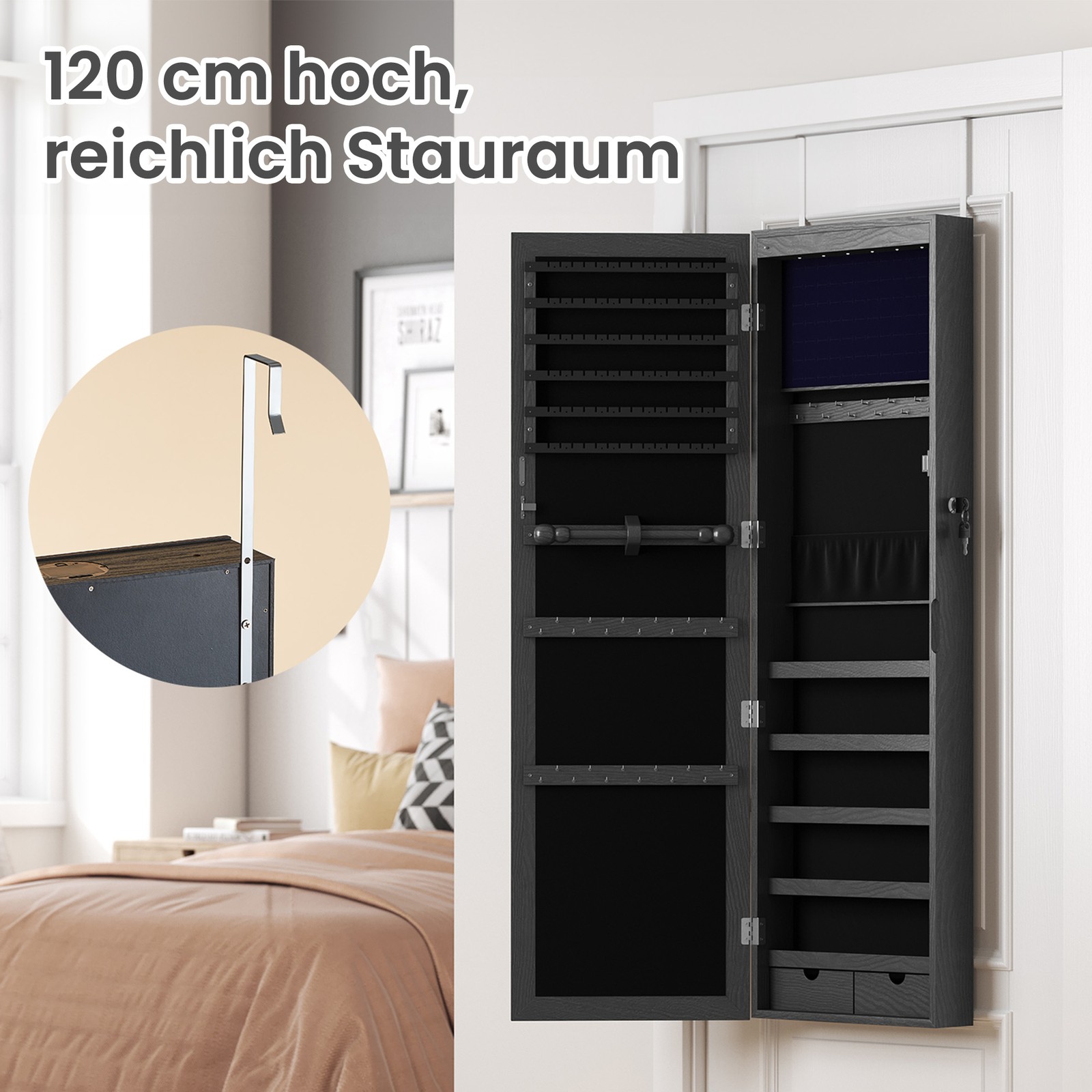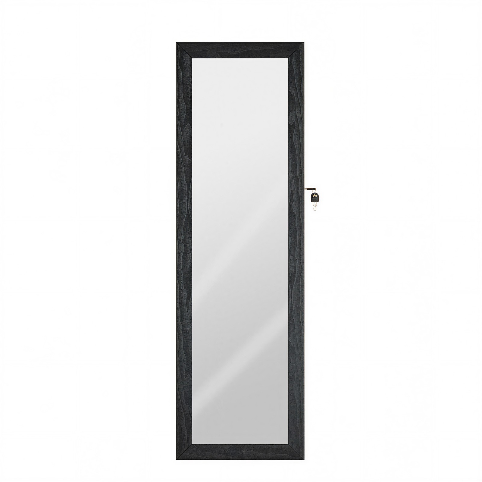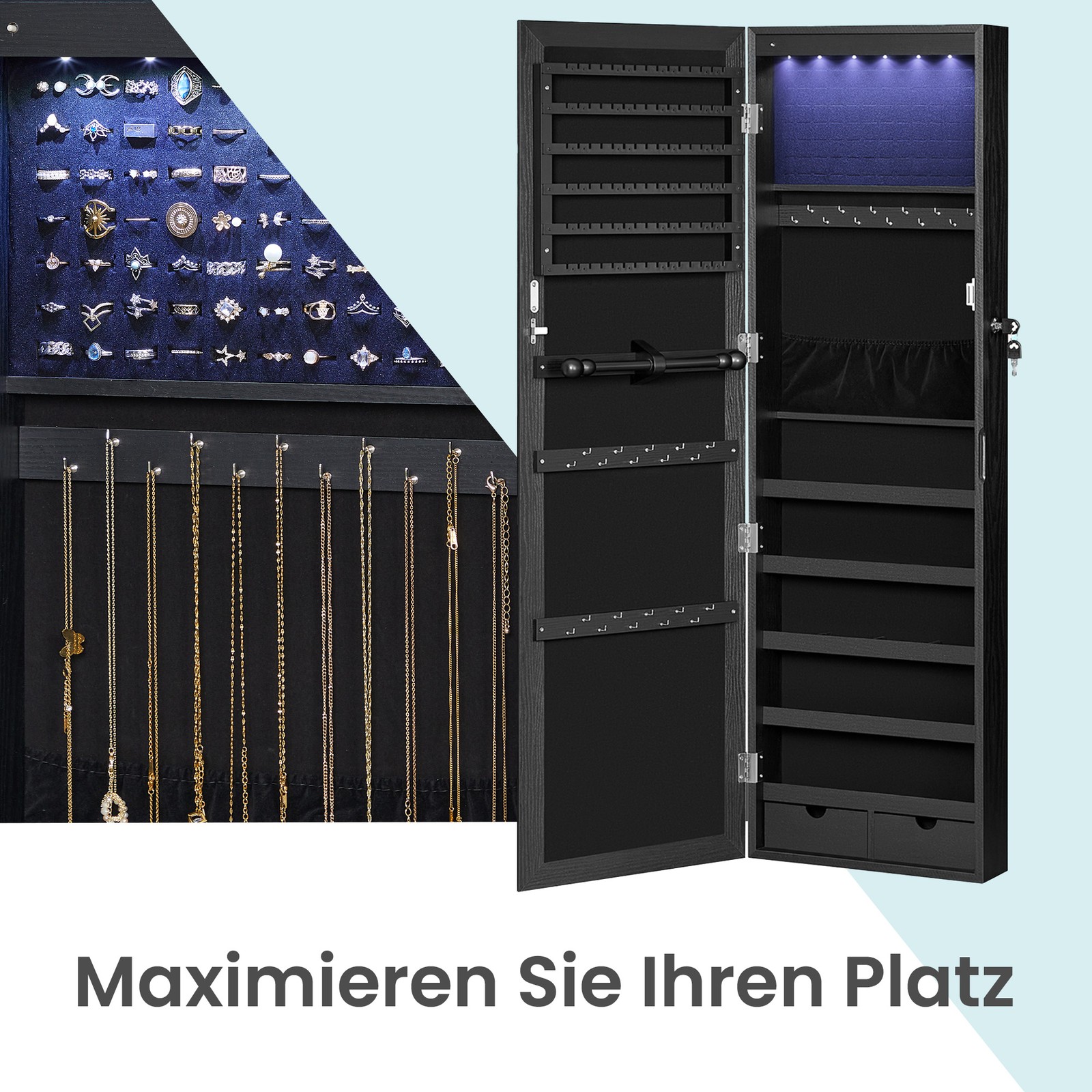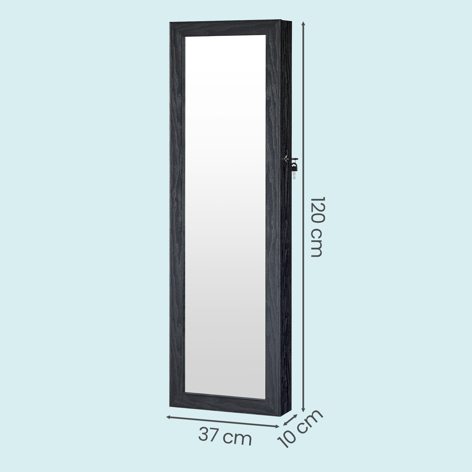 SONGMICS hanging jewelry cabinet, lockable mirror cabinet, wall cabinet with mirror and numerous compartments, wall mounting, hanging on the door, for chains, earrings, black JJC093B01