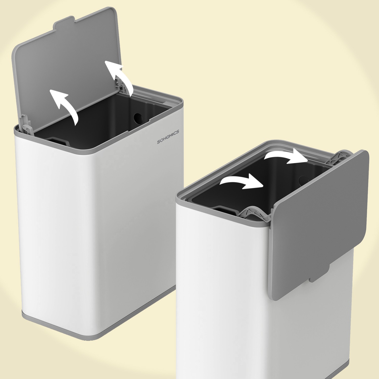 – Material: Outer container made of steel, inner bucket made of PP plastic, base made of ABS plastic