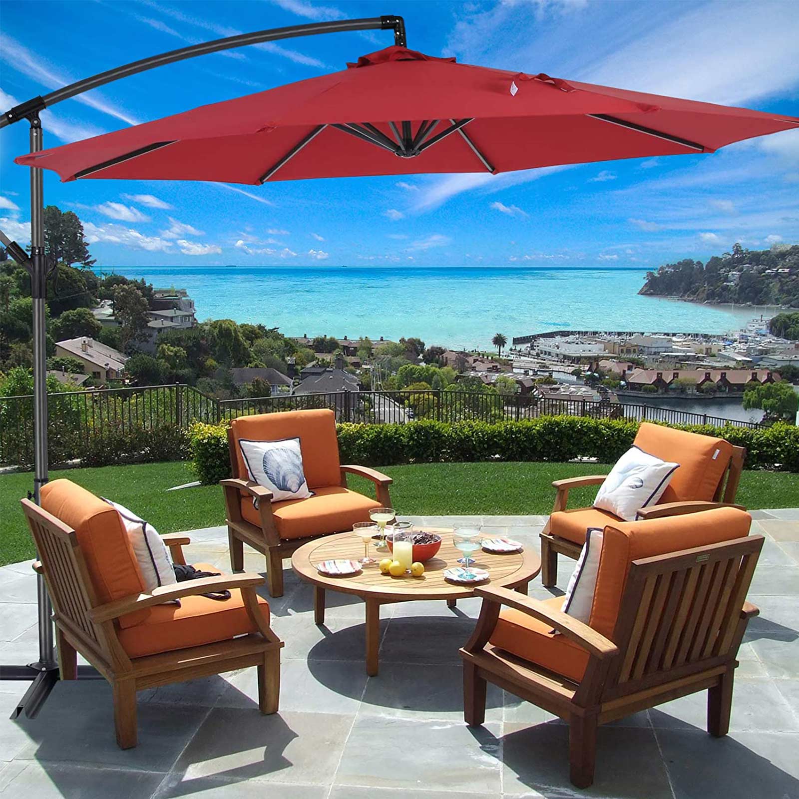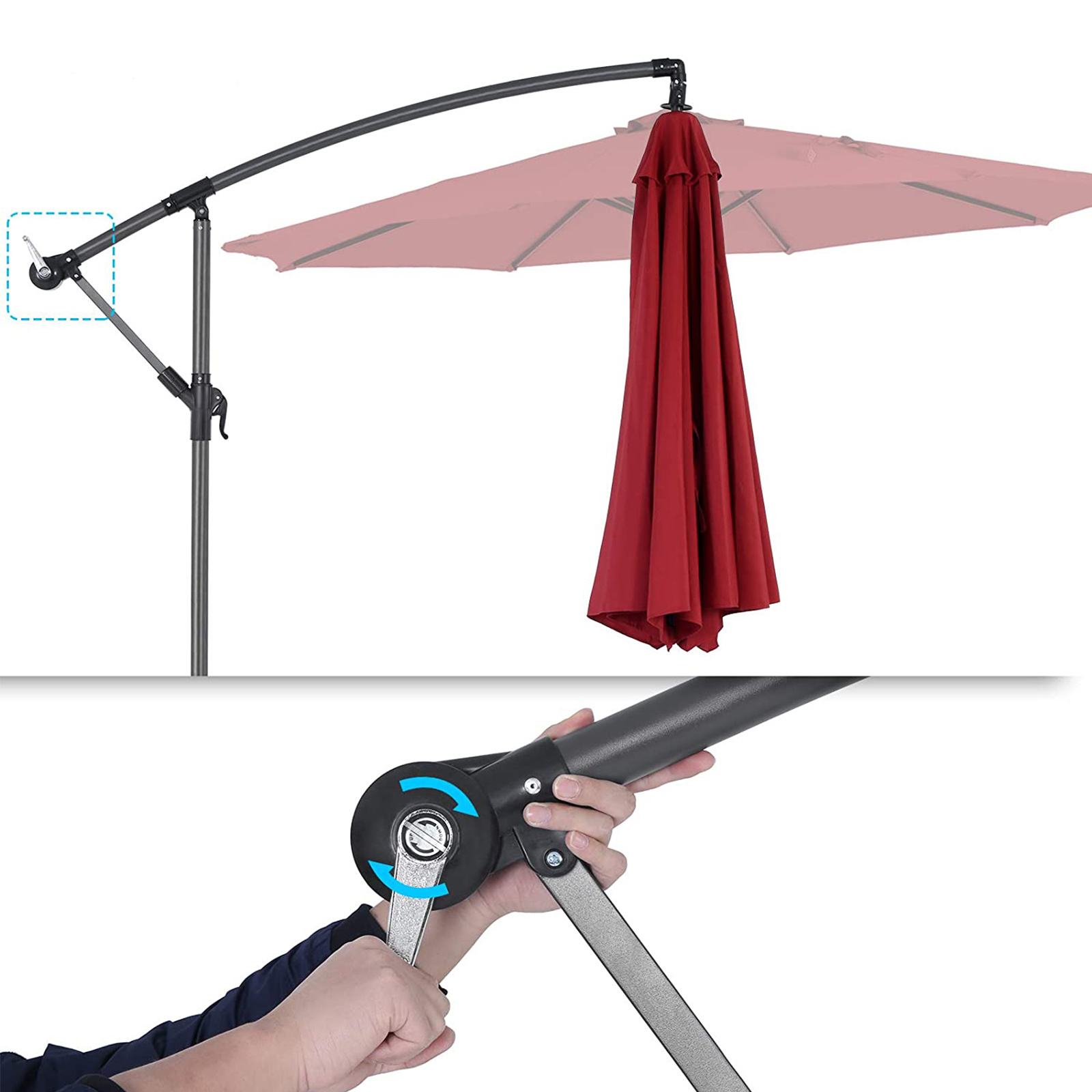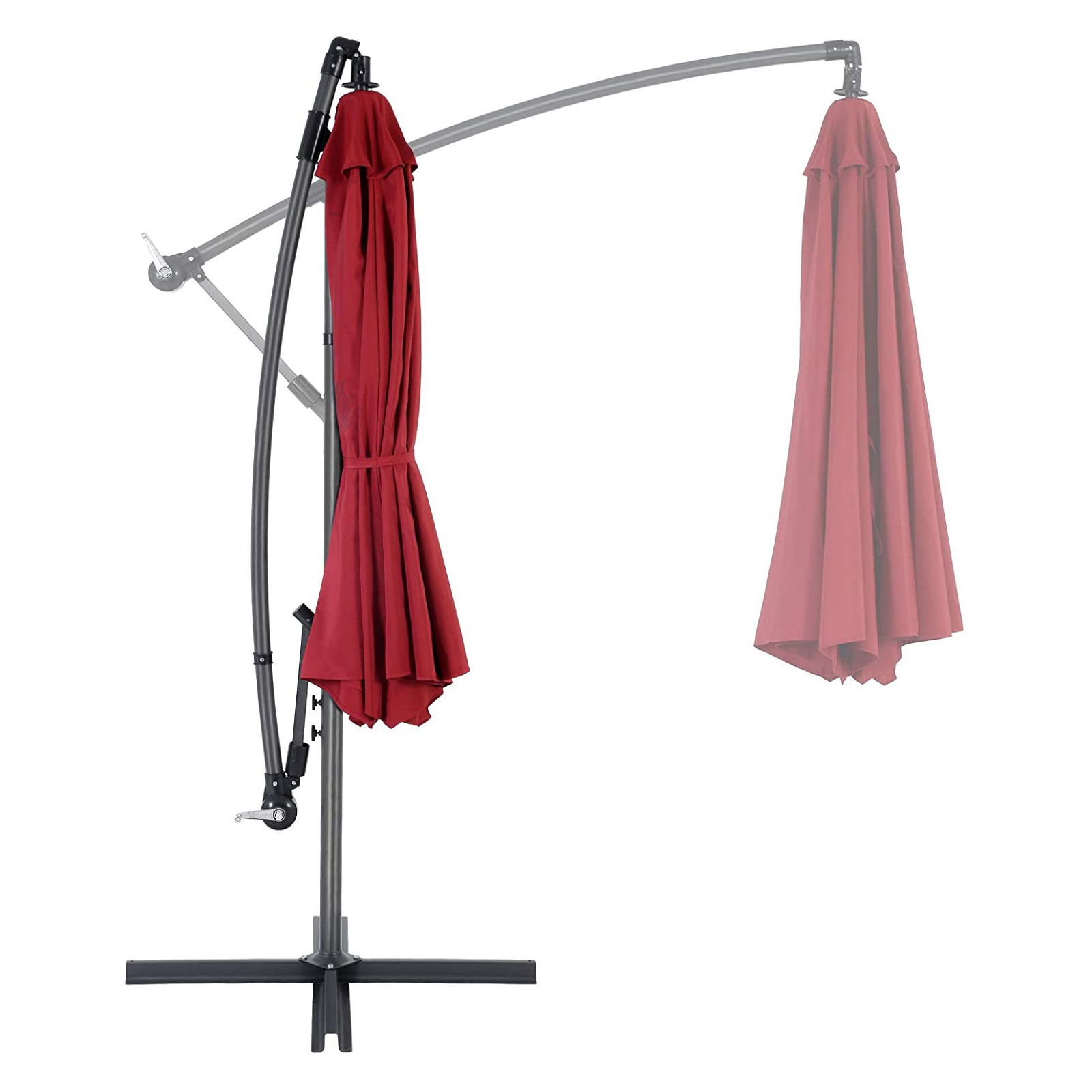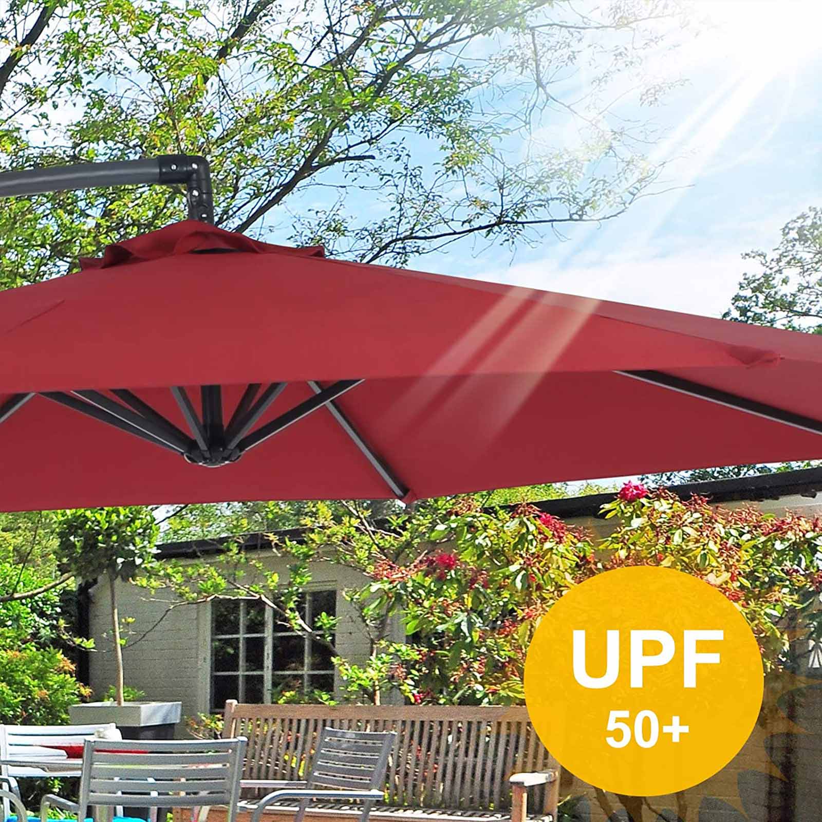 Warm sun, blue skies, fresh air, beautiful nature… What are you waiting for? Time to relax outdoors! Worried about strong sun rays? Don’t worry. Just open this Ø 3 m parasol from SONGMICS and enjoy the beautiful weather in the shade! For an unforgettable summer Whether you want to take a nap in the garden, eat with friends on the terrace, or enjoy a coffee break with your family in the open air, this parasol will make all your plans come true. Made of 180 g/m² polyester fabric, it offers excellent UV protection up to UPF 50+. So you don’t have to worry about bright sunlight hurting your eyes and turning your skin red. Follows the sun Do you like to spend all Sunday on the balcony reading a good book so you can relax your mind and escape the stress of everyday life? You don’t always have to move your parasol to stay in the shade! Simply adjust the angle of the parasol as the sun moves. Product details: – Color: Red – Material: Powder-coated steel pole, 180 g/m² polyester fabric – Parasol diameter: 3 m – Base size: 100 x 100 cm – Height: 2.5 m – Weight: 14 kg Scope of delivery:- 1 x cantilever parasol – 1 x stand – 1 x instructions (DE, EN, FR, ES, IT) SONGMICS notes: – Please do not open the parasol with force, but gently and slowly. – Close the parasol on windy days to avoid damage.- Please protect the umbrella with a cover (not included) to ensure a longer service life.