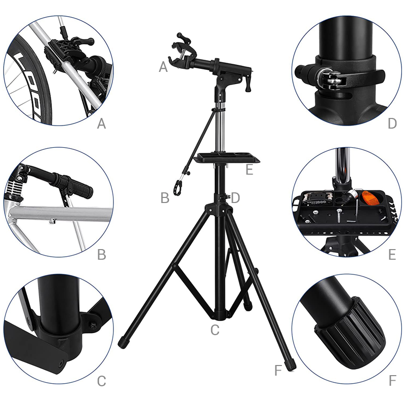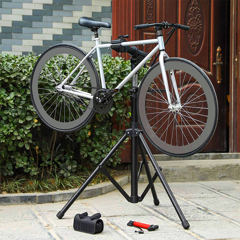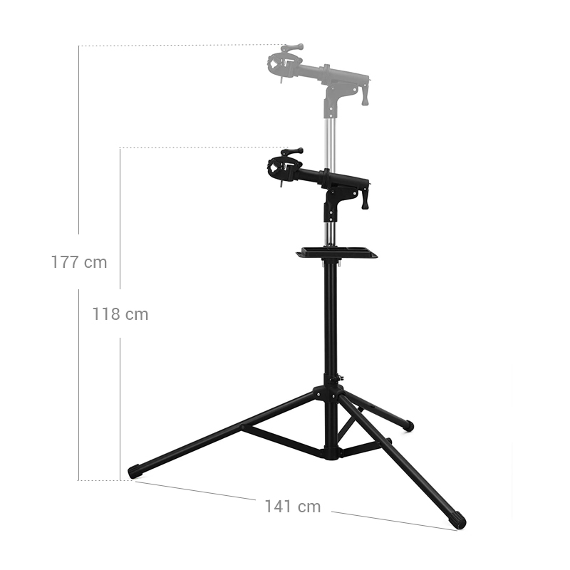 An ideal gift for anyone who likes to repair or customize their own bicycle. The stand is indispensable for anyone who uses a bicycle for sports, competition, regular training, or transportation. Order now while the repair stand is still in stock. Enjoy the superior design, advanced features, and high-quality materials like professional repair technicians and racing cyclists. Product details: Color: black Material: aluminum alloy arm, iron Product dimensions: 141 x 118 -177 x 141 cm (W x H x D) Gross weight: 11 kg Net weight: 9.7 kg Scope of delivery: 1 x bicycle repair stand 1 x instructions (DE, EN, ES, FR, IT) SONGMICS notes: 1. Before moving the bike rack, please remove your bike. 2. When repairing or assembling, please do not move the 3 lower legs.