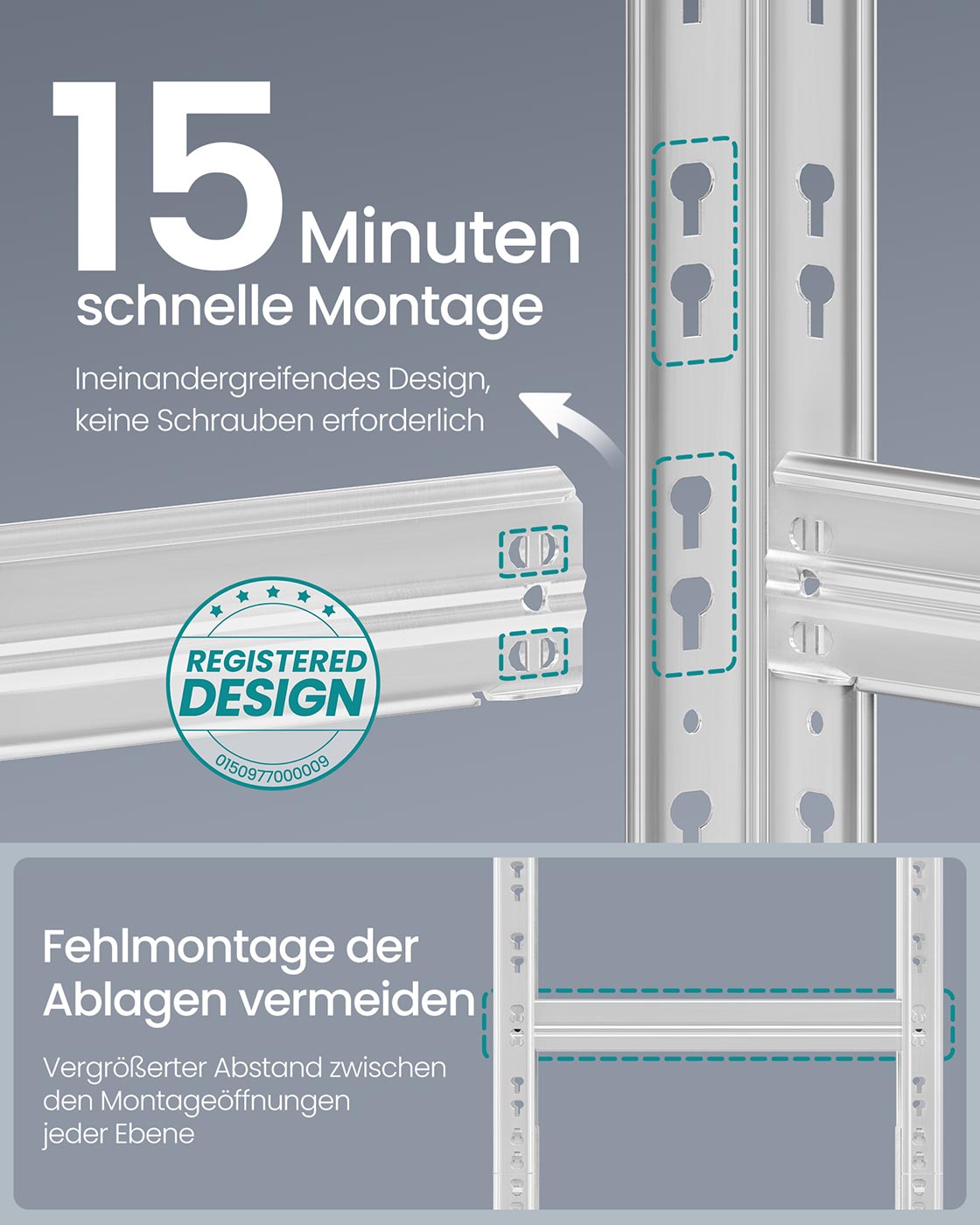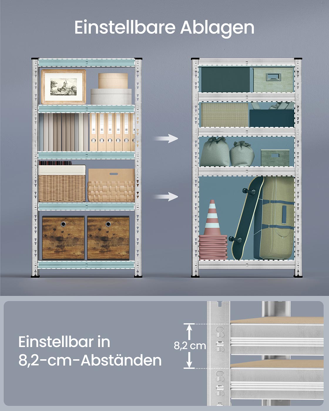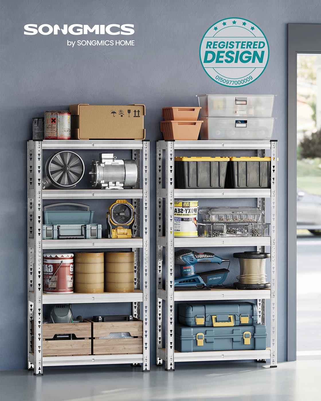 SONGMICS Heavy-duty shelf, basement shelf, 50 x 100 x 200 cm, butterfly plug-in system, load capacity up to 875 kg, easy assembly, storage shelf, adjustable shelves, storage shelf, silver GLR447E01