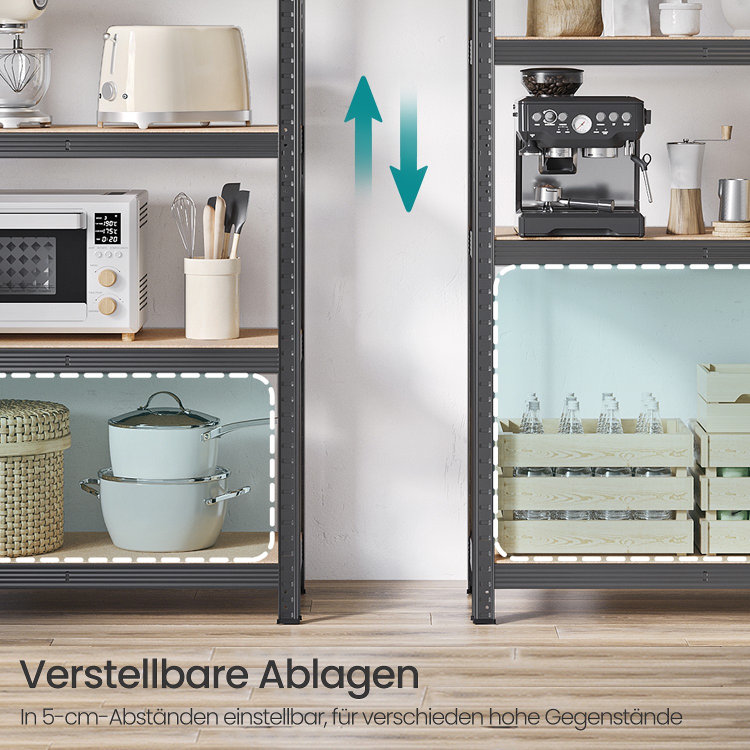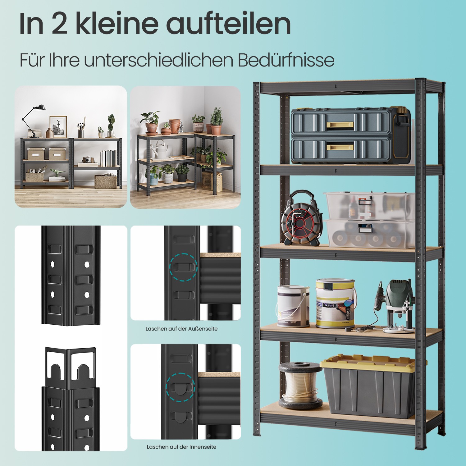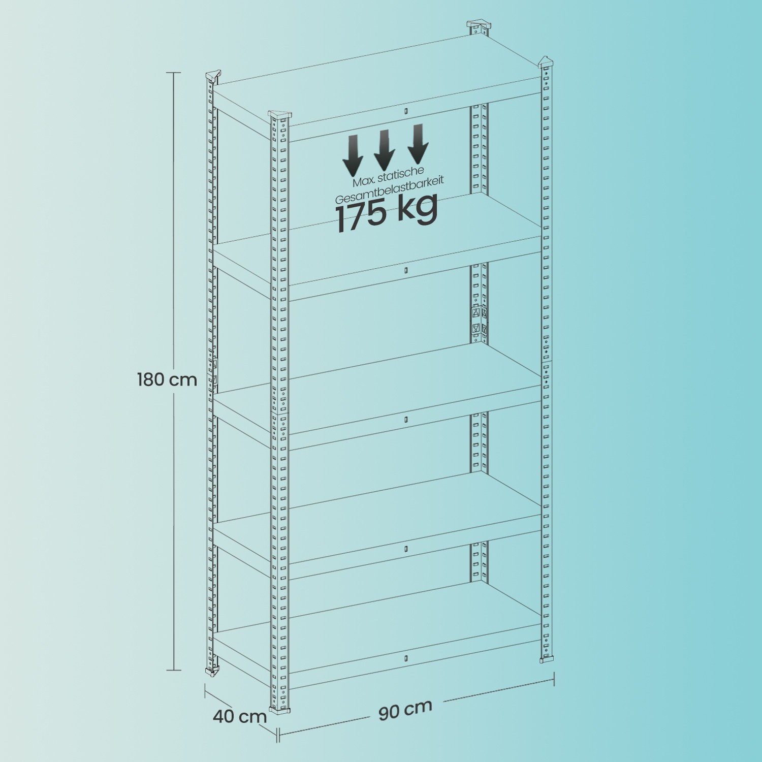 Are garden tools and various utensils scattered around your garage? Do you find it difficult to find the items you need? Then it’s high time to equip your garage with this storage shelf and get the chaos under control. Top reasons why this shelving system from SONGMICS is just right for you: The reinforced steel frame and MDF shelves provide strong support.The crossbars under each shelf level increase stability. The frame is rust-resistant and wear-resistant. Each shelf can hold weights of up to 175 kg. The distance between the individual shelf levels is flexibly adjustable. You can also divide the shelf into two parts. The included anti-tip device ensures safe use. The shelf is suitable for basements, workshops, and business premises.Product details: Color: Gray Material: Steel, MDF (medium-density fiberboard) Size: 180 x 90 x 40 cm (H x L x W) Weight: 13.2 kg Max. static load capacity per shelf: 175 kg Scope of delivery: 1 x storage shelf 1 x anti-tip device 1 x instructions SONGMICS notes:Always wear gloves when assembling. Please do not place the product in a damp environment. The max. load capacity in the text refers to the maximum static weight.