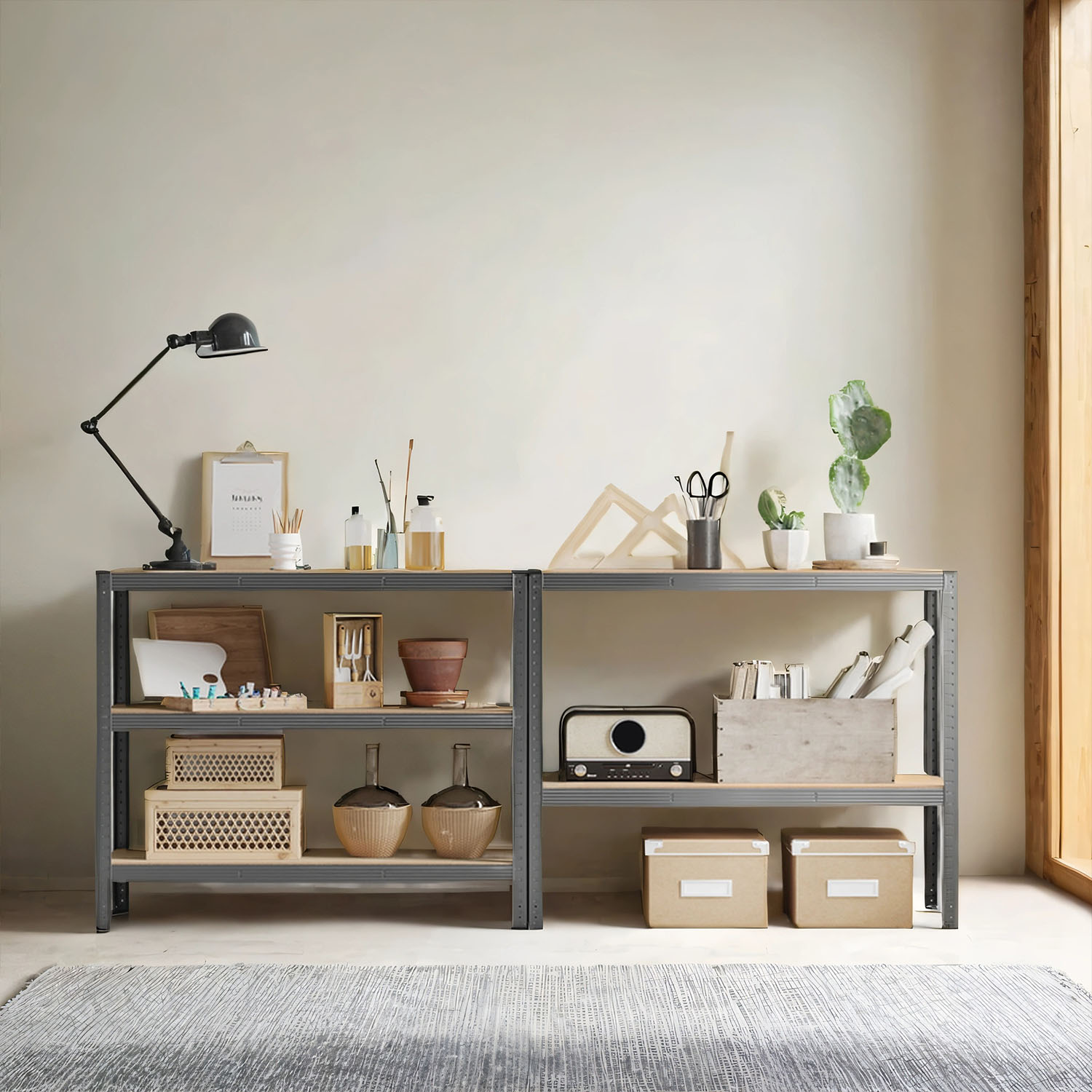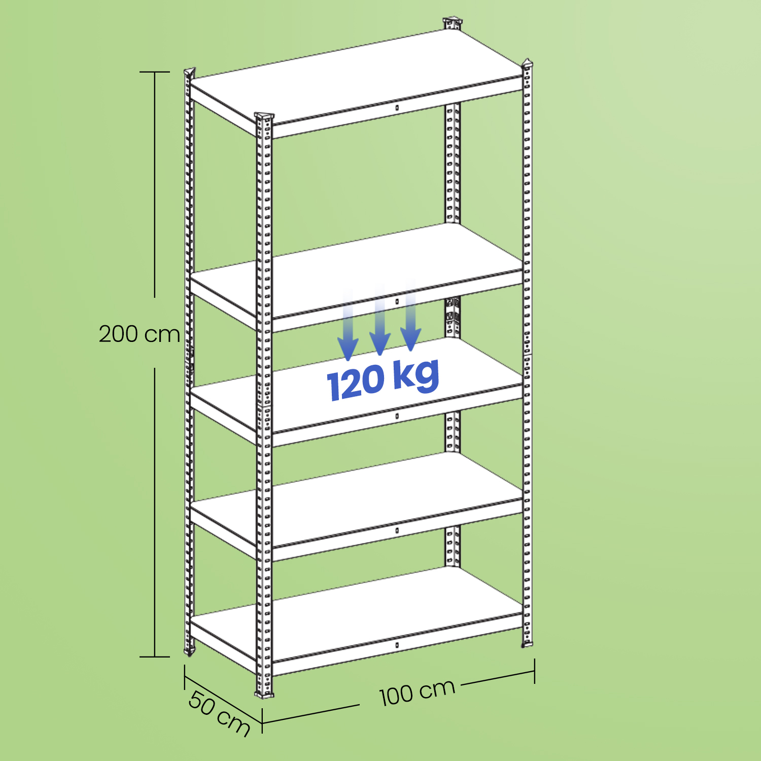 Product details: Color: Gray Material: Powder-coated steel, MDF (medium-density fiberboard) Size: 50 x 100 x 200 cm (D x W x H) Weight: 15.7 kg Max. static load capacity of each shelf: 120 kg Max. static load capacity in total: 600 kg Scope of delivery: 1 x storage rack 1 x anti-tip bracket 1 x instructions SONGMICS Notes:Please secure the product to the wall using the anti-tip bracket provided to ensure safety during use. Always wear gloves when assembling. Please do not place the product in a damp environment. The max. load capacity in the text refers to the maximum static weight.