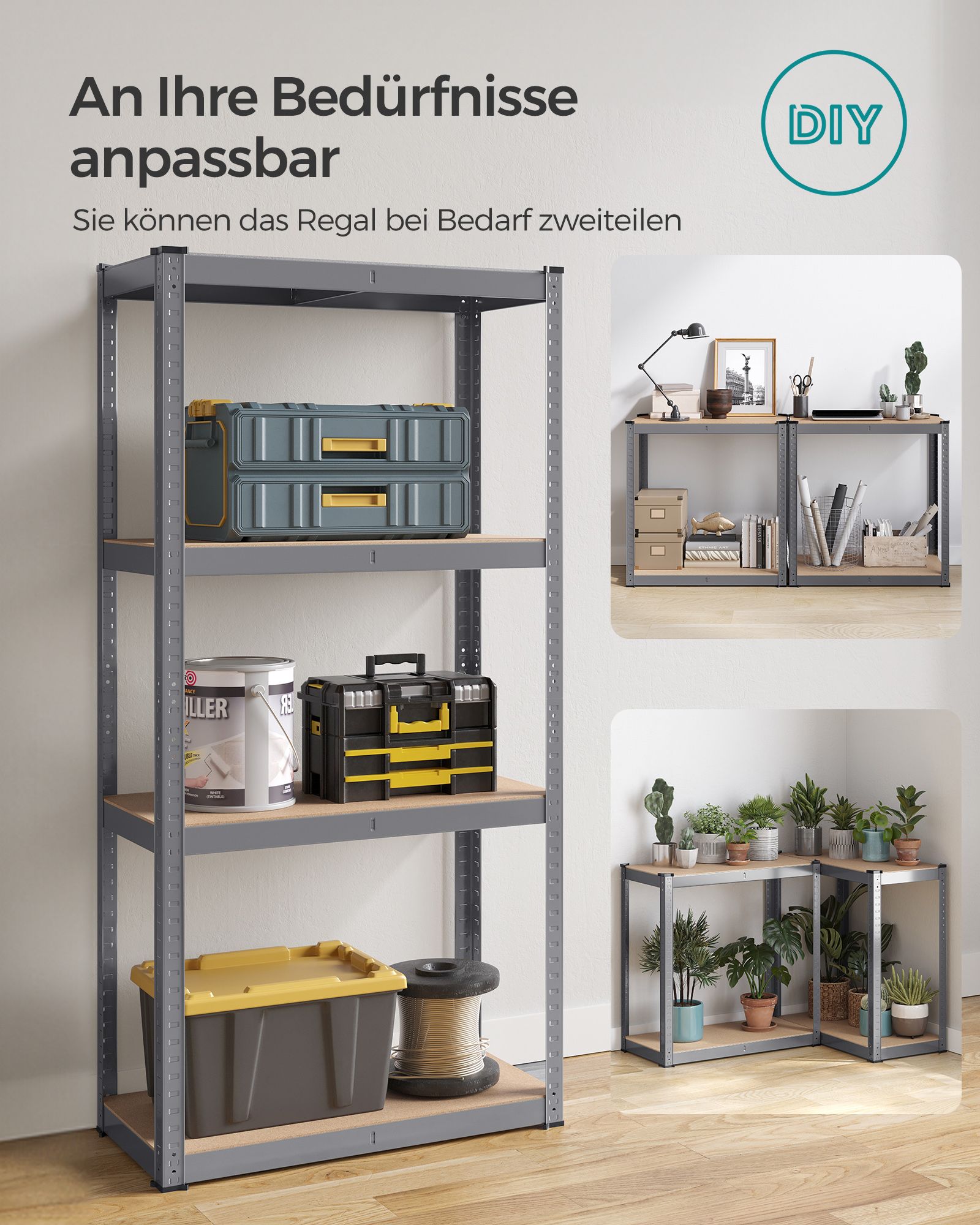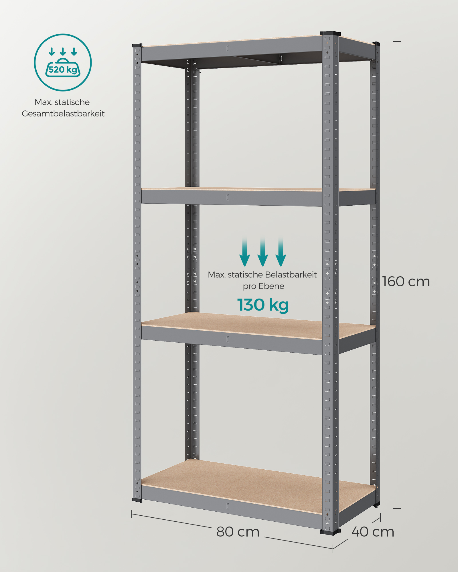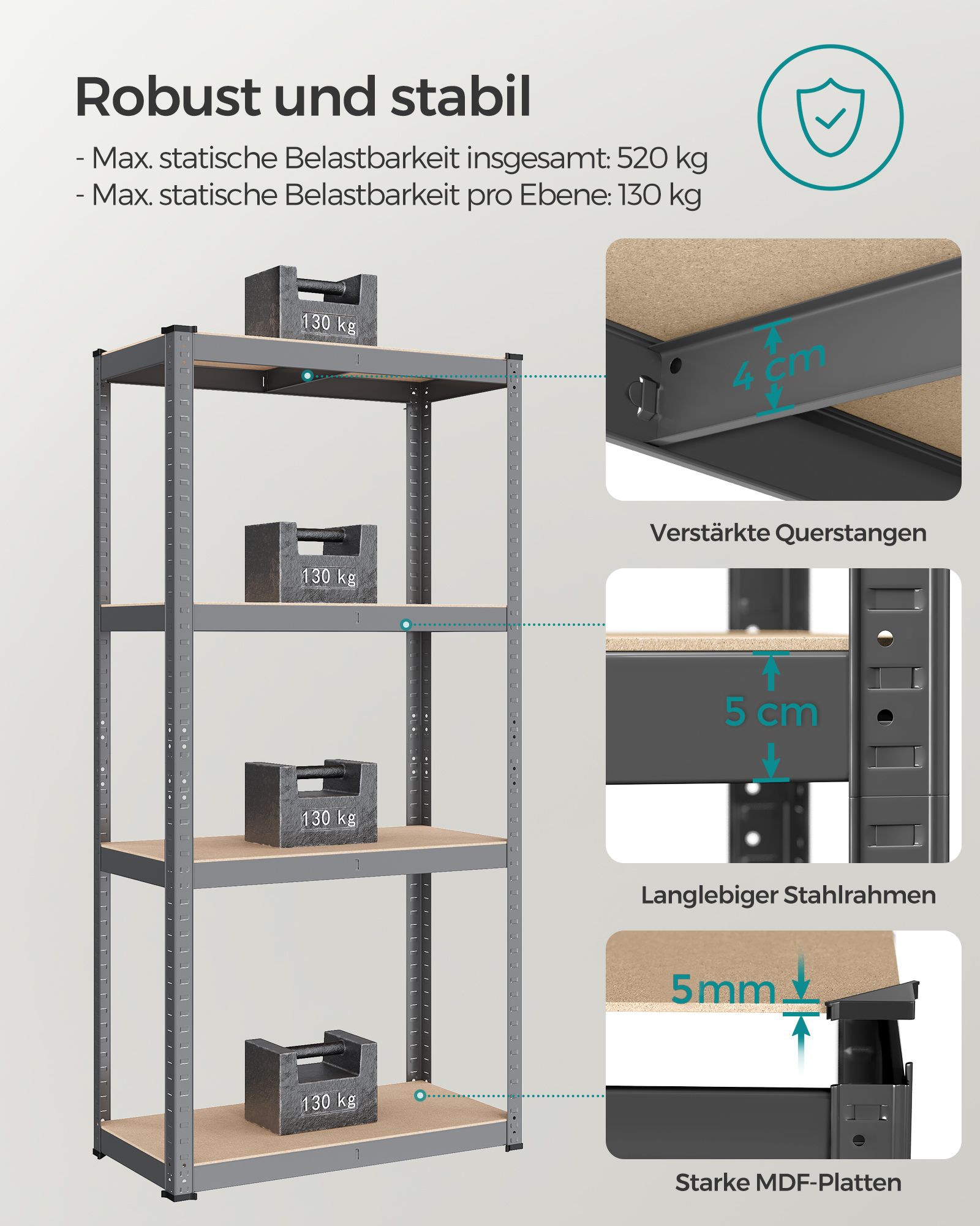 SONGMICS storage rack with 4 shelves, heavy-duty metal rack, shelving system, load capacity up to 520 kg (130 kg per shelf), height-adjustable, tool rack, 160 x 80 x 40, garage, basement, blue GLR44Q