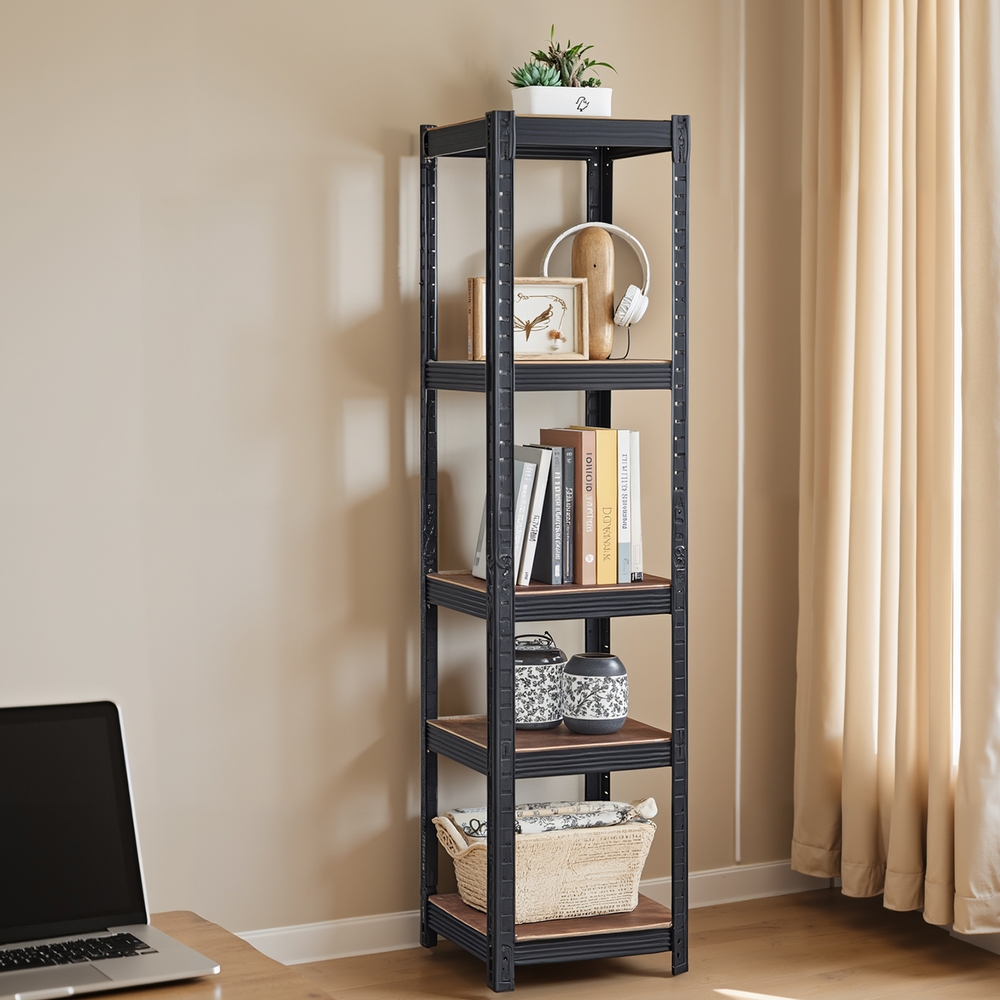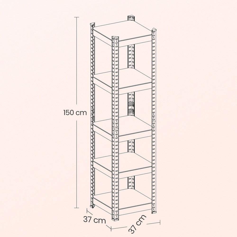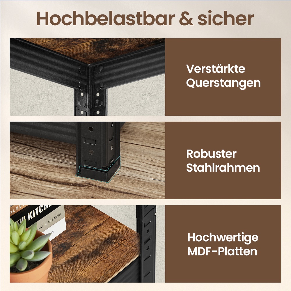 Product details: Color: Vintage brown-black Material: Powder-coated steel, MDF (medium-density fiberboard)Size per shelf: 150 x 37 x 37 cm (H x L x W) Weight per shelf: 5.9 kg Max. static load capacity per shelf: 80 kg Scope of delivery: 1 x storage shelf 1 x anti-tip device SONGIMC notes: Always wear gloves when assembling. Please do not place the product in a damp environment.The max. load capacity in the text refers to the maximum static weight. For safety reasons, please secure the product to the wall using the anti-tip device supplied.