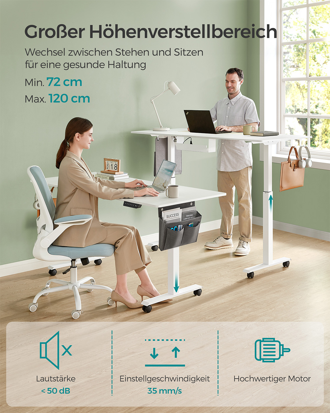 SONGMICS Height-Adjustable Desk with 60 x 140 cm Top