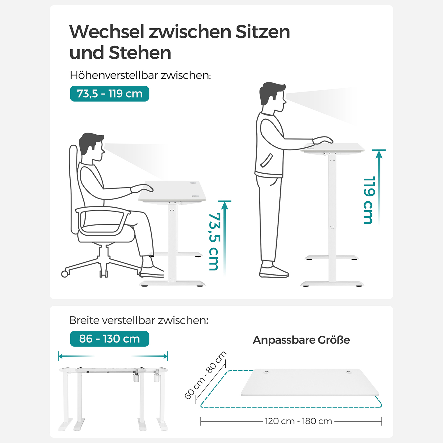 SONGMICS Height-adjustable electric desk, 60 x 120 cm table surface, continuously adjustable, memory function with 3 heights, collision protection, vintage brown-black LSD101X01