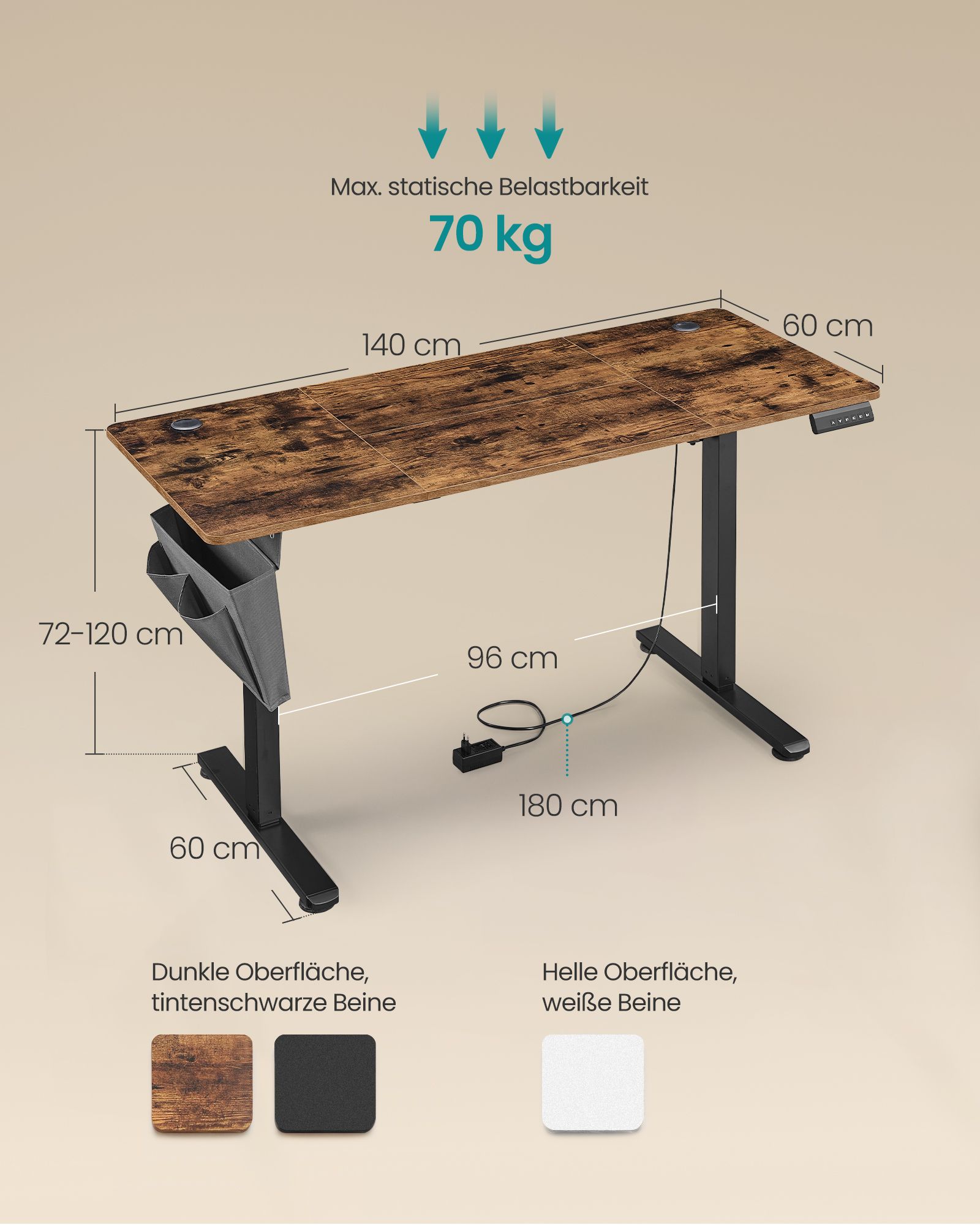 Size: 60 x 140 x (72-120) cm (D x W x H)