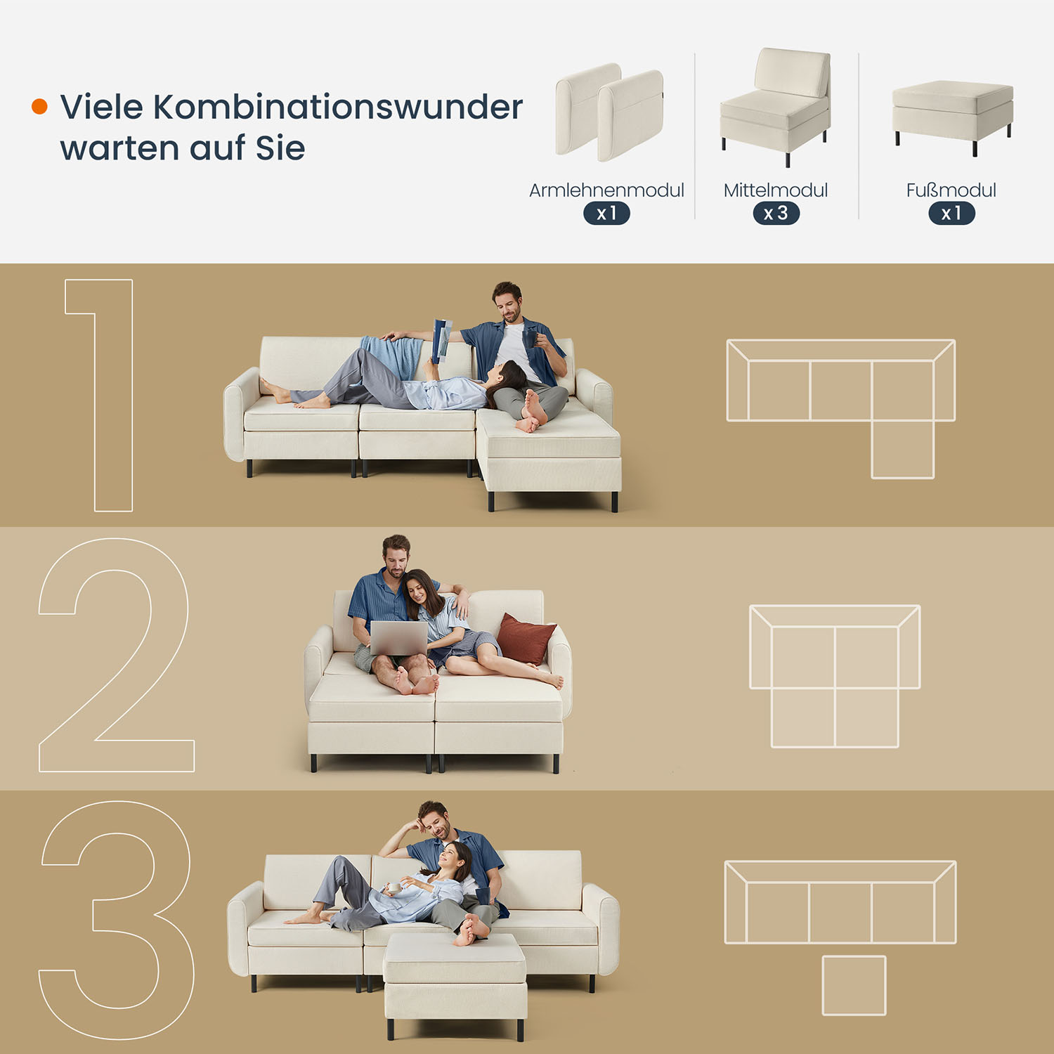 – Size of each center module: 79 x 73 x 85.6 cm (D x W x H)