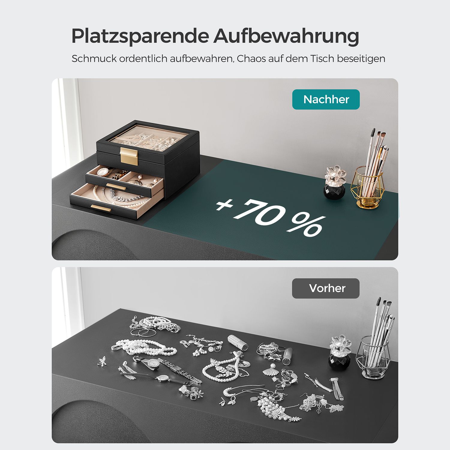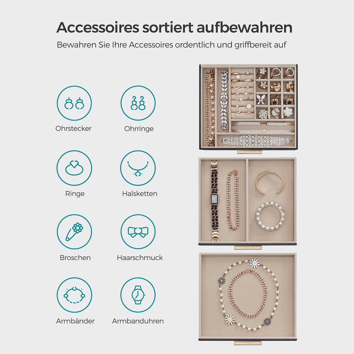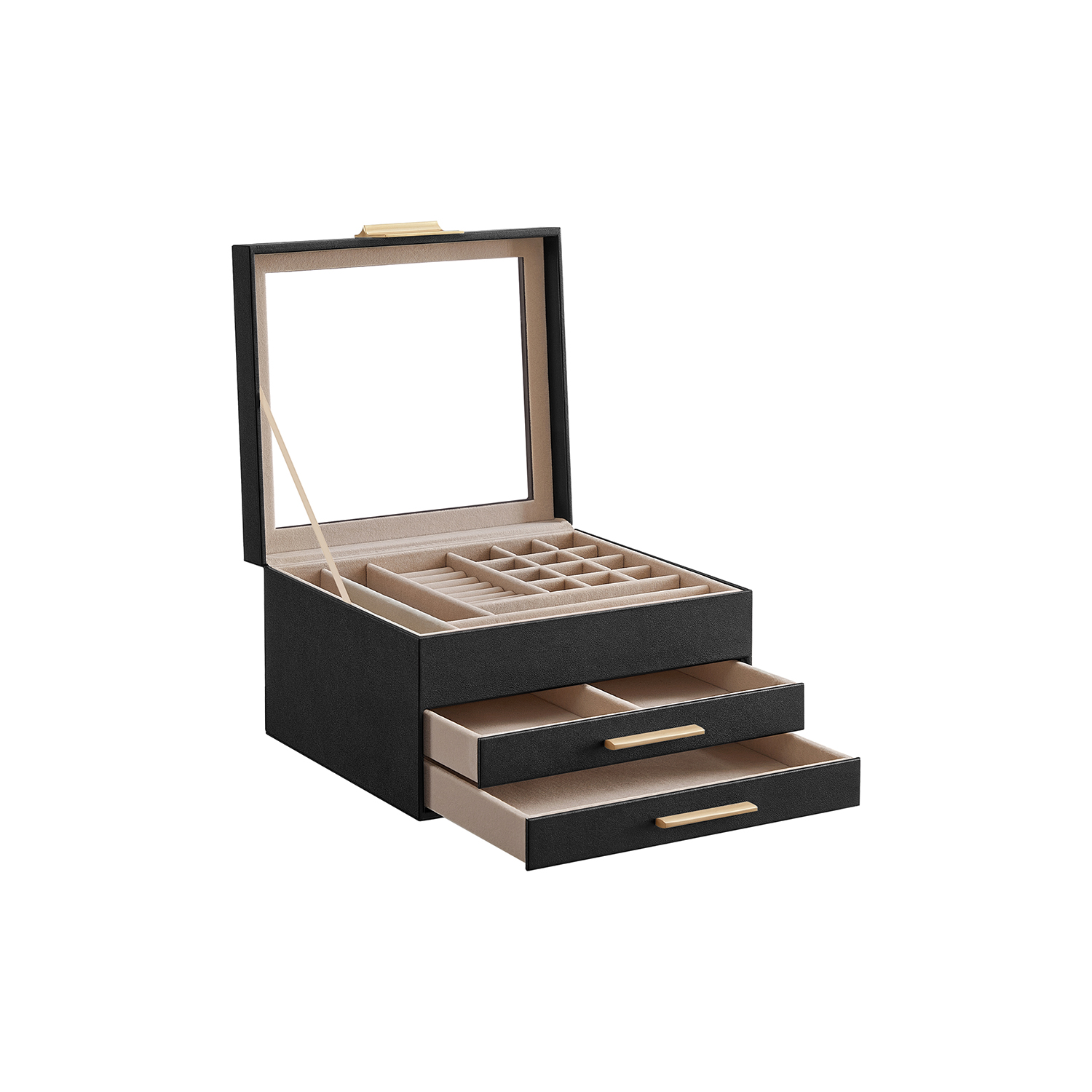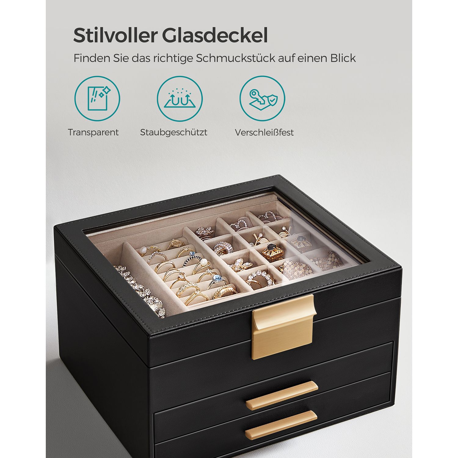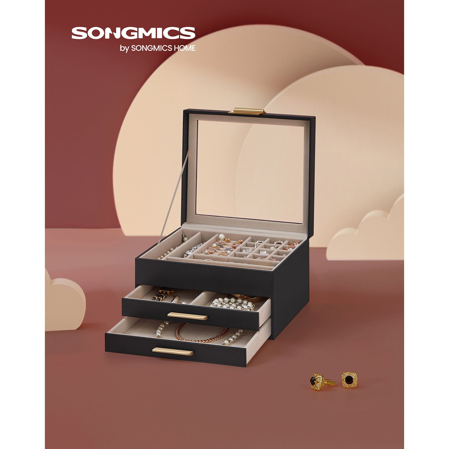 SONGMICS Jewelry box with glass lid Jewelry box with 3 levels, jewelry box with 2 drawers, jewelry storage, gift for your loved ones, white JBC239WT