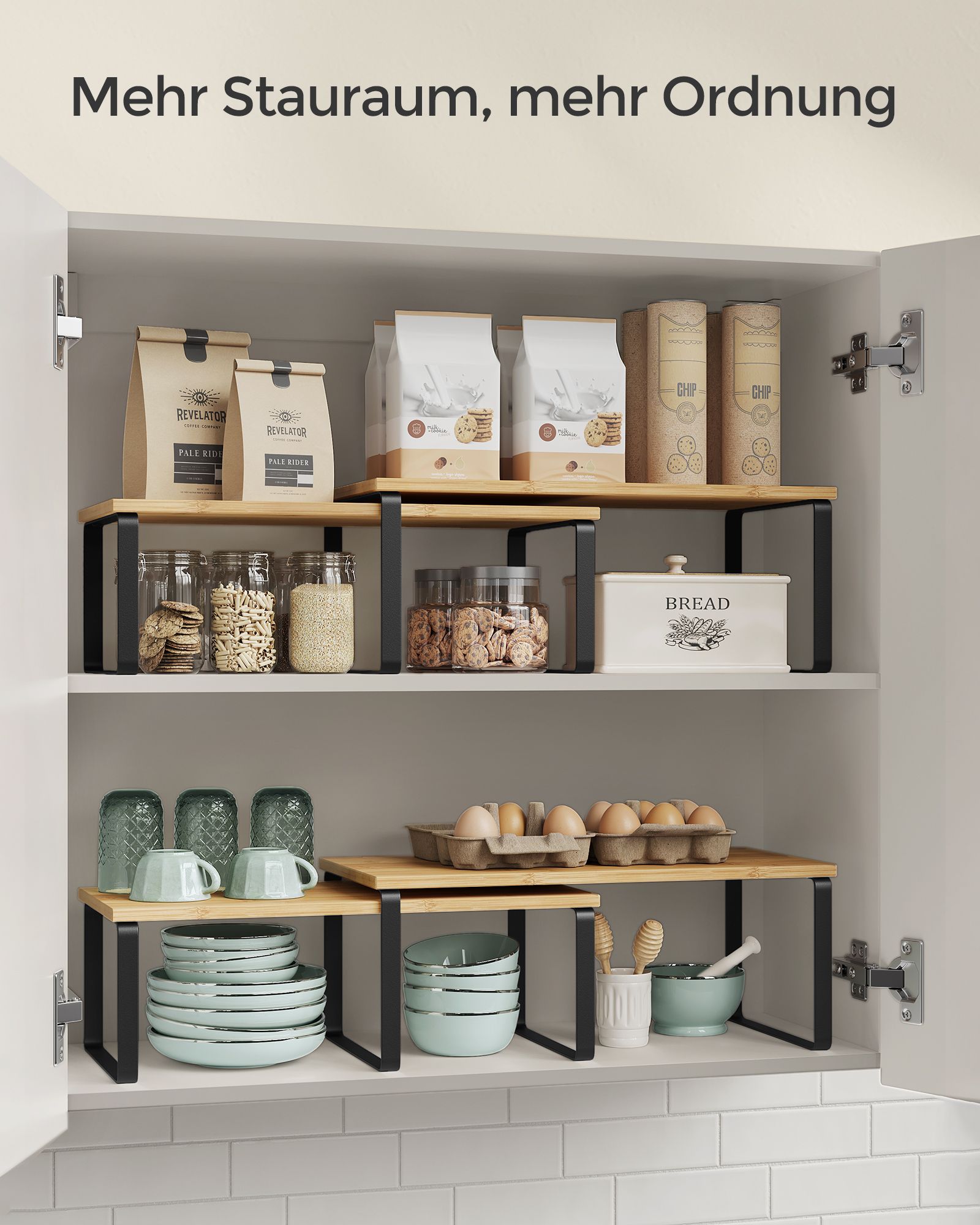 SONGMICS spice rack, set of 2 kitchen organizers, kitchen shelf, cabinet organizer for kitchen, expandable, small shelf, stackable, metal and wood-based material