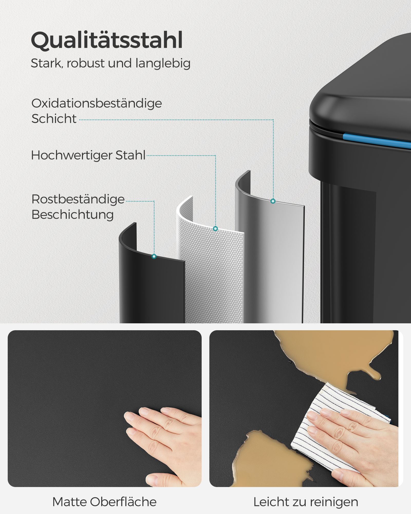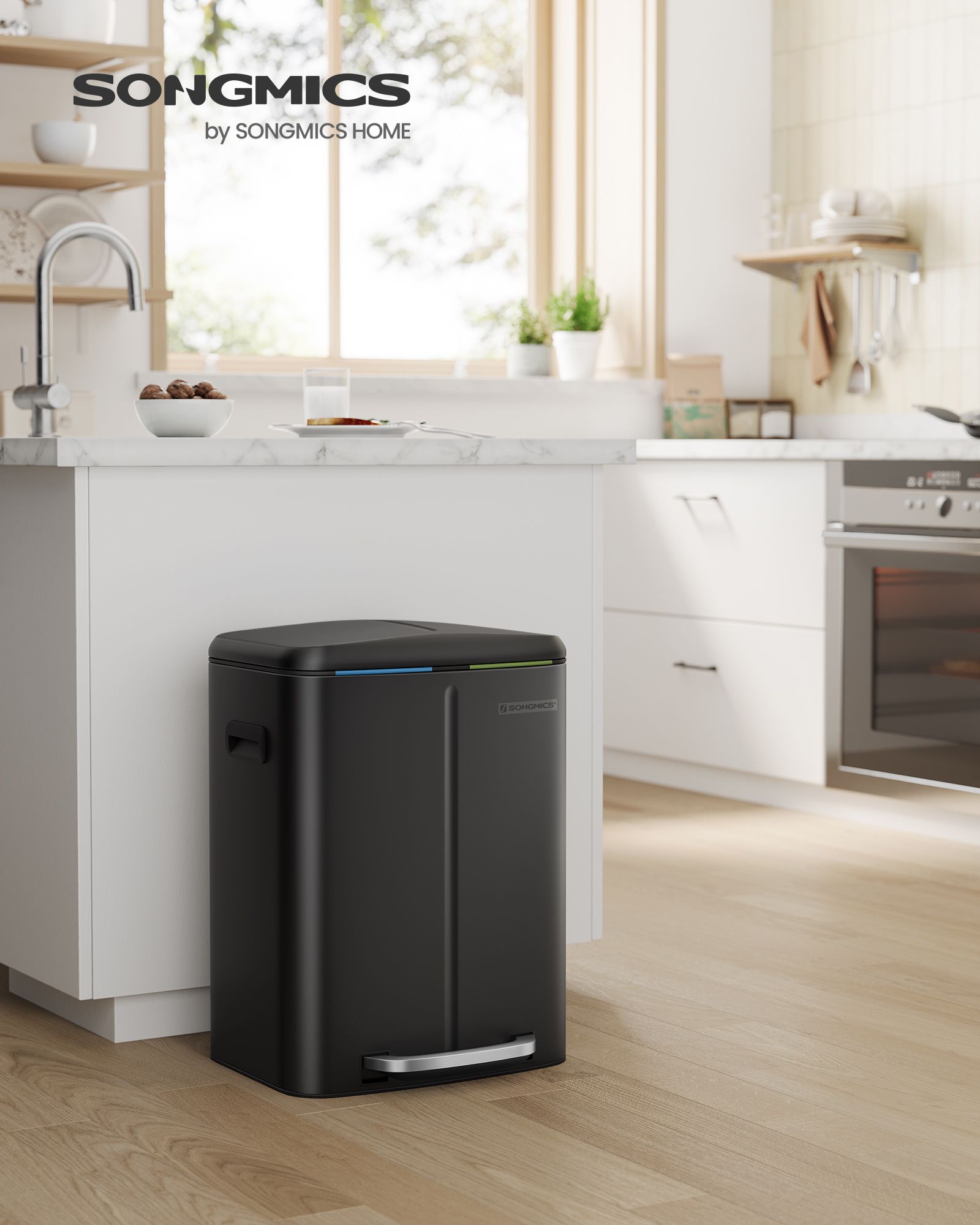 SONGMICS 40 L trash can with 2 compartments, 2 x 20 L, waste bin, metal pedal bin, plastic inner bin, with hinged lid and handles, soft close, airtight, white LTB40WT