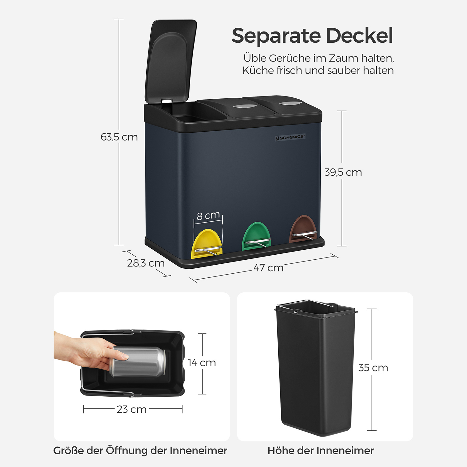 – Size per inner bucket: 14 x 23 x 35 cm (L x W x H)