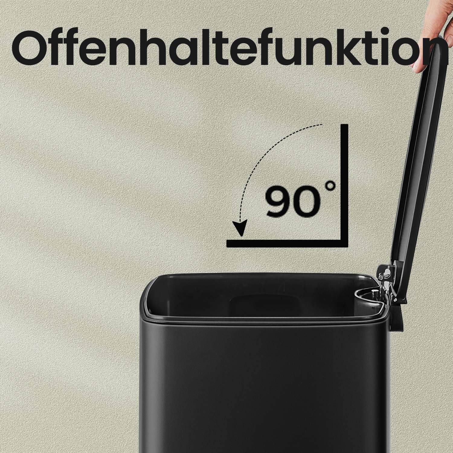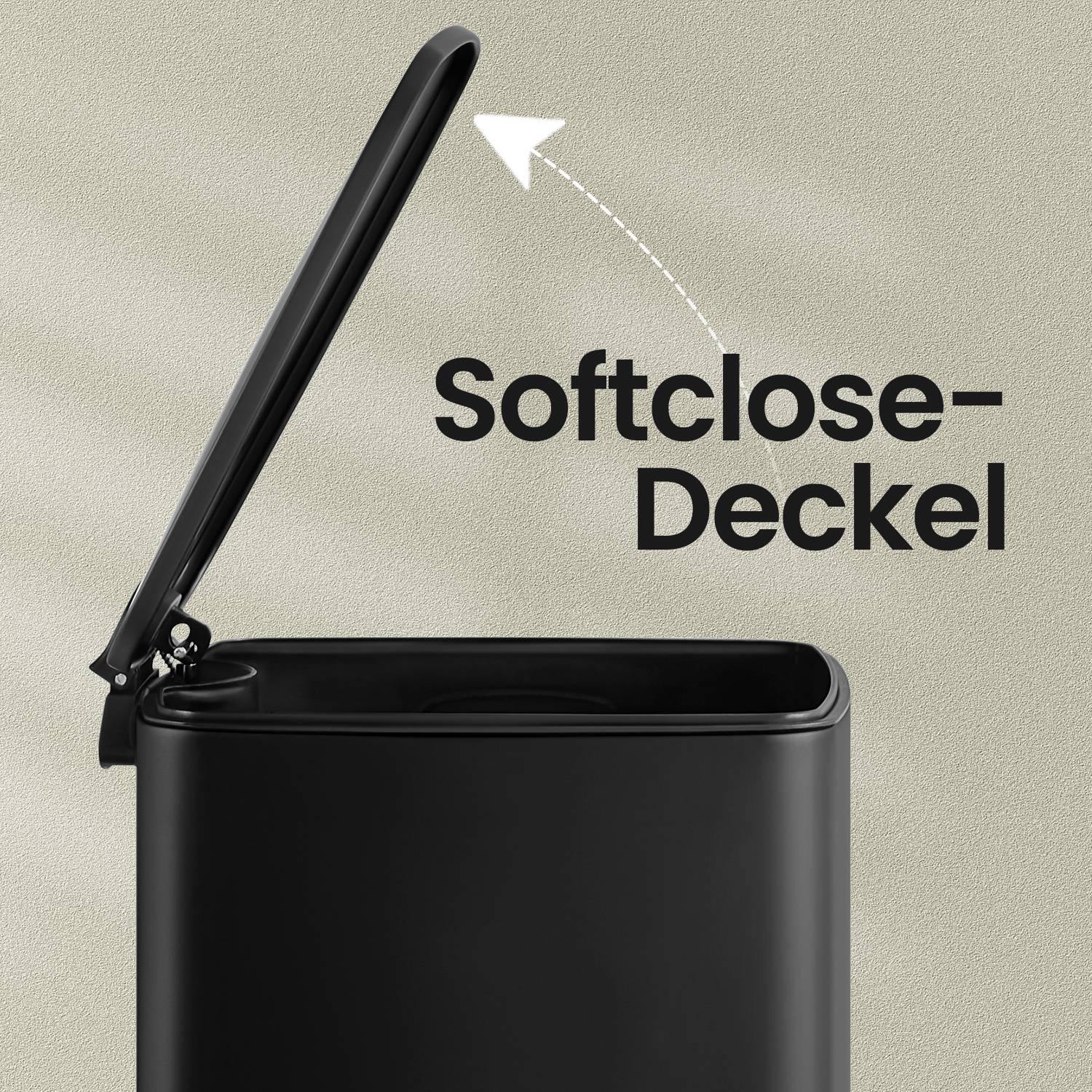 Kitchen trash can, 30-liter waste bin, pedal trash can, steel, with inner bucket, soft close, hold-open function, ink black