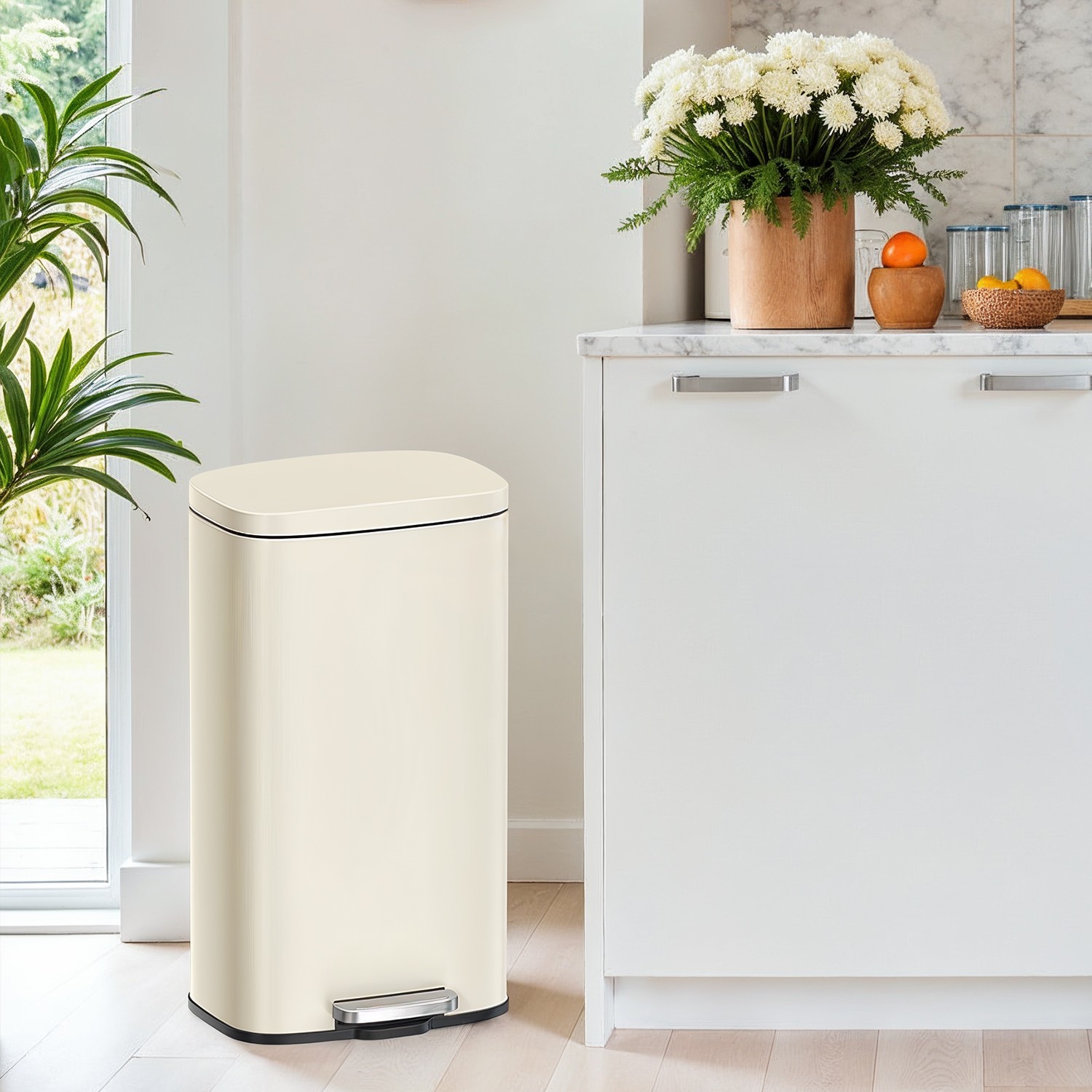 SONGMICS Pedal Bin for the Kitchen, Soft Close, Waste Bin with Lid and Inner Bin, 30 L Stainless Steel Waste Container, Odor-Proof and Hygienic LTB03NL