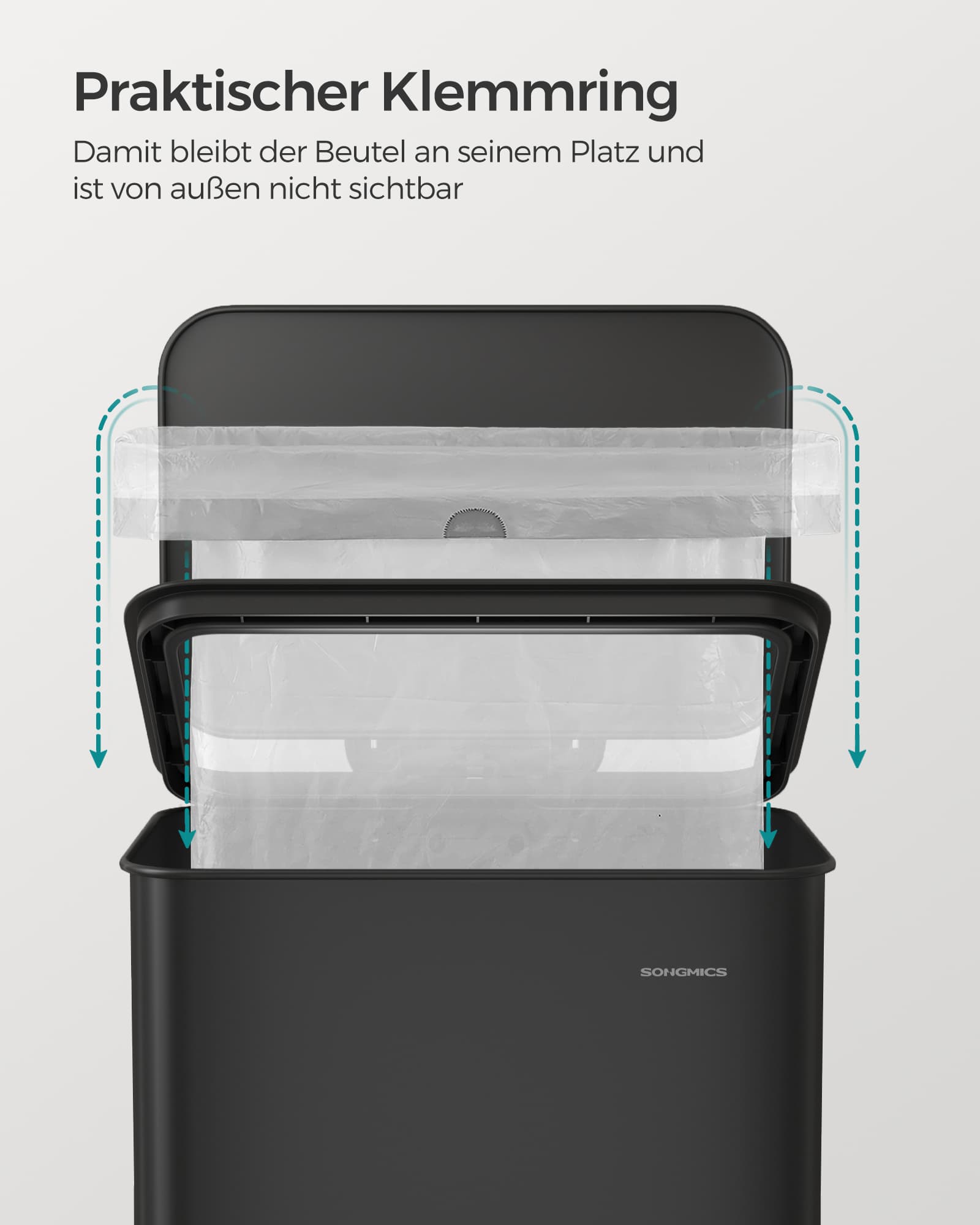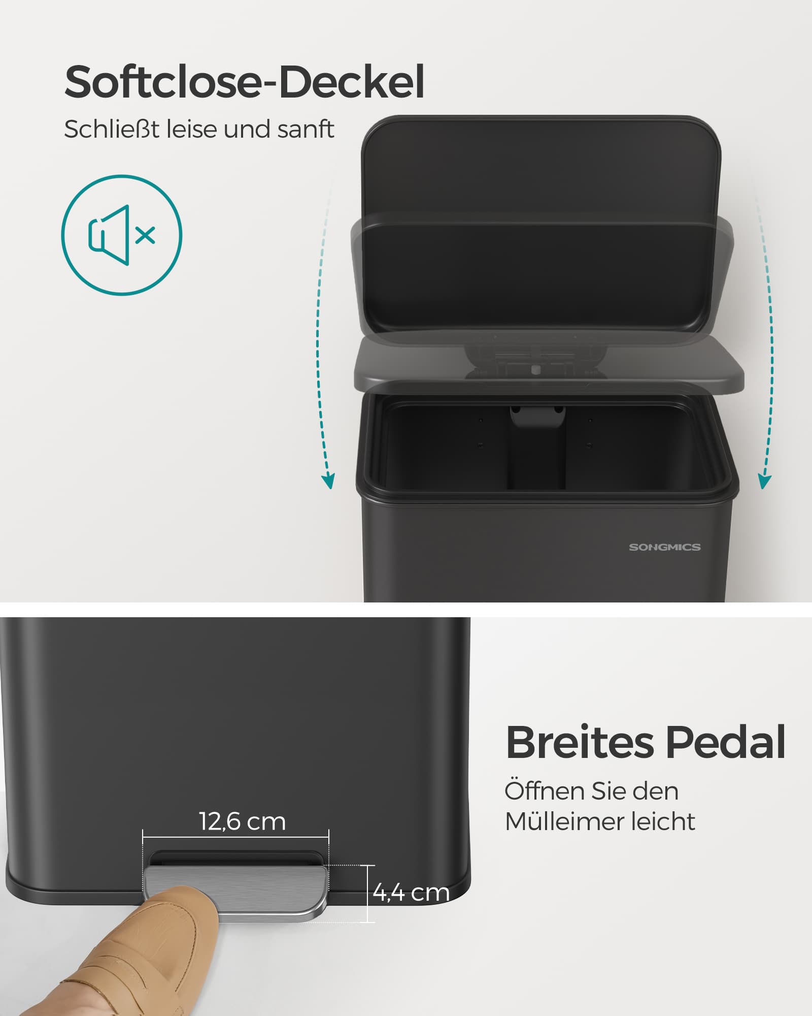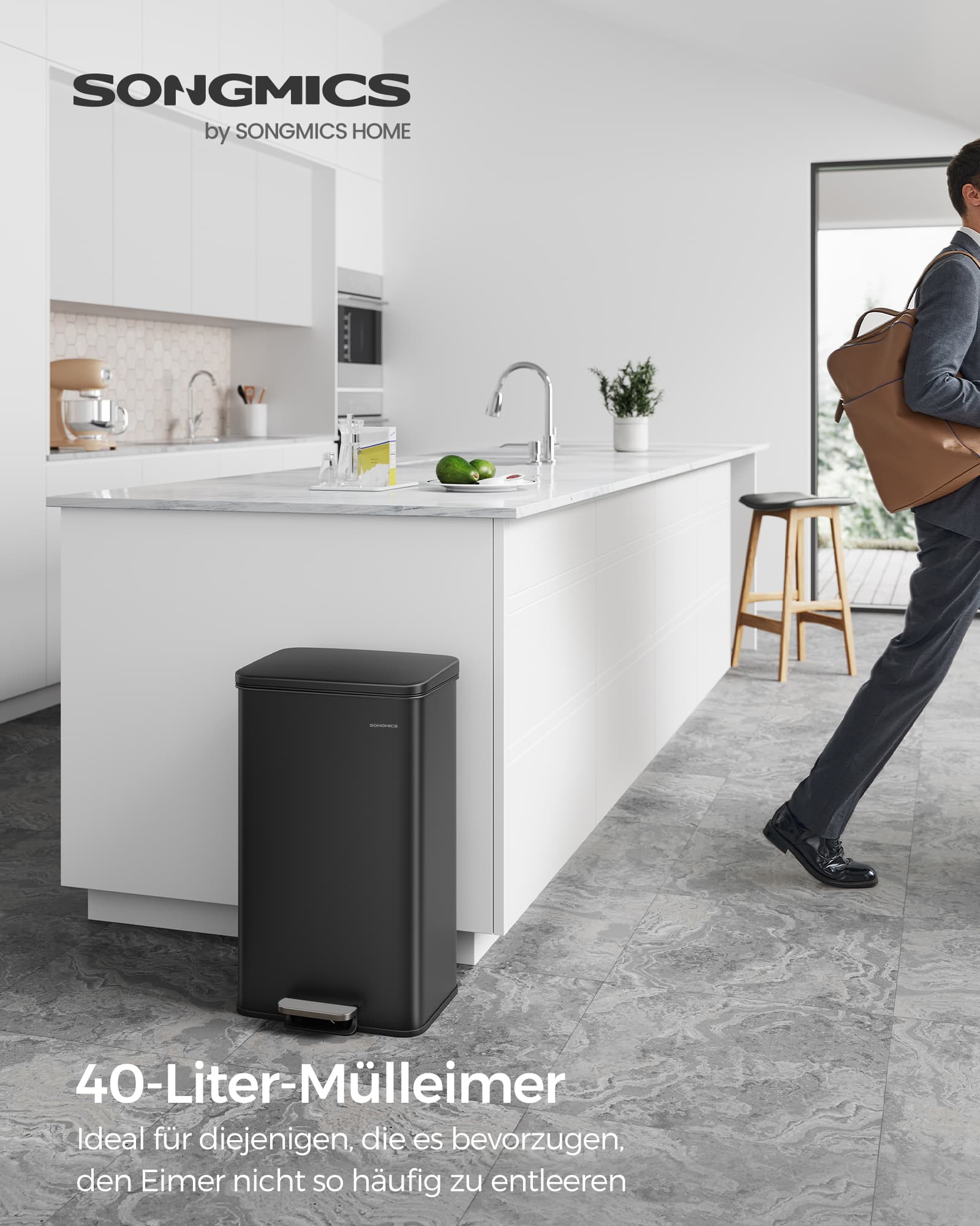 SONGMICS kitchen trash can, 40-liter waste bin, large pedal trash can, with lid, made of steel, soft-close, includes 15 trash bags
