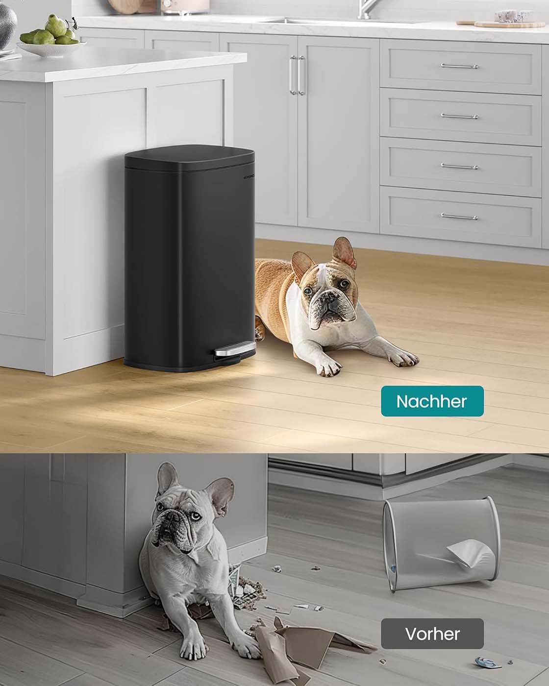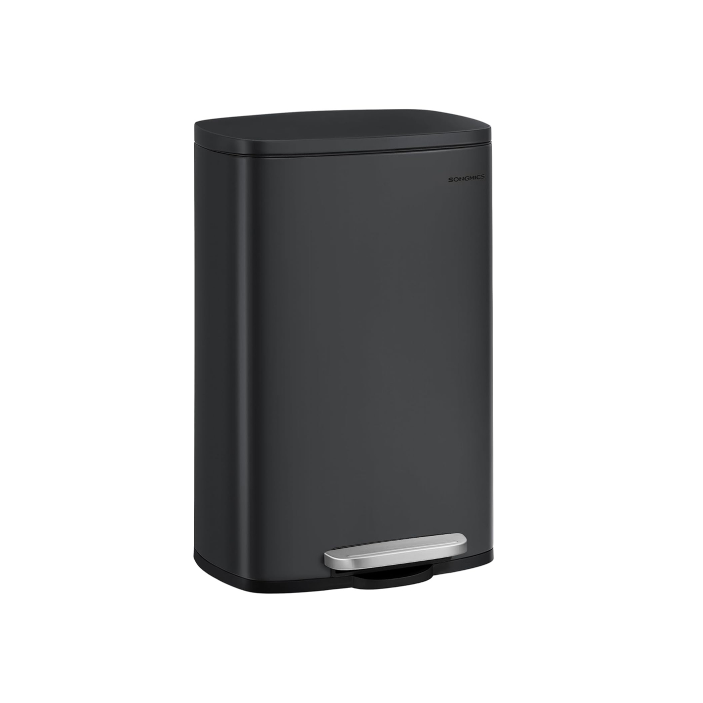 SONGMICS trash can, waste bin, 50 liters, steel pedal bin, plastic inner bucket, with hinged lid, soft close, airtight, for the kitchen, silver LTB050E01