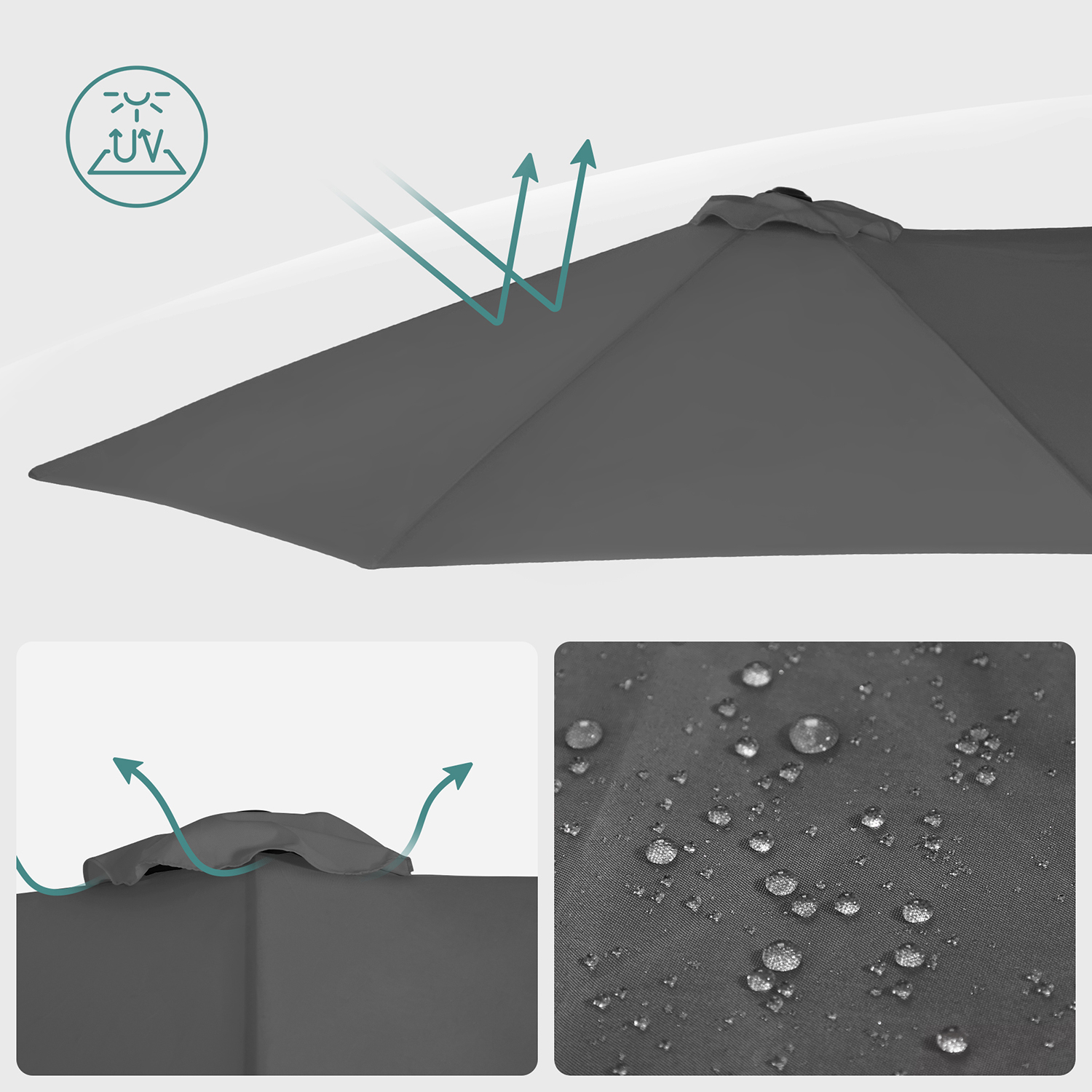 Highlights of this double parasol from SONGMICS: Extra-large canopy (460 x 270 cm); provides large-area shade UV protection up to UPF 50+; optimal protection against UV rays Robust parasol pole made of Ø 48 mm metal rods 12 metal ribs; give the umbrella a strong holdUmbrella canopy made of 180 g/m² polyester; promises a long service lifeEasy opening and closing of the umbrella with the help of the practical crankPractical locking spring; allows the 2 metal rods of the umbrella pole to be easily connected togetherNo tools required; set up in just a few minutesProduct details:Color: GrayMaterial: Metal umbrella pole and ribs, 180 g/m² polyesterHeight: 245 cmUmbrella canopy size: 460 x 270 cm (L x W) Umbrella pole diameter: 48 mm Net weight: 15 kg Scope of delivery: 1 x parasol 1 x instructions (DE, EN, FR, ES, IT) SONGMIX notes: An umbrella stand is not included. We recommend using a parasol base weighing over 50 kg. Please do not open the parasol with force, but gently and slowly. Please clean the parasol cover with a soft cloth dampened with a neutral cleaning agent. Please store the product in a dry, well-ventilated place, but only after the umbrella fabric has dried completely. Close the parasol on windy days to prevent damage. Keep the product away from sources of fire; also protect it from extreme cold or heat and other weather conditions such as rain, wind, snow, hail, etc.