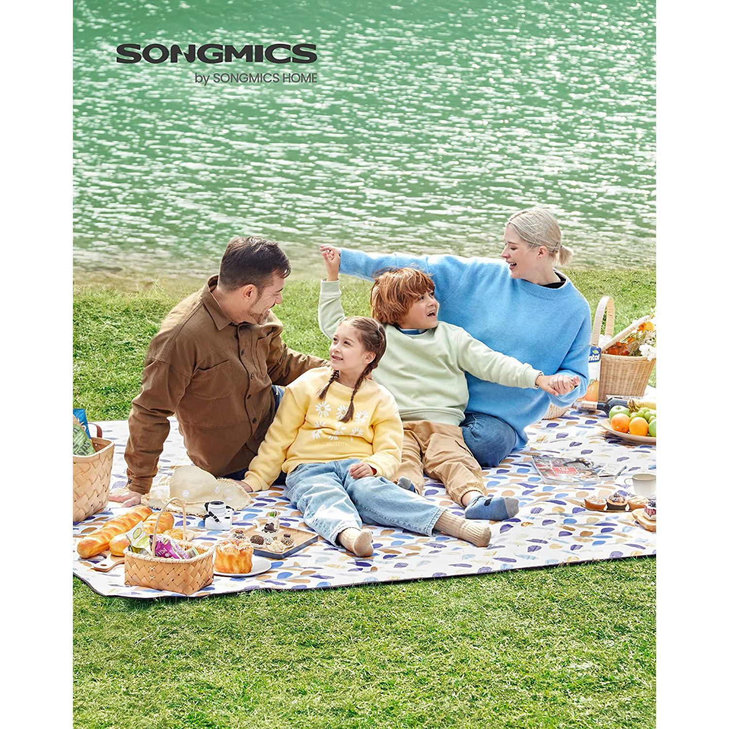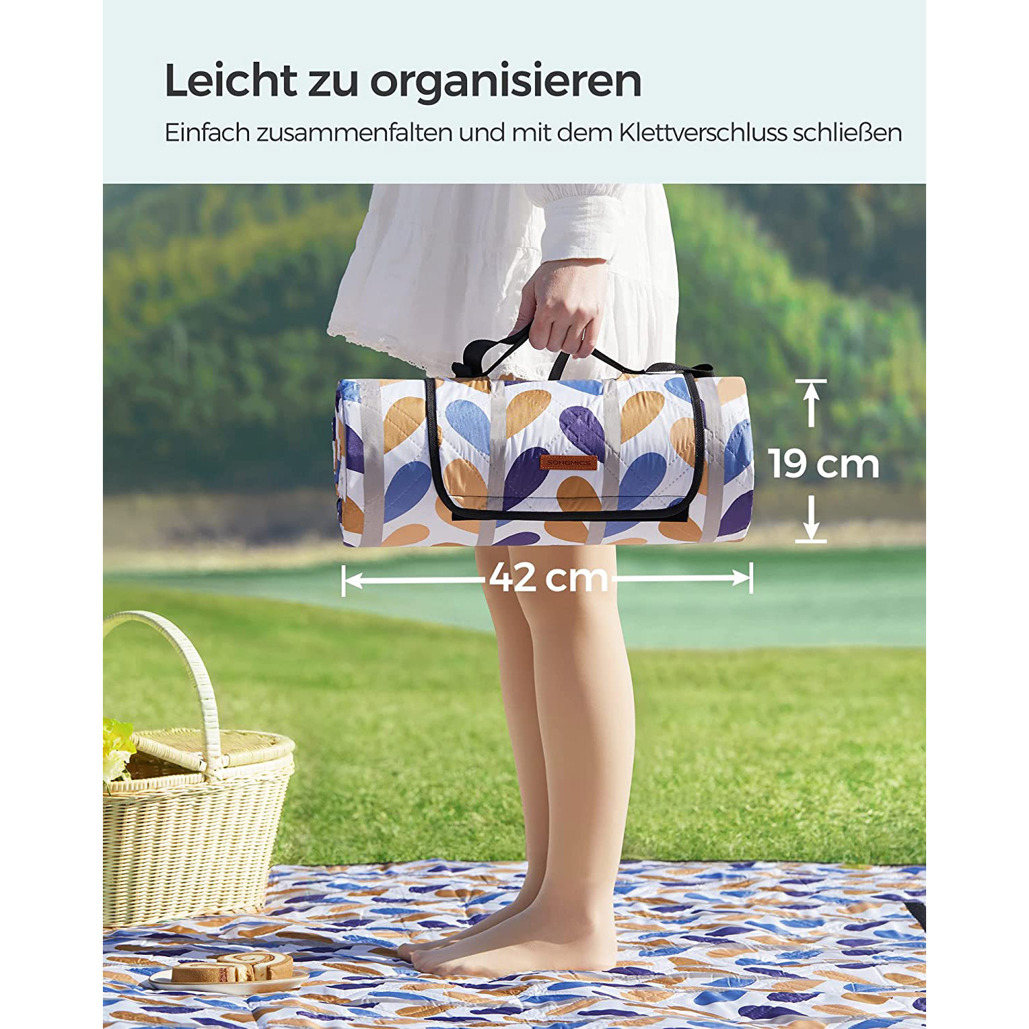 SONGMICS picnic blanket, 300 x 200 cm, large, camping blanket, for park, garden, beach, waterproof, machine washable, foldable, colorful leaves GCM008U03