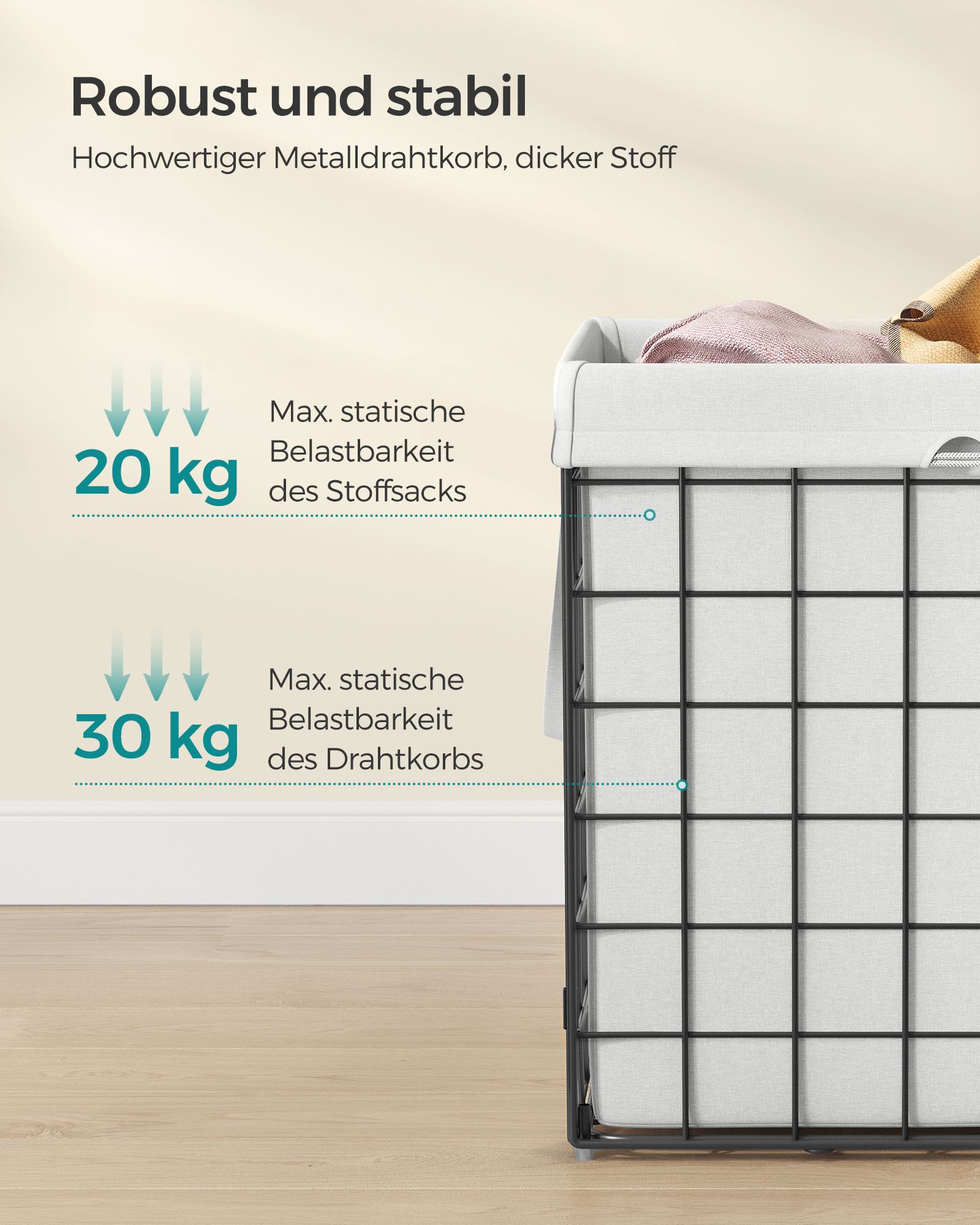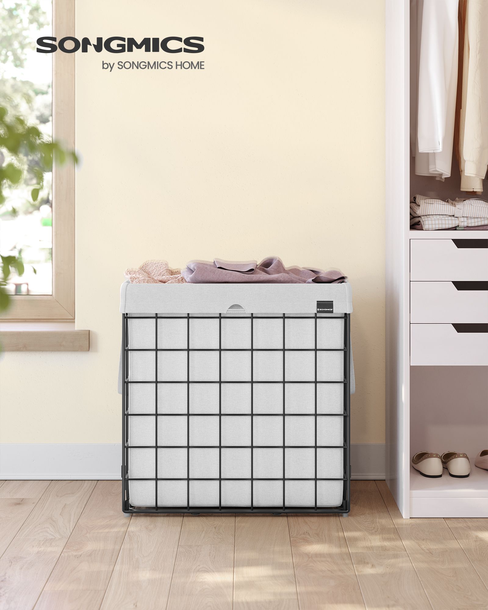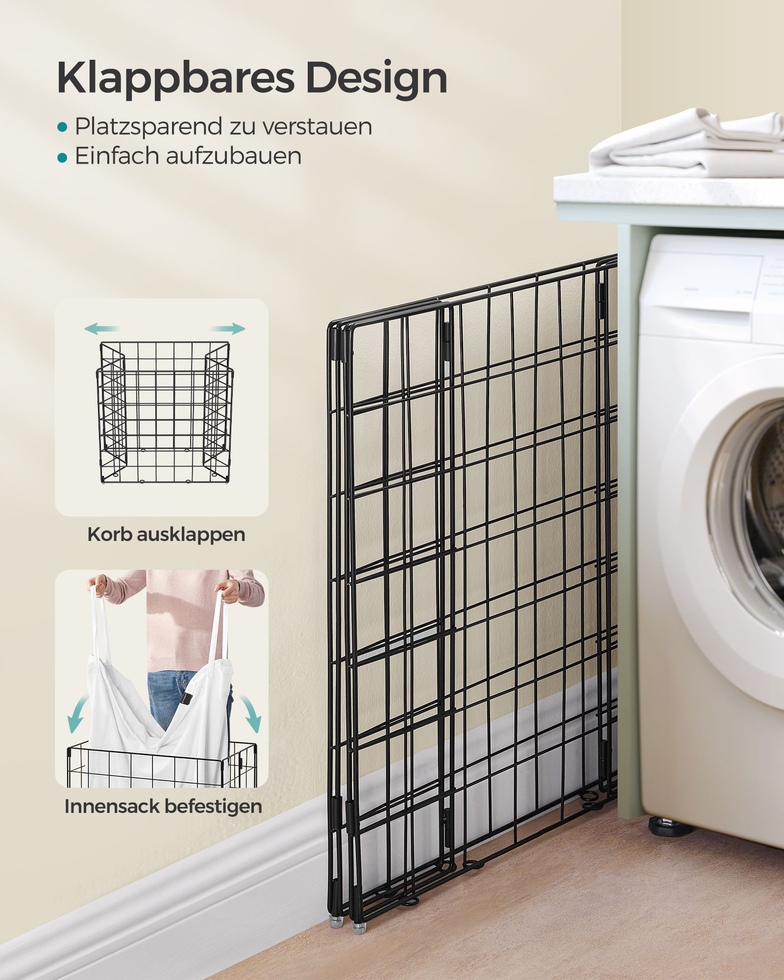 SONGMICS Laundry Basket 90L, Foldable Laundry Collector, Removable and Washable Laundry Bag, Metal Wire Frame, for Bedroom, Bathroom, Laundry Room, Black-Gray LCB190G01