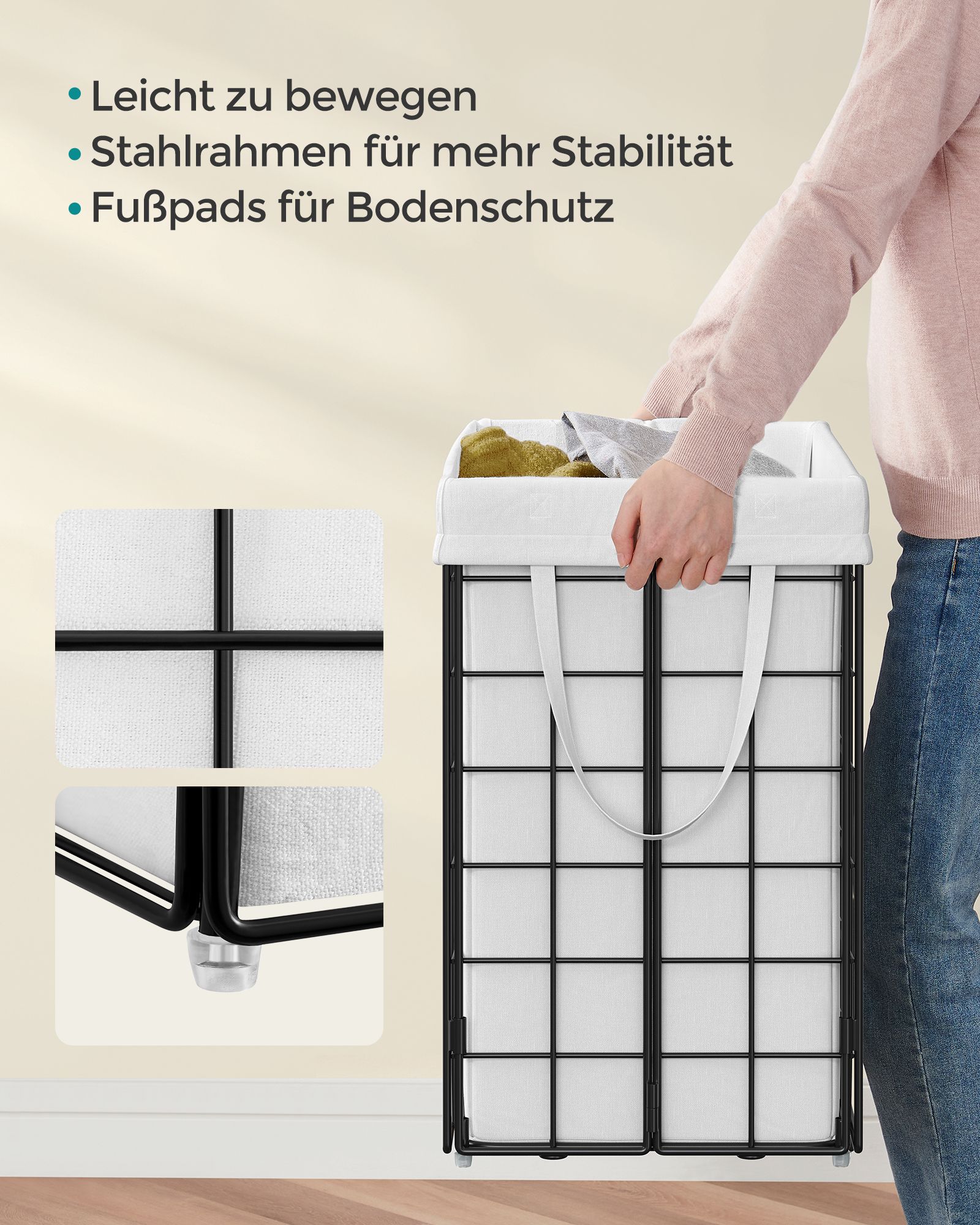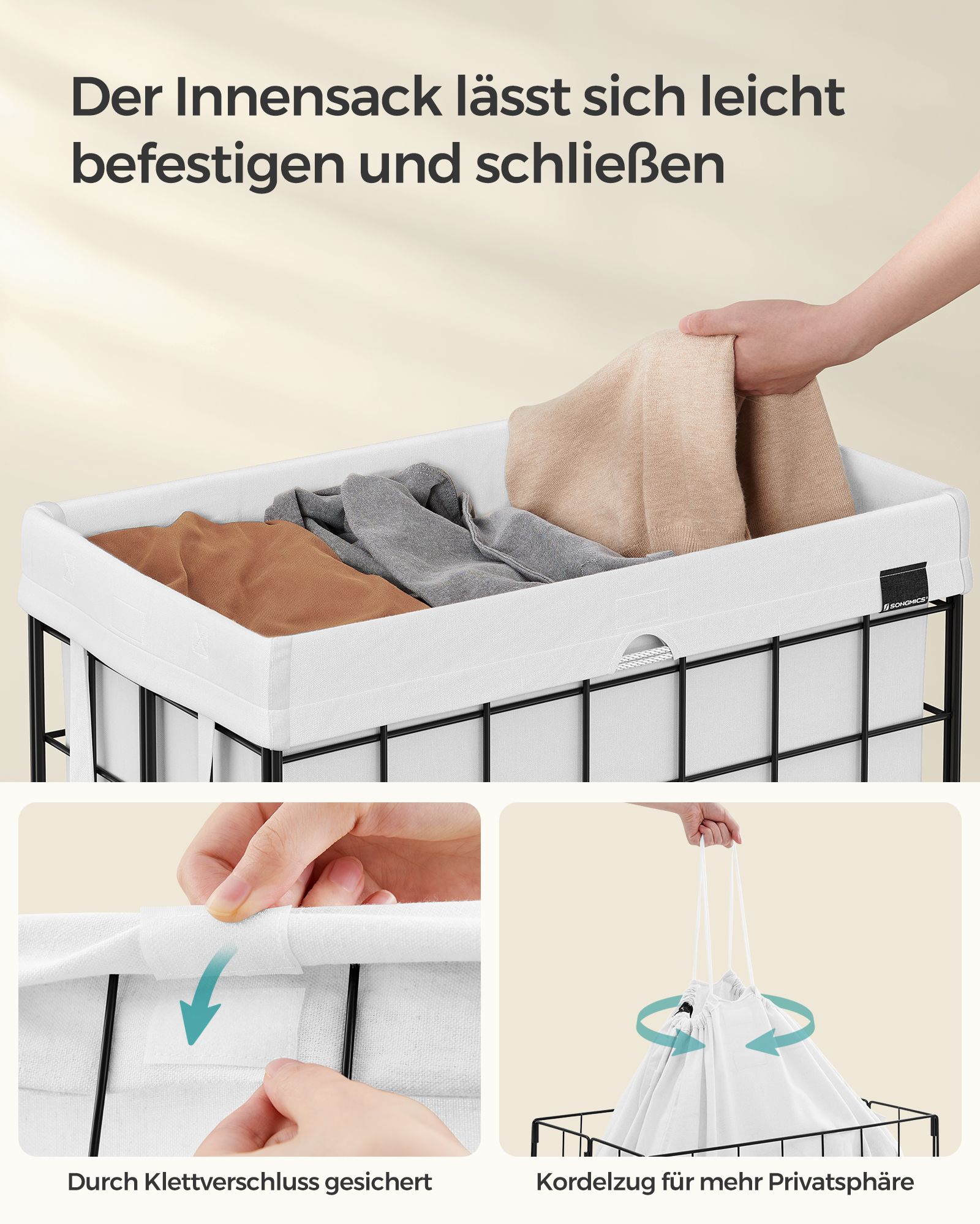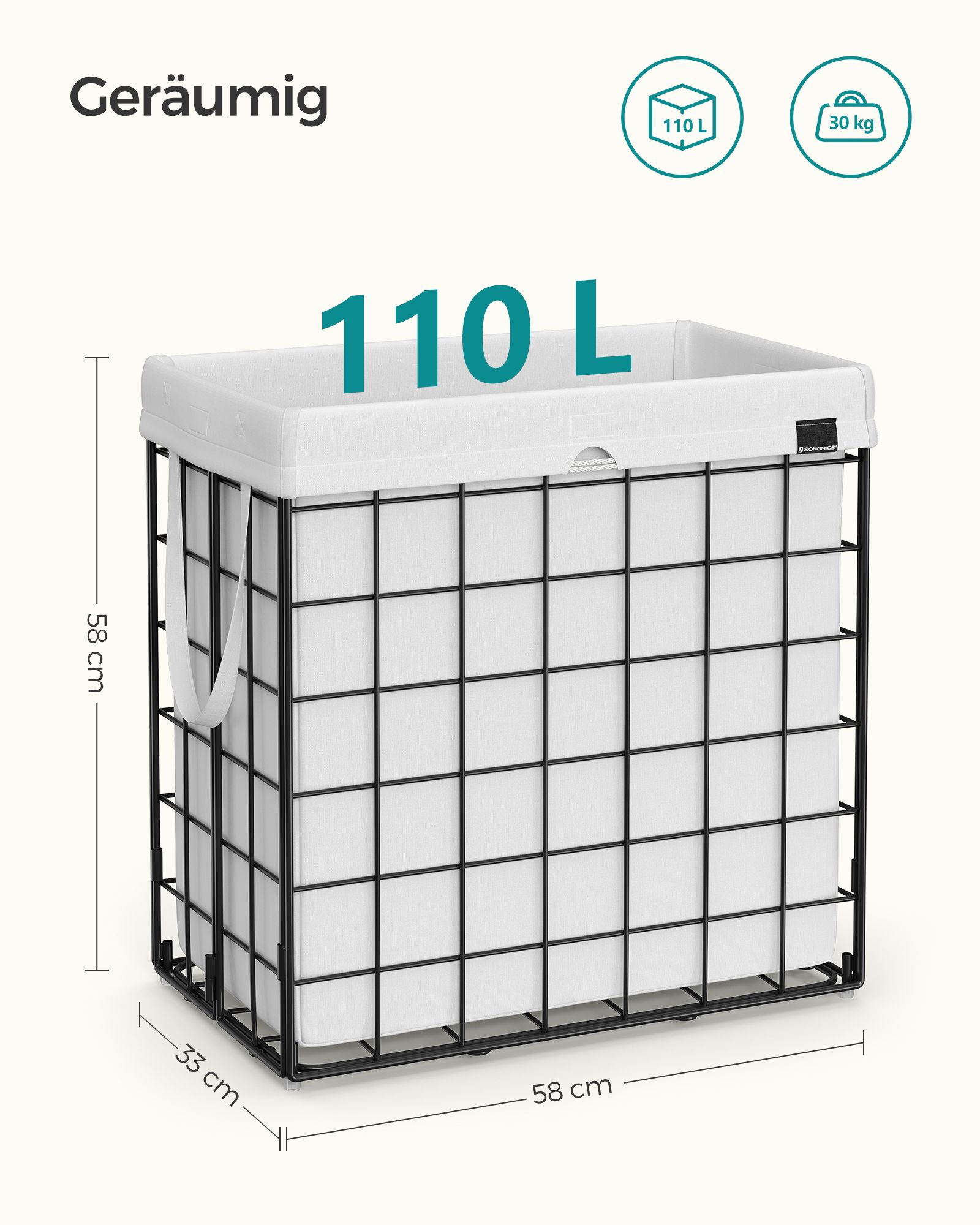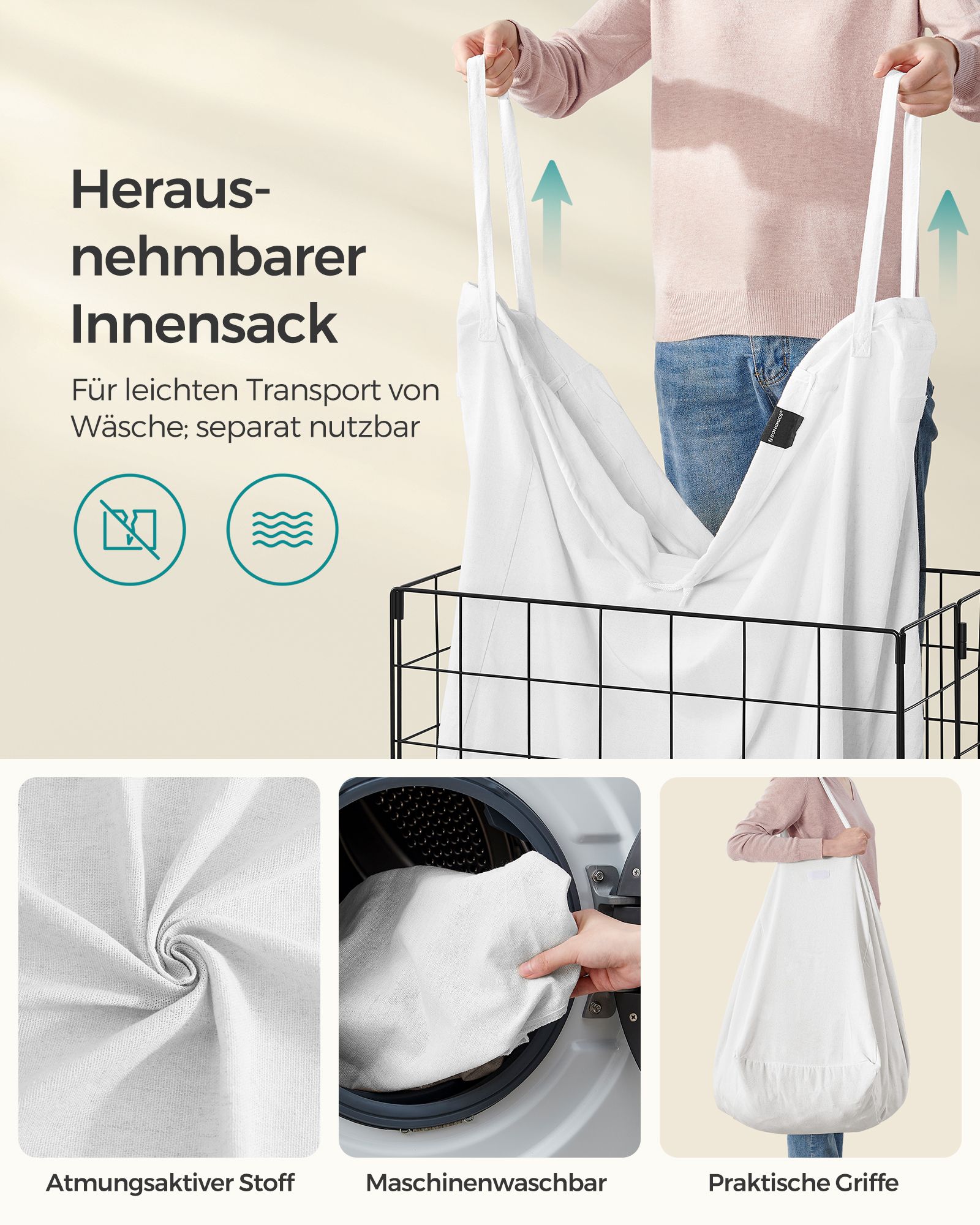 SONGMICS Laundry Basket 90L, Foldable Laundry Collector, Removable and Washable Laundry Bag, Metal Wire Frame, for Bedroom, Bathroom, Laundry Room, Black-Gray LCB190G01