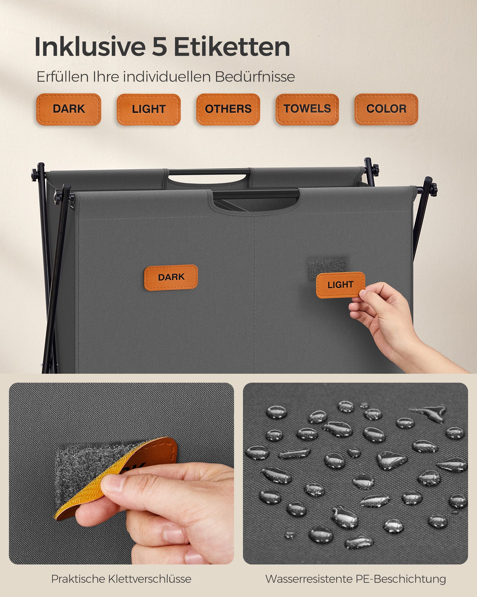 SONGMICS laundry basket, laundry collector 115 liters, laundry box, 2 compartments, foldable X-frame, individual labels, for laundry room, bedroom, bathroom, ink black LCB120B01