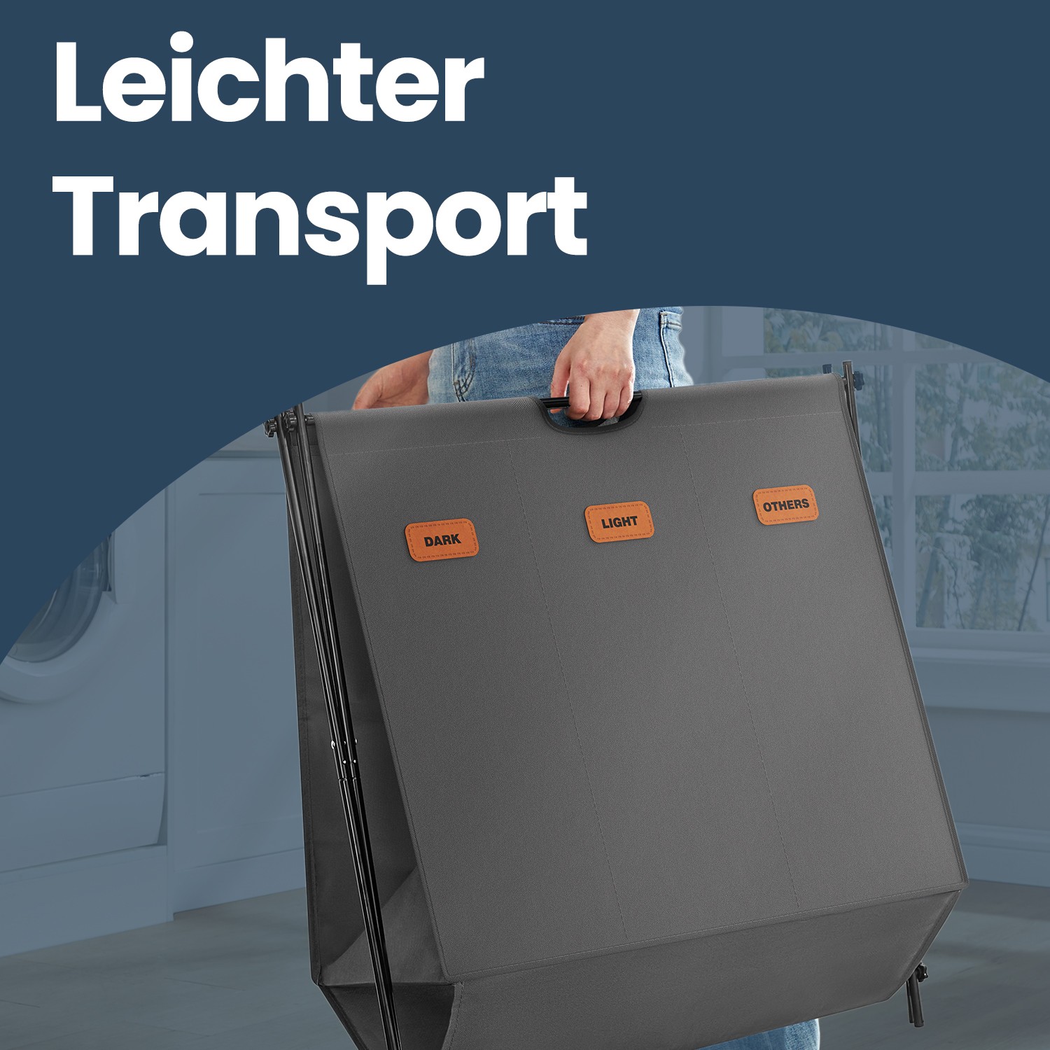 Laundry basket, laundry collector 155 liters, laundry box, 4 compartments, foldable X-frame, labels, for laundry room, bedroom, ink black