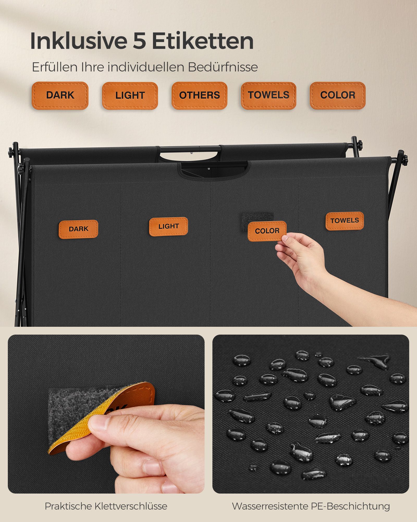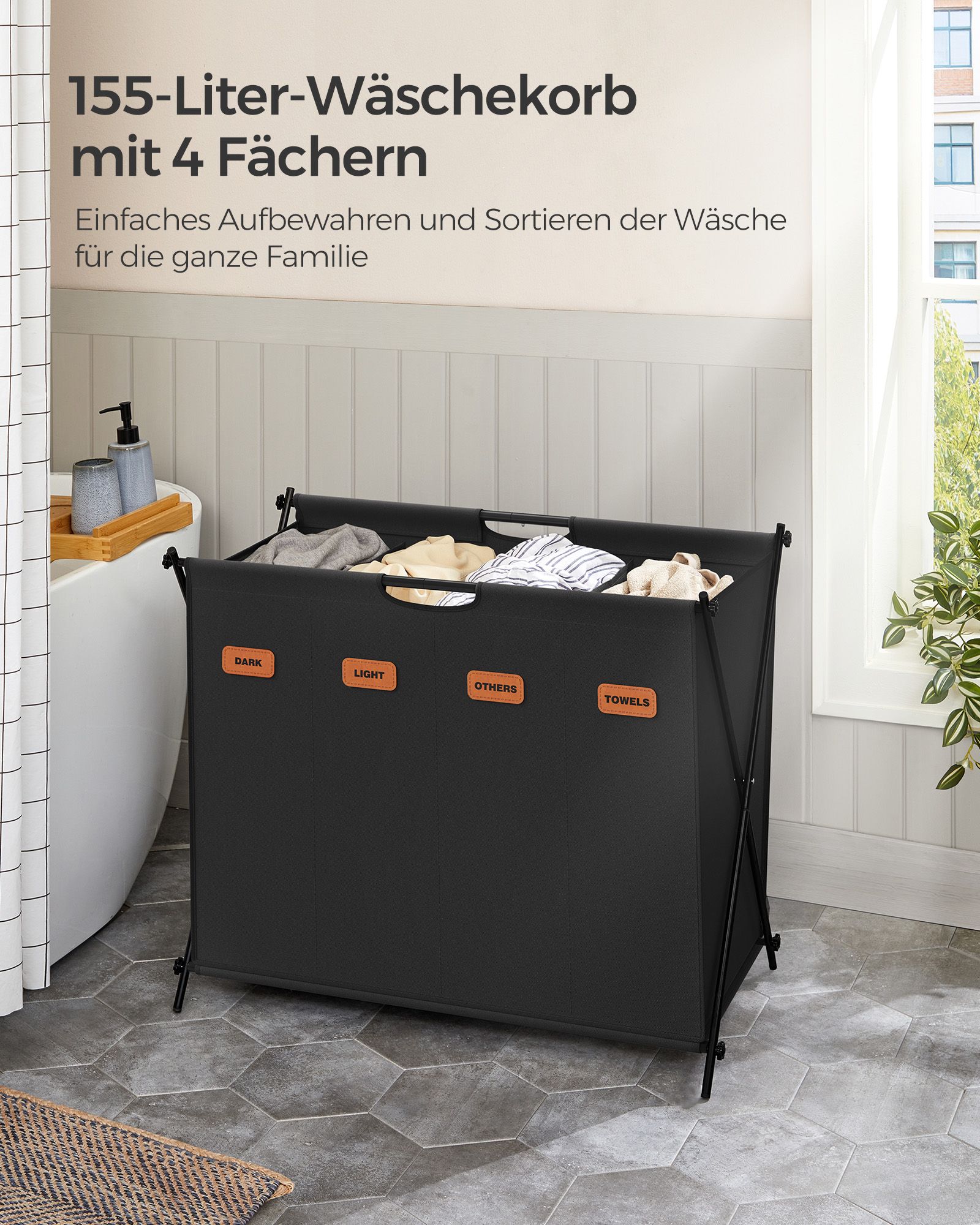 SONGMICS laundry basket, laundry collector 115 liters, laundry box, 2 compartments, foldable X-frame, individual labels, for laundry room, bedroom, bathroom, ink black LCB120B01