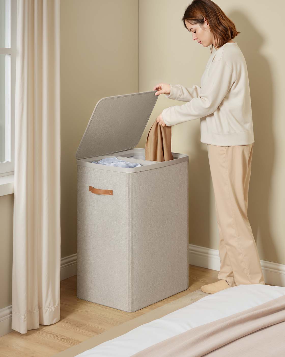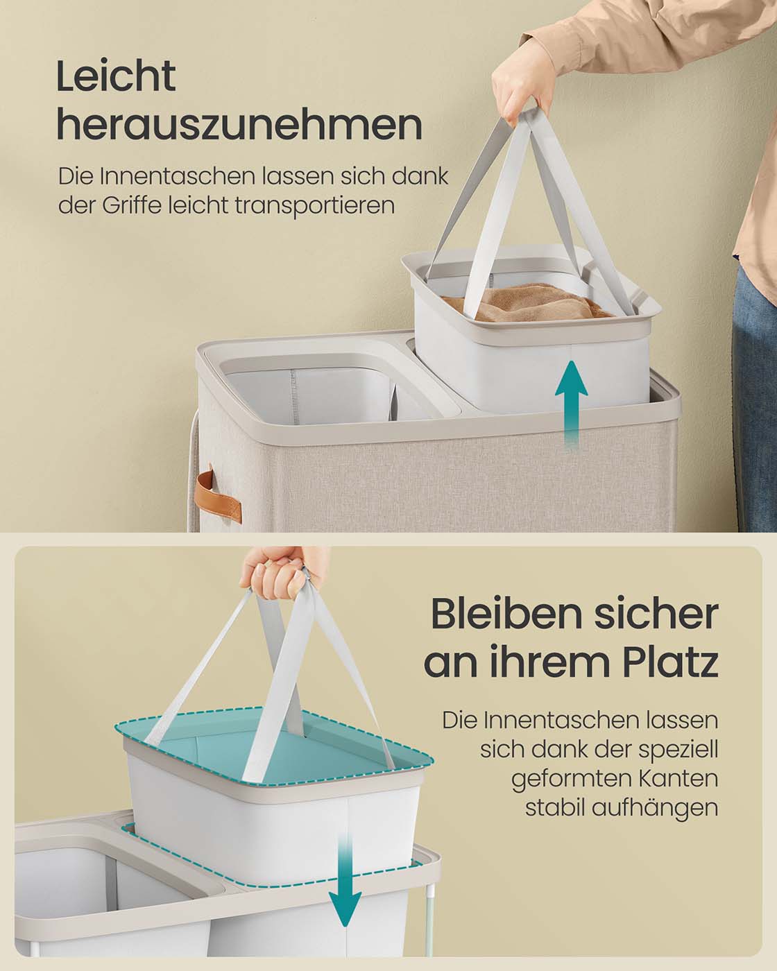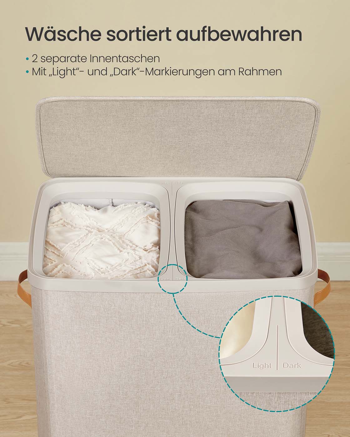 SONGMICS laundry basket, 170 L laundry collector, 2 compartments, laundry sorter, easy to assemble, with lid and handles, removable laundry bag, 56 x 40 x 75 cm, ink black LCB813B01