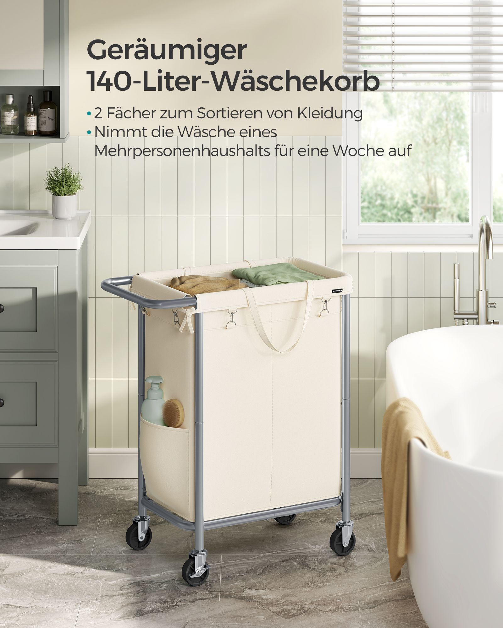 Be the first to review “SONGMICS laundry basket, 2 compartments, 140 liters, with handle, cream white”