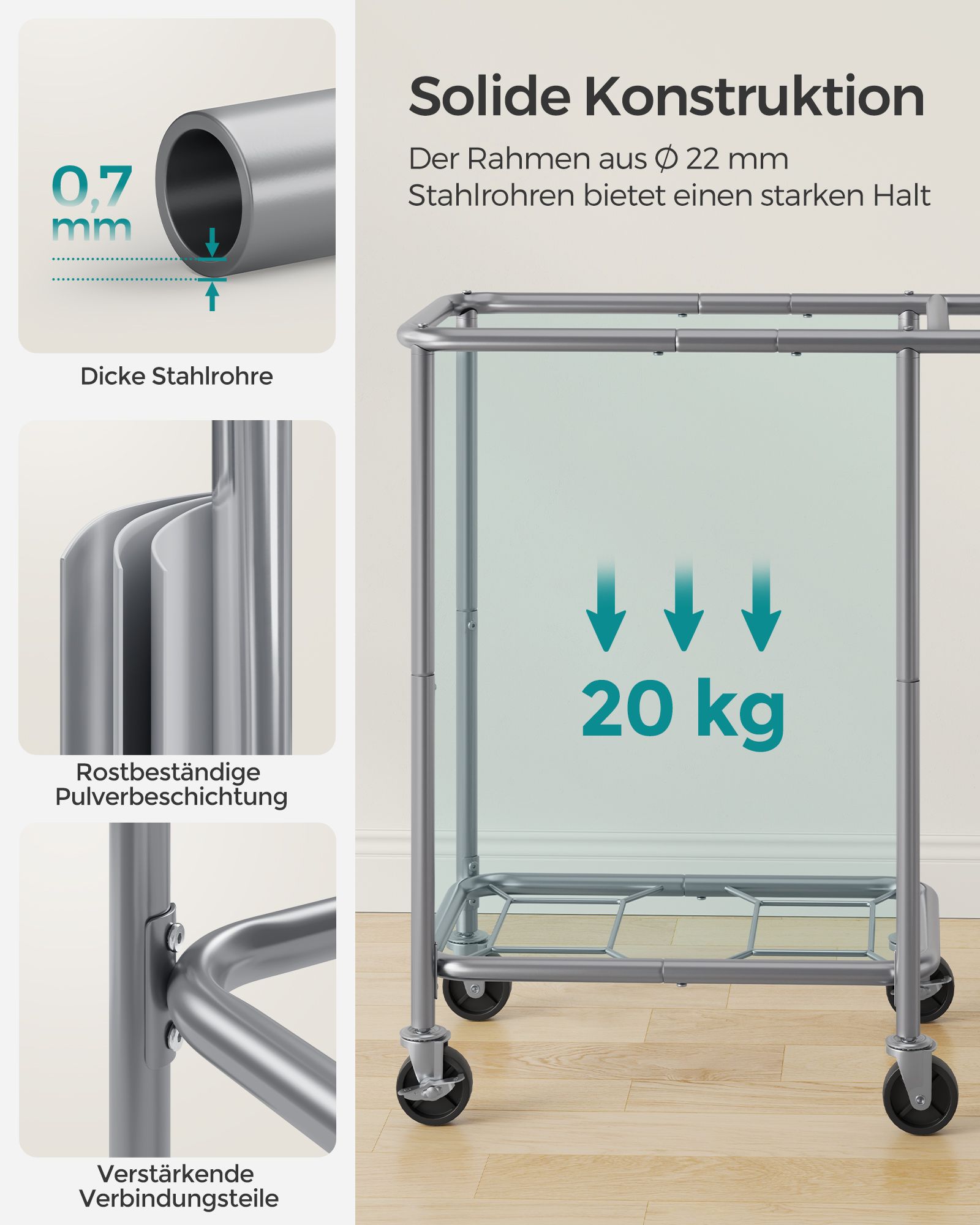 Max. static load capacity: 20 kg