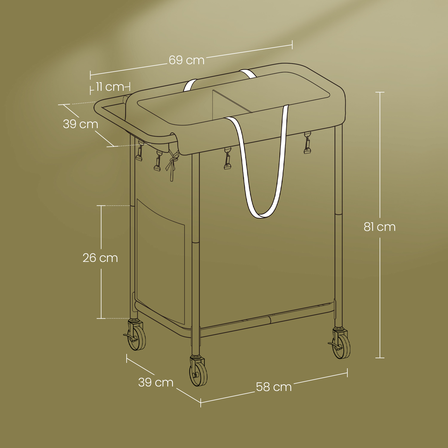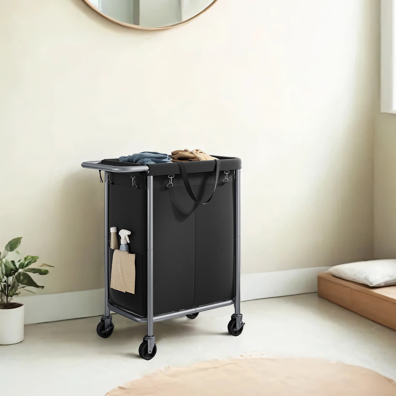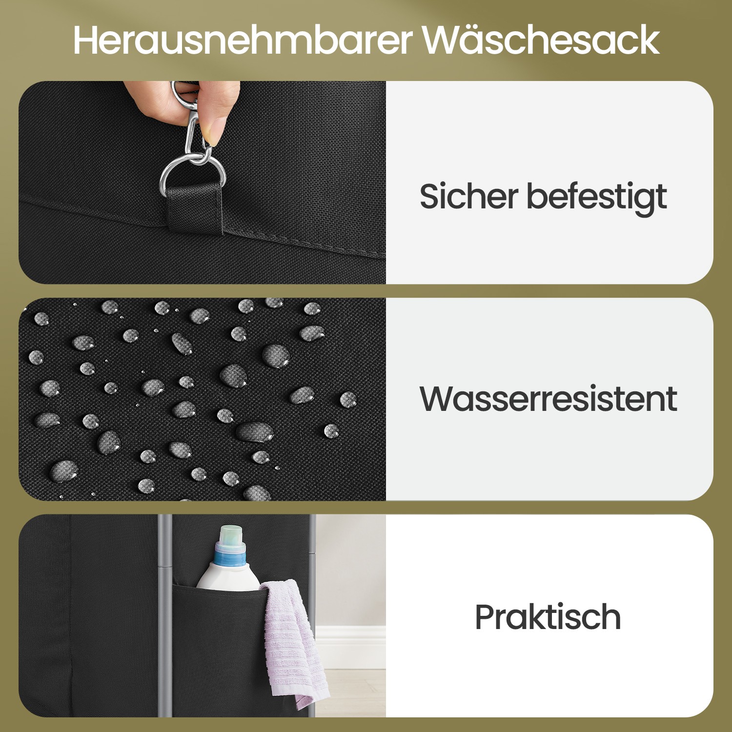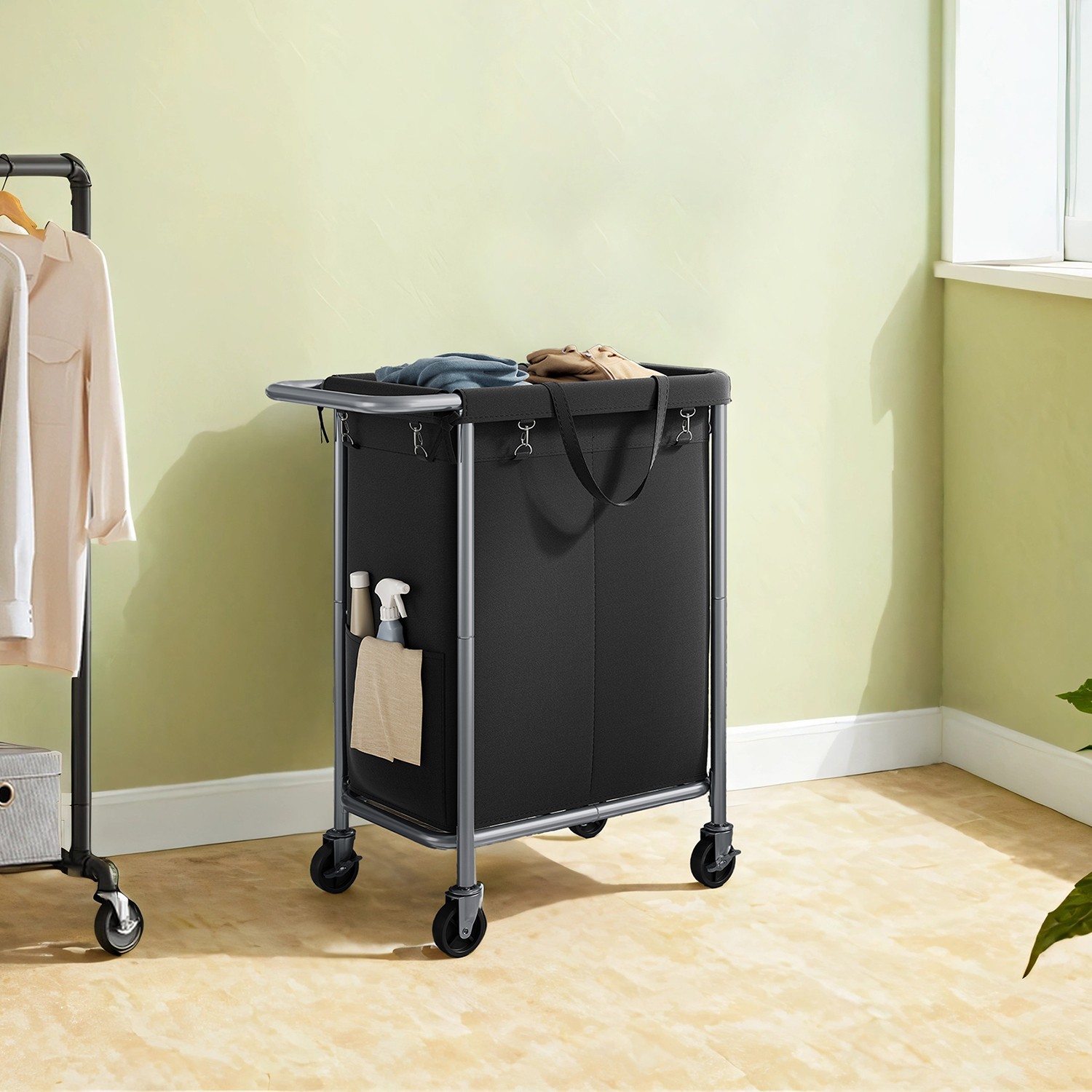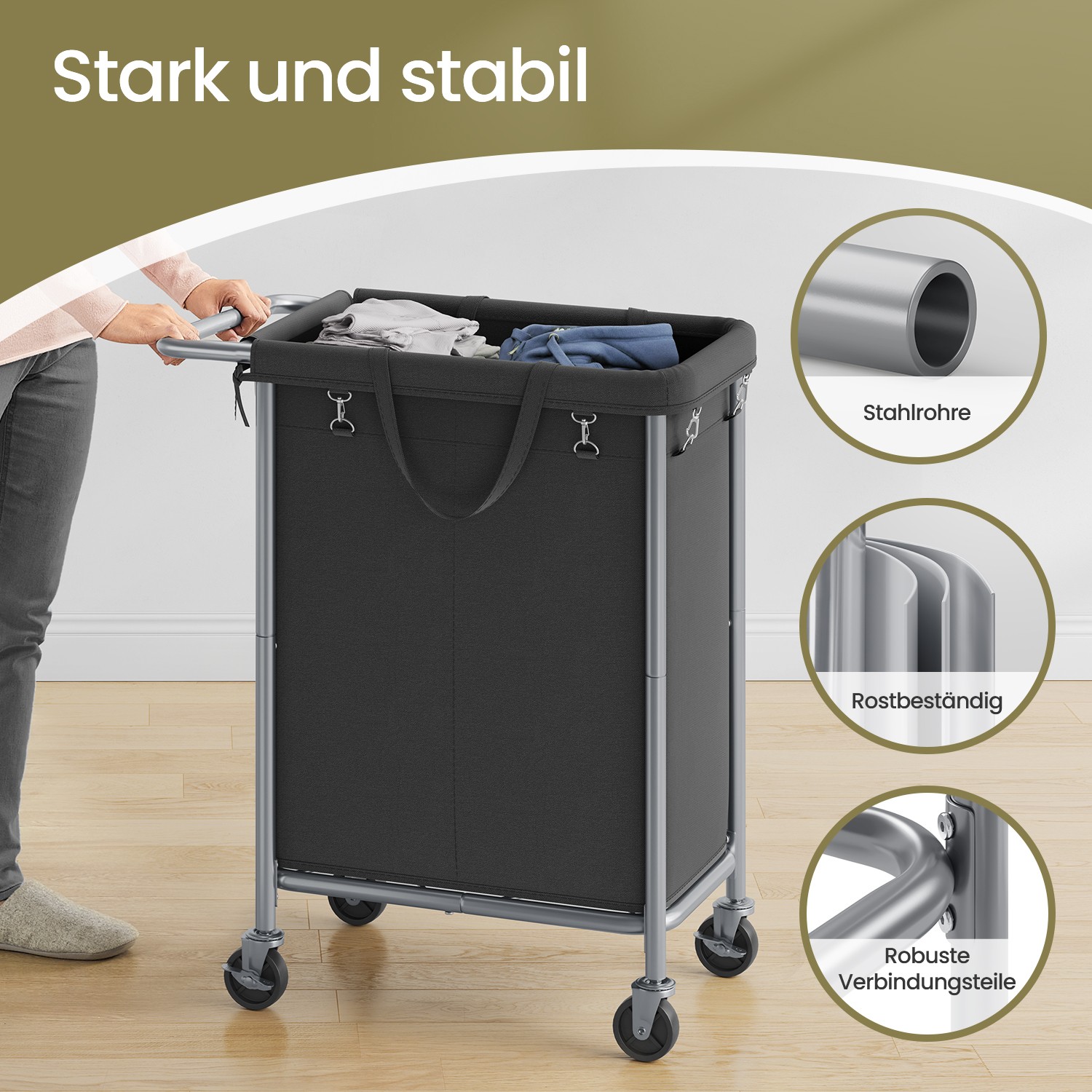 SONGMICS laundry basket, 90 liters, laundry collector with casters, laundry cart, removable laundry bag, steel frame, with handle, spacious