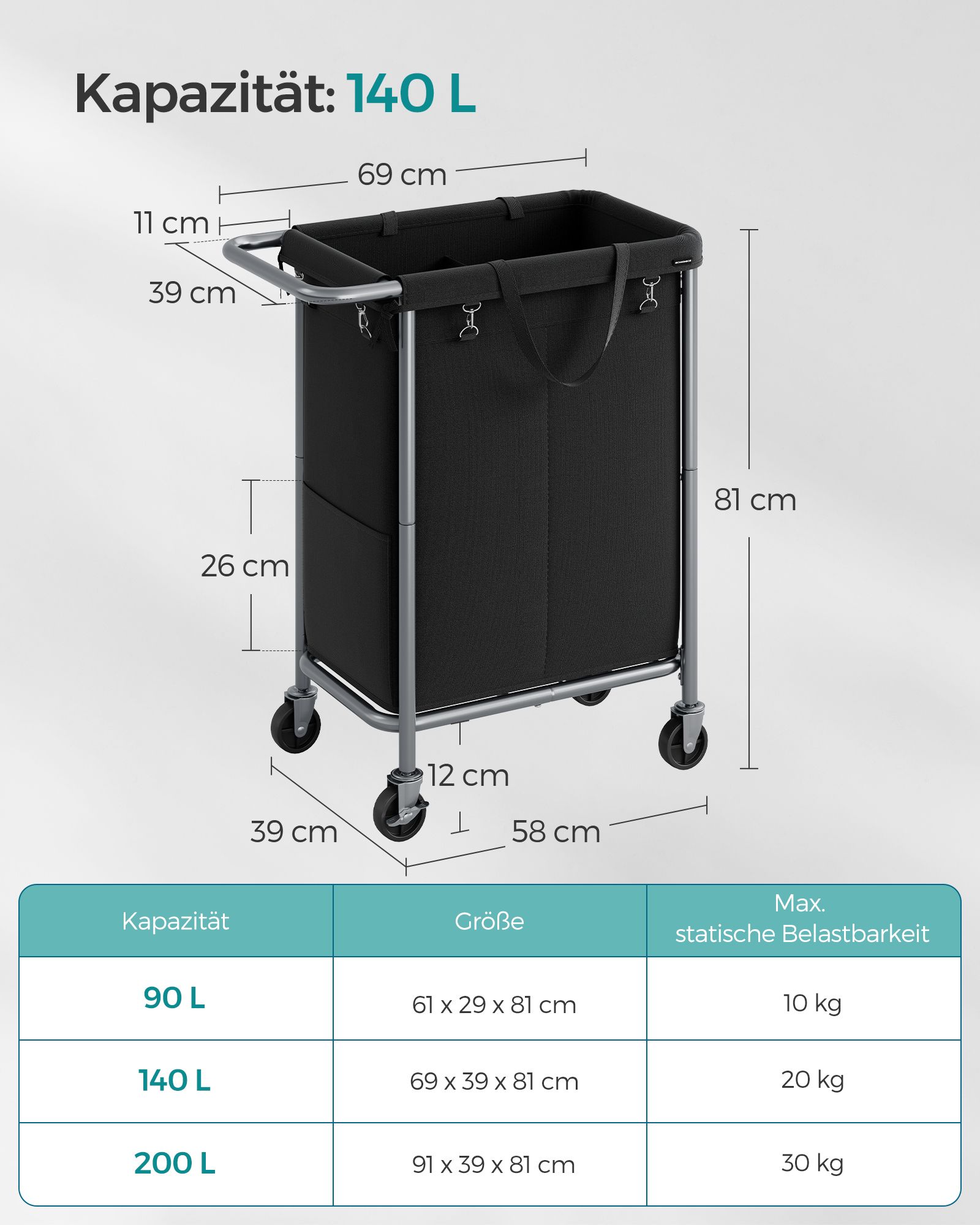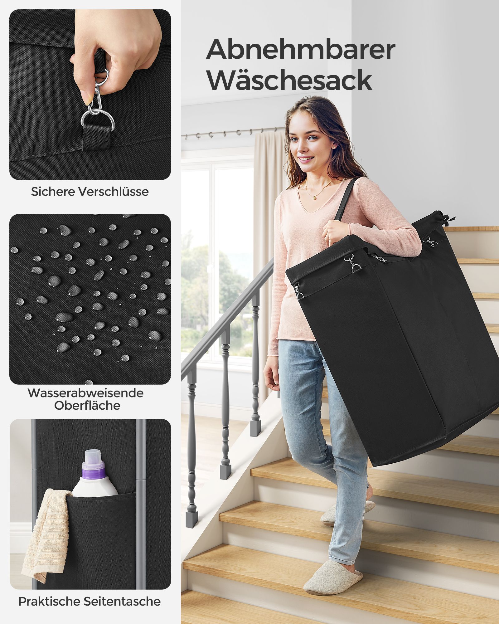 SONGMICS laundry basket, 90 liters, laundry collector with casters, laundry cart, removable laundry bag, steel frame, with handle, spacious