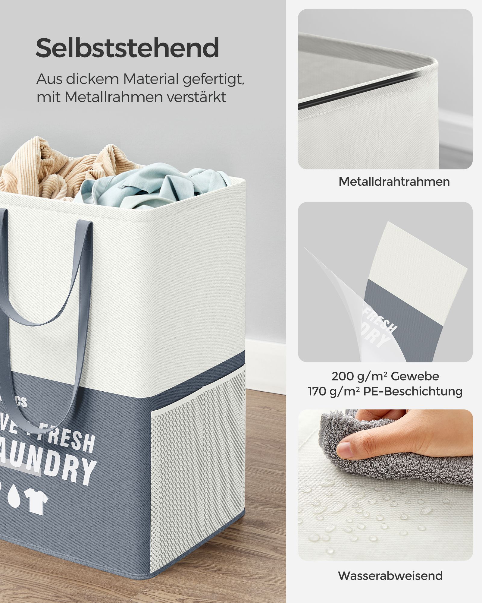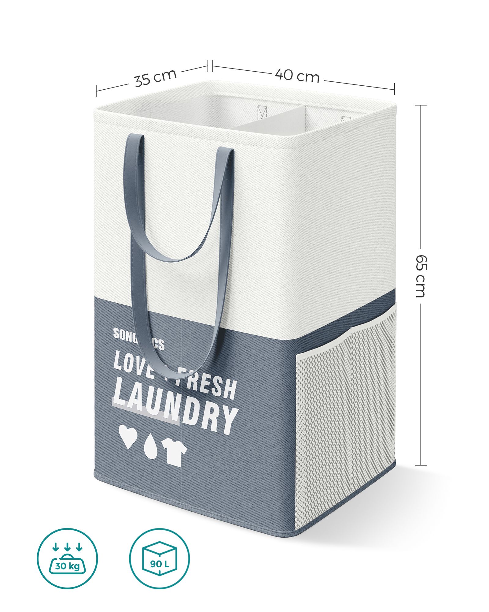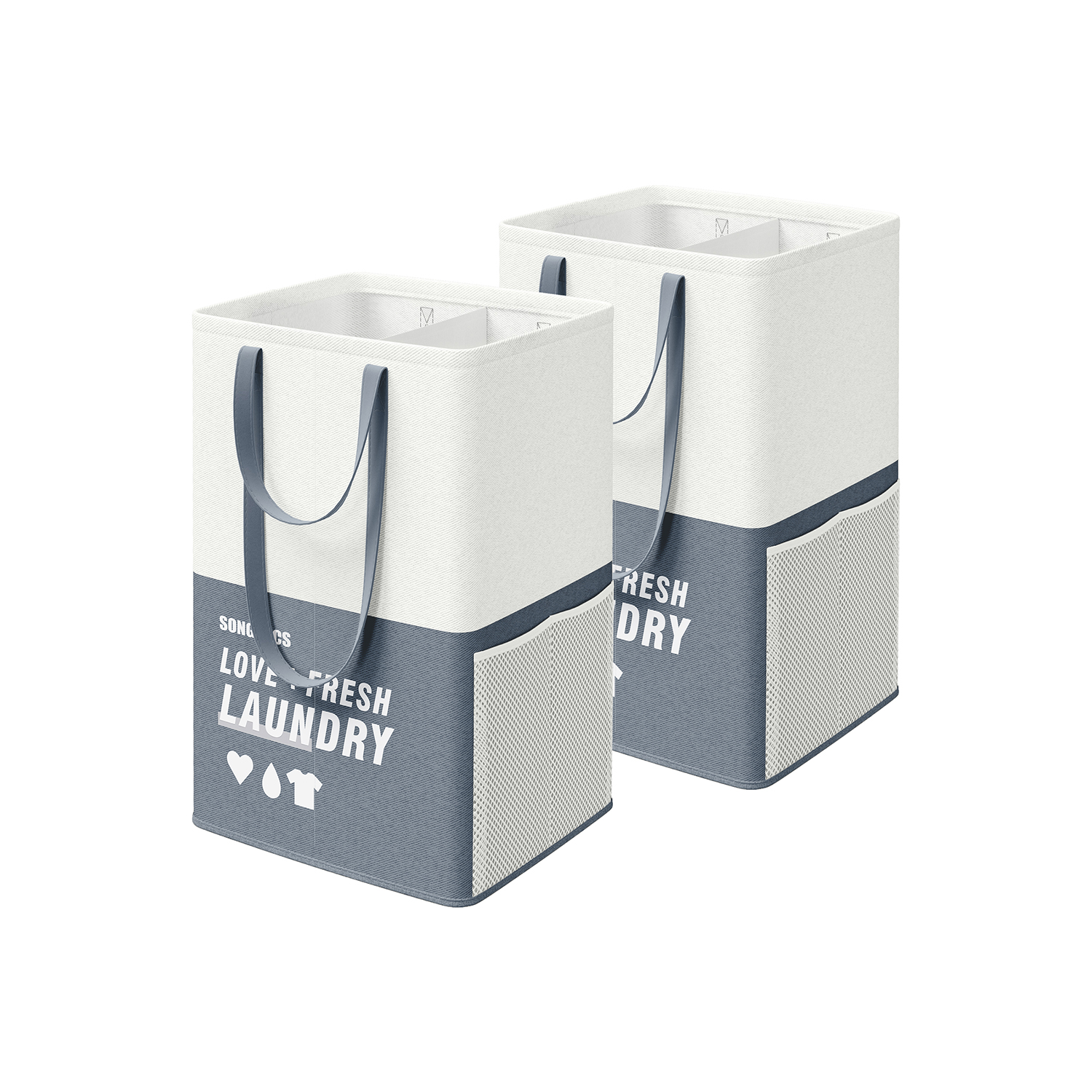 SONGMICS laundry basket 2 compartments, 90 liters, large laundry collector, laundry bag, standing, foldable, laundry sorter, 2 short, 2 long handles, laundry room, bedroom, bathroom, light gray LCB209G11
