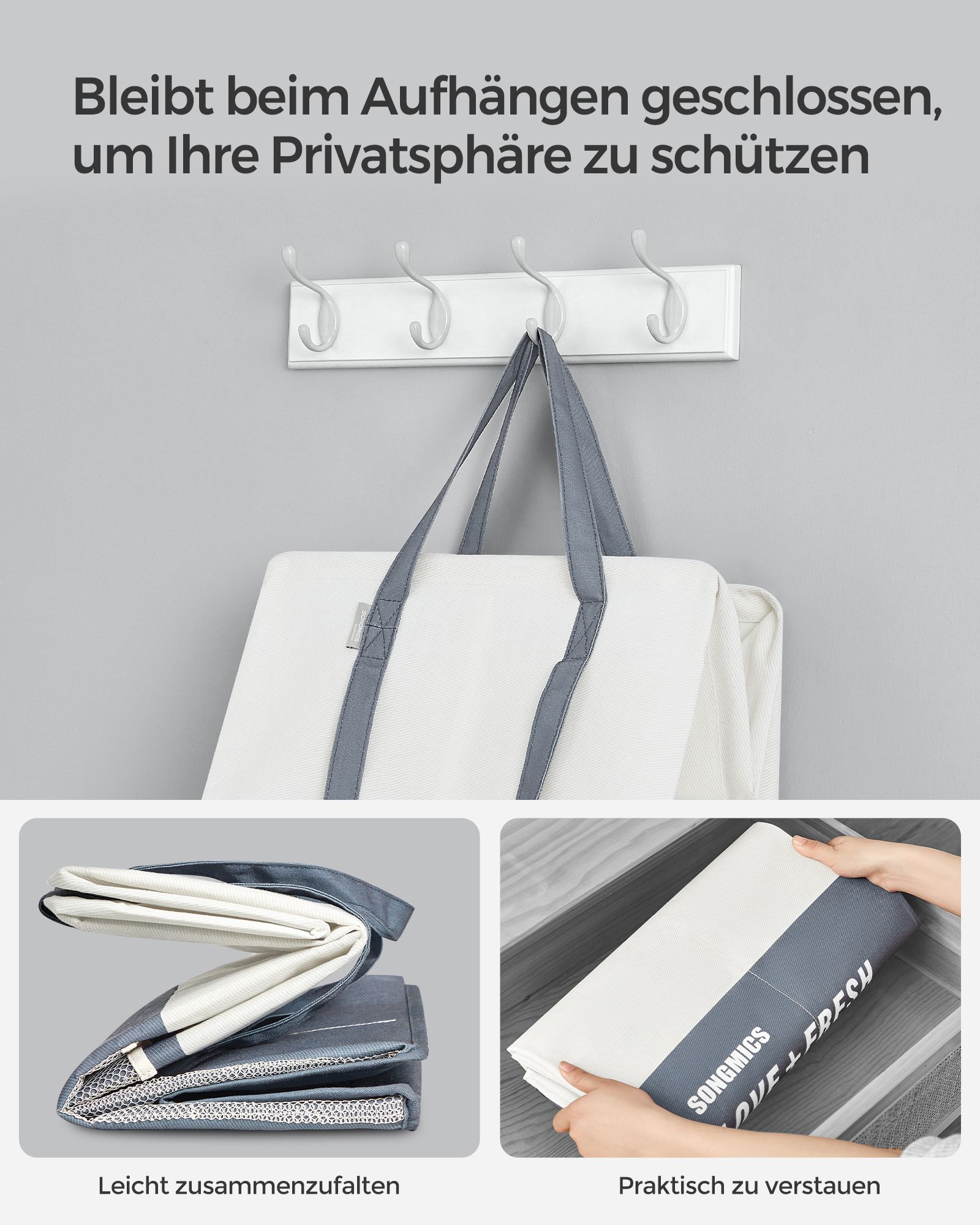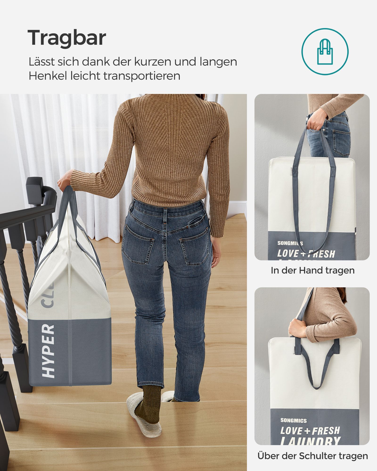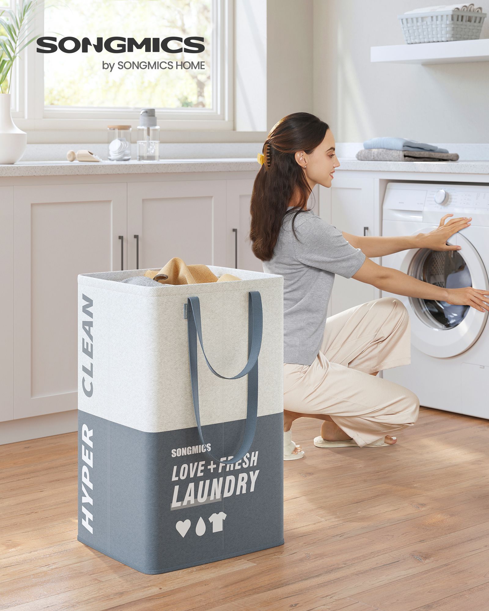 SONGMICS laundry basket 2 compartments, 90 liters, large laundry collector, laundry bag, standing, foldable, laundry sorter, 2 short, 2 long handles, laundry room, bedroom, bathroom, light gray LCB209G11