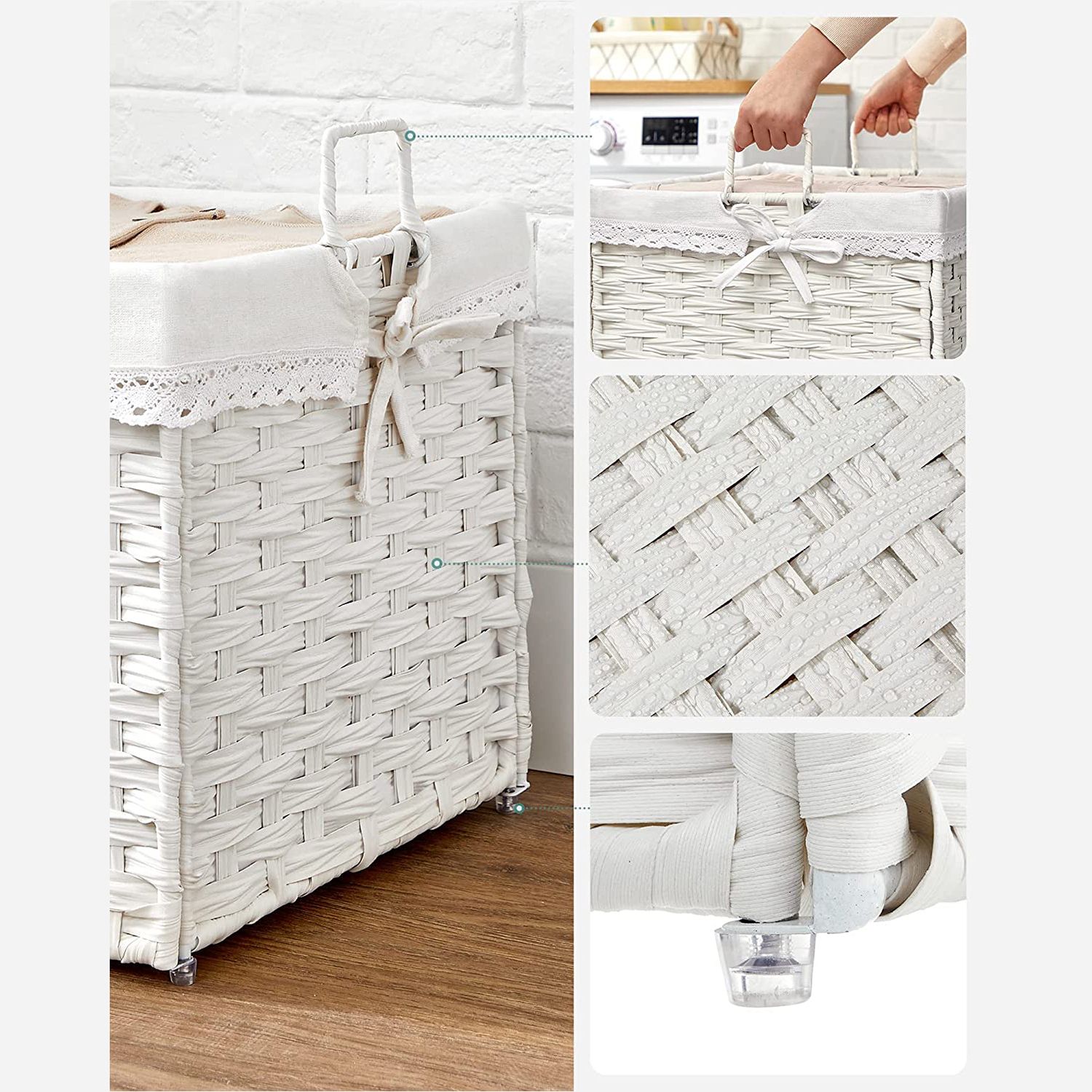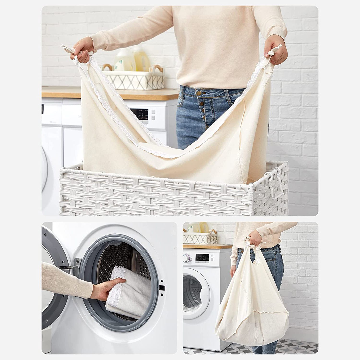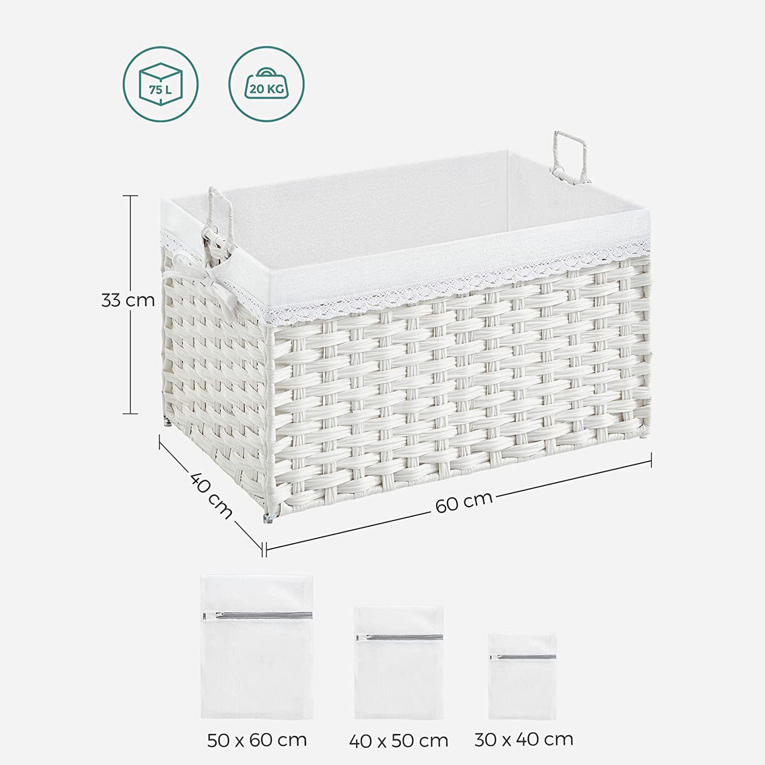 SONGMICS Laundry Basket 75L, Laundry Collector, Removable Inner Bag, 2 Fabric Laundry Bags, 3 Laundry Nets, Handles, Rattan Look, Toy Storage, for Bathroom, Bedroom, White RST375W01