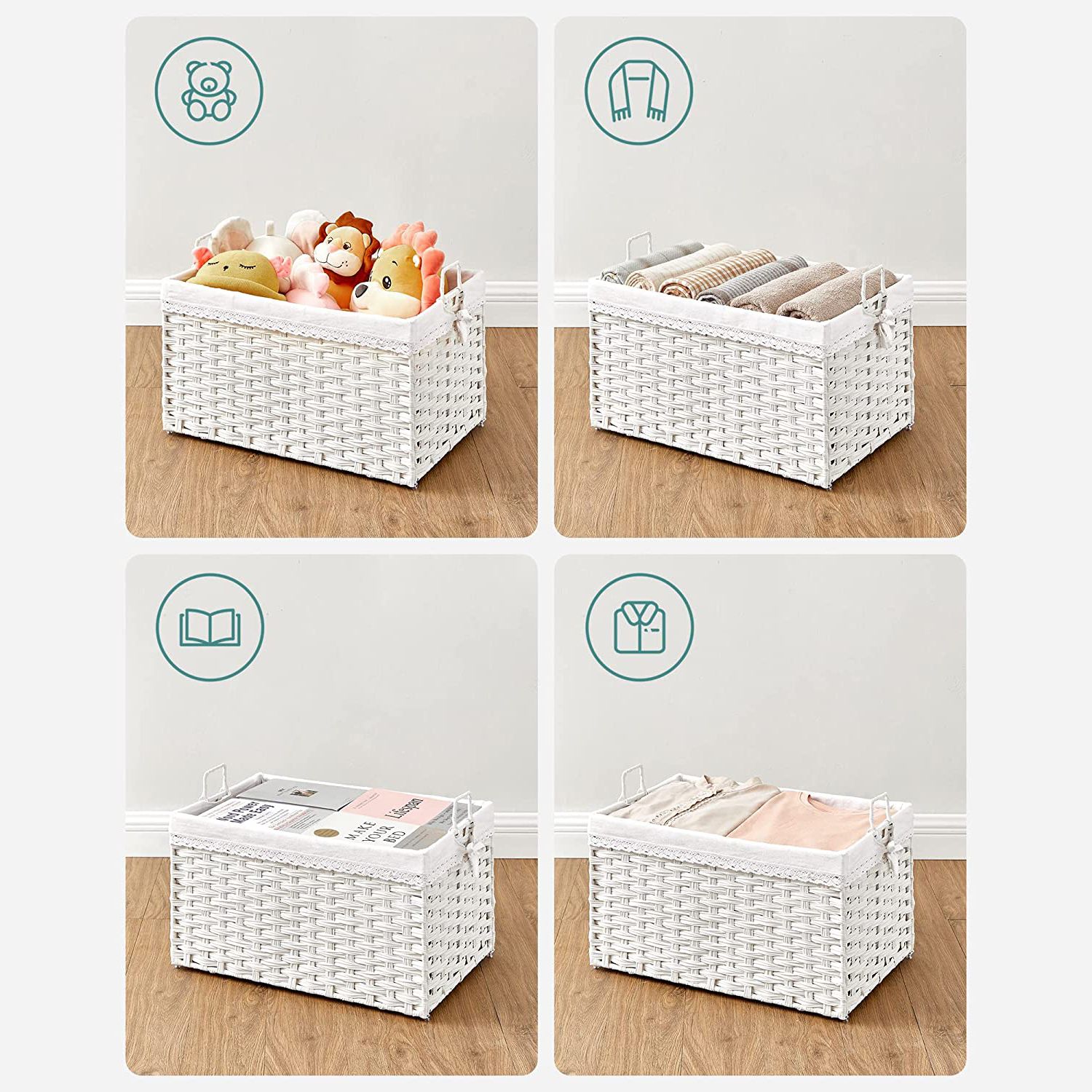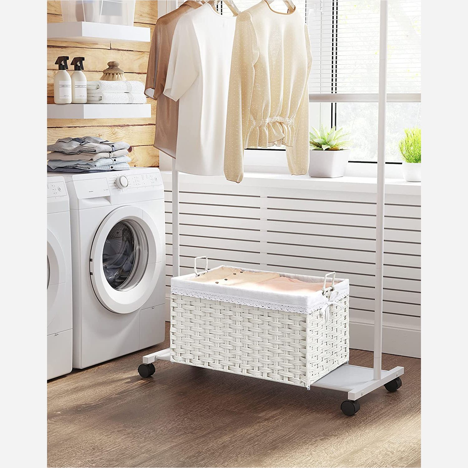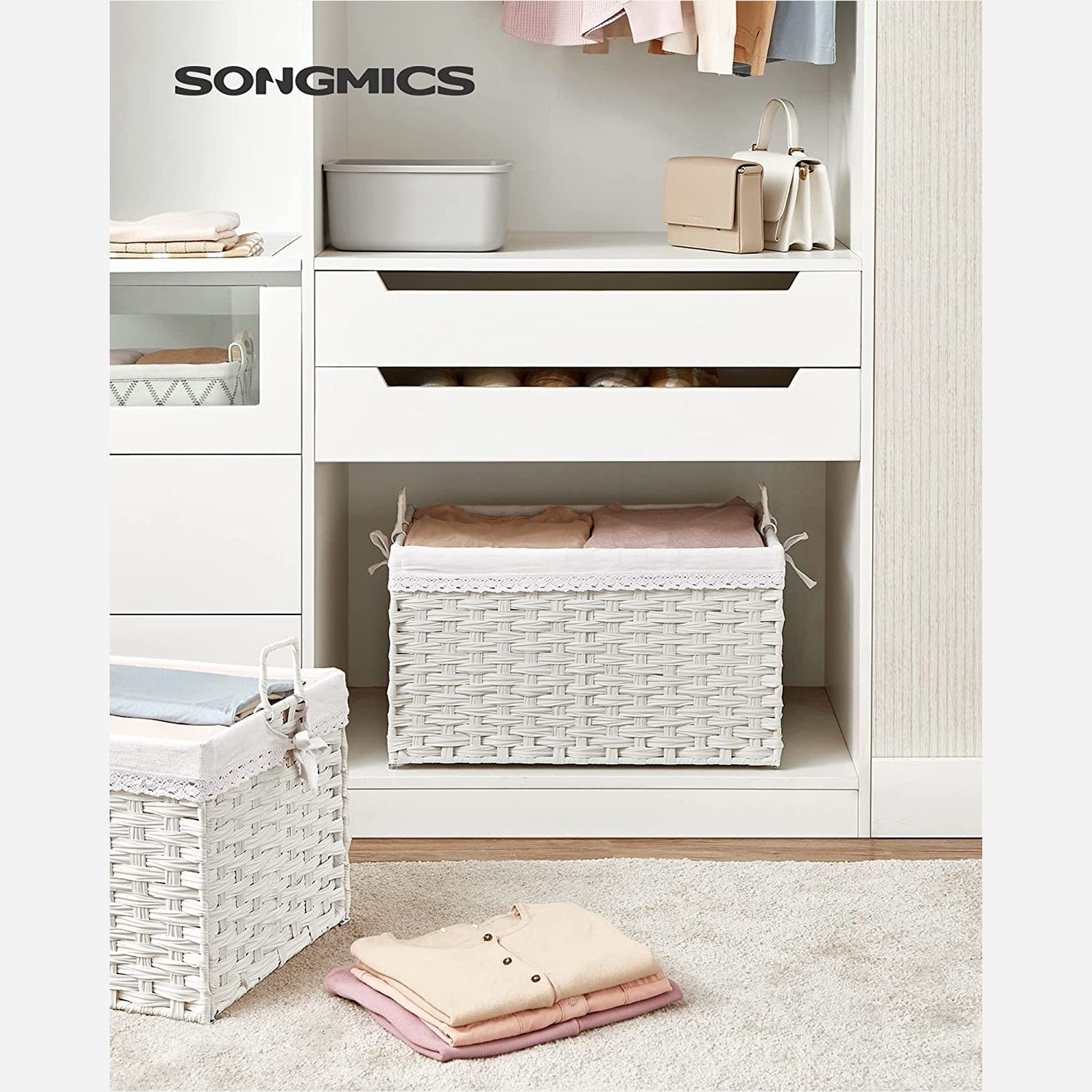 SONGMICS Laundry Basket 75L, Laundry Collector, Removable Inner Bag, 2 Fabric Laundry Bags, 3 Laundry Nets, Handles, Rattan Look, Toy Storage, for Bathroom, Bedroom, White RST375W01