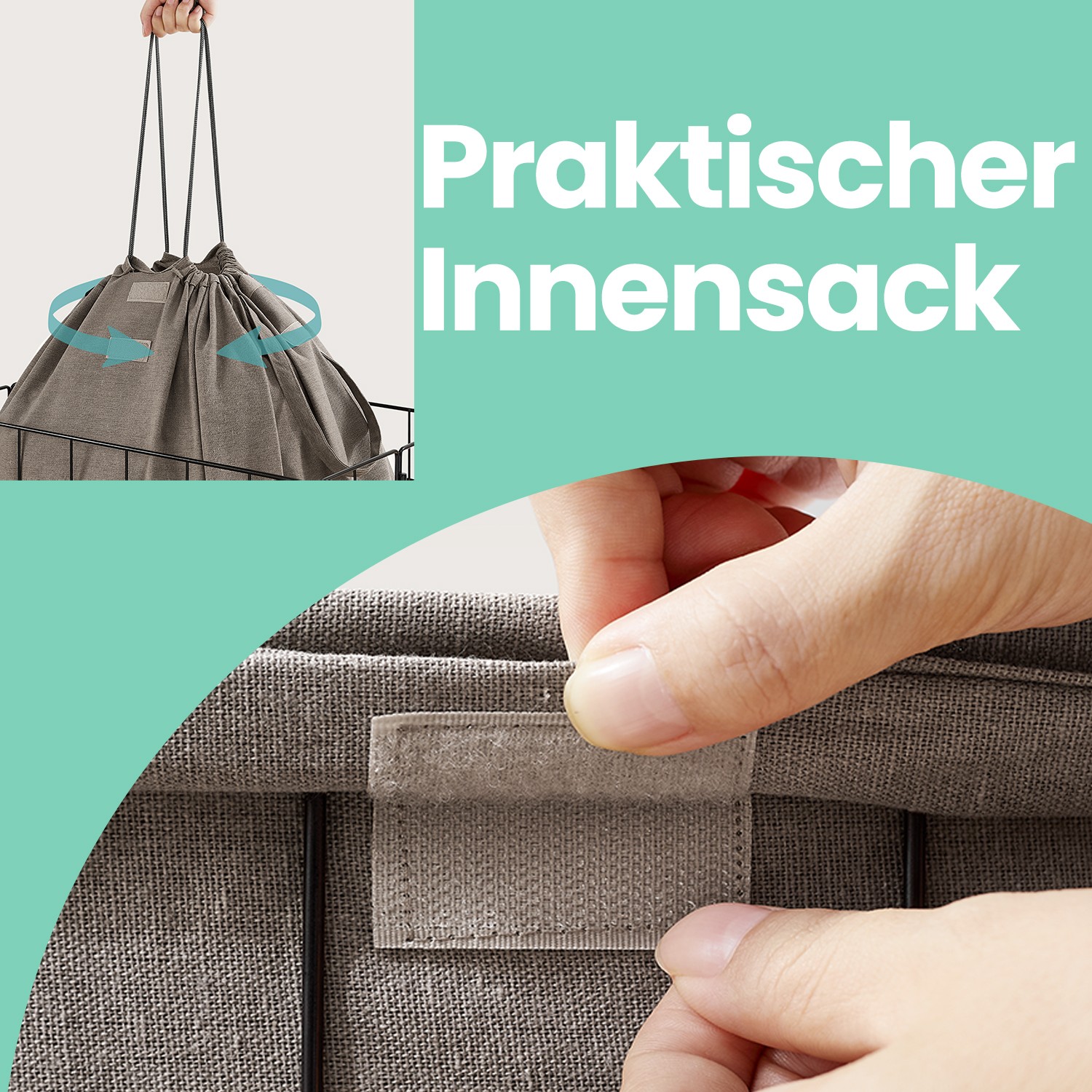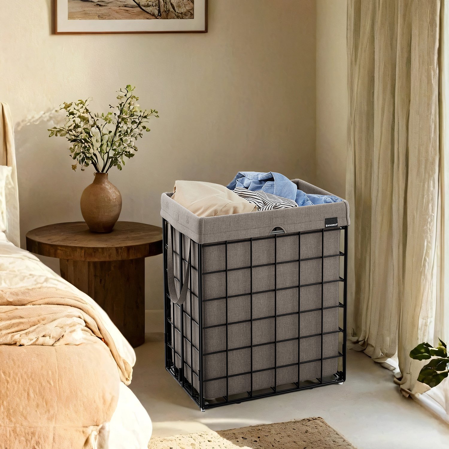 SONGMICS laundry basket 90L, foldable laundry collector, removable and washable laundry bag, metal wire frame, for bedroom, bathroom, laundry room, black-gray LCB190G01