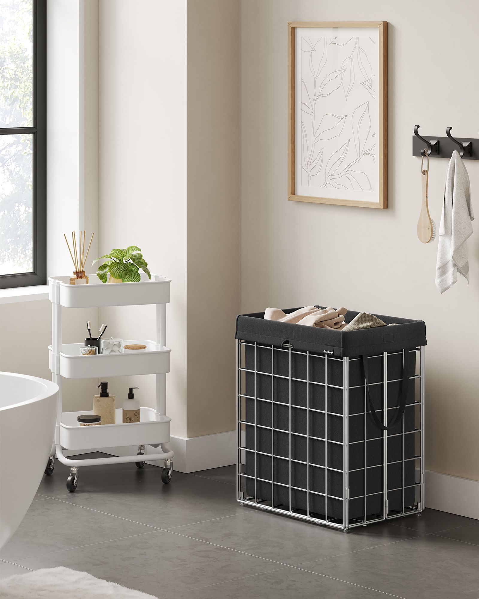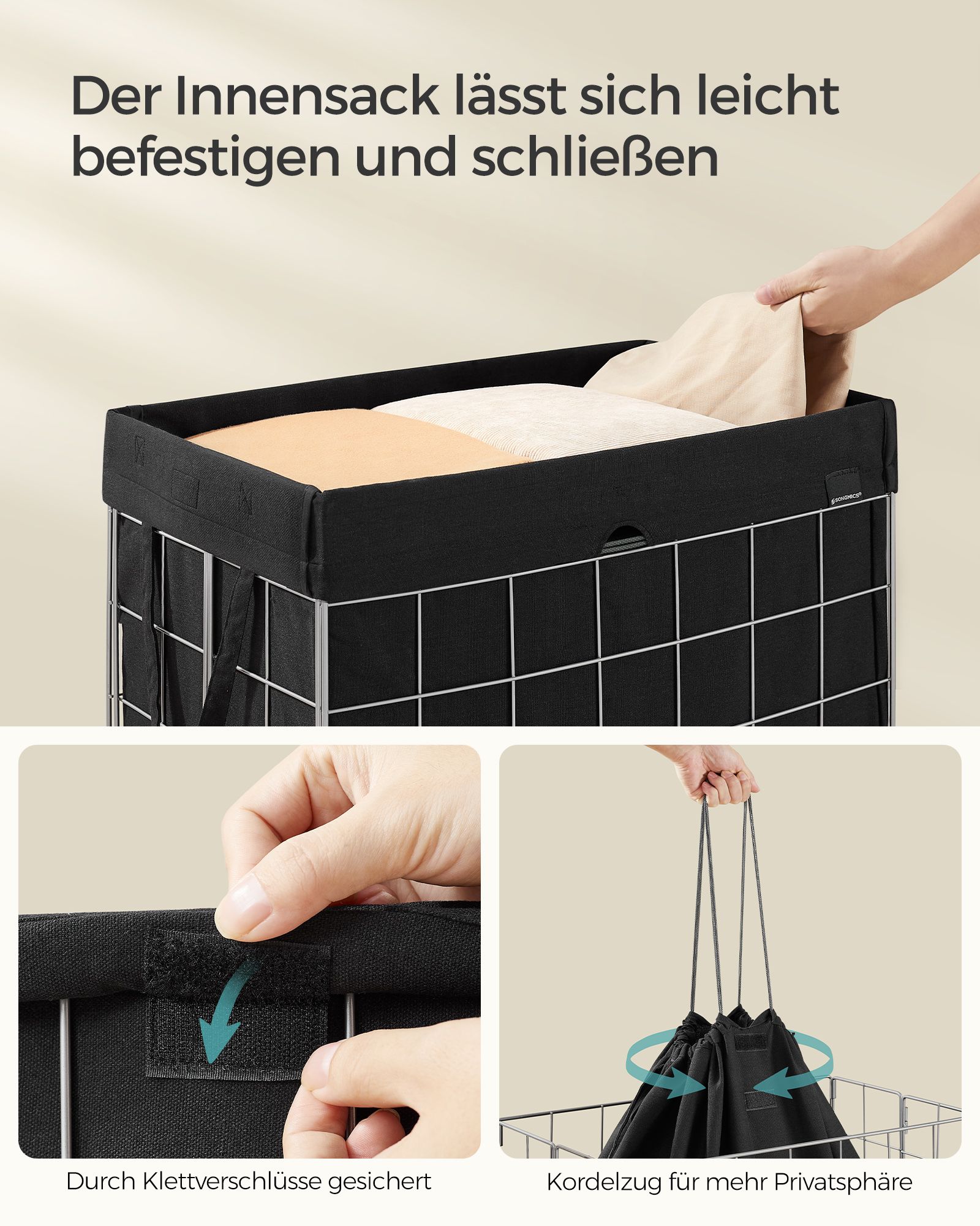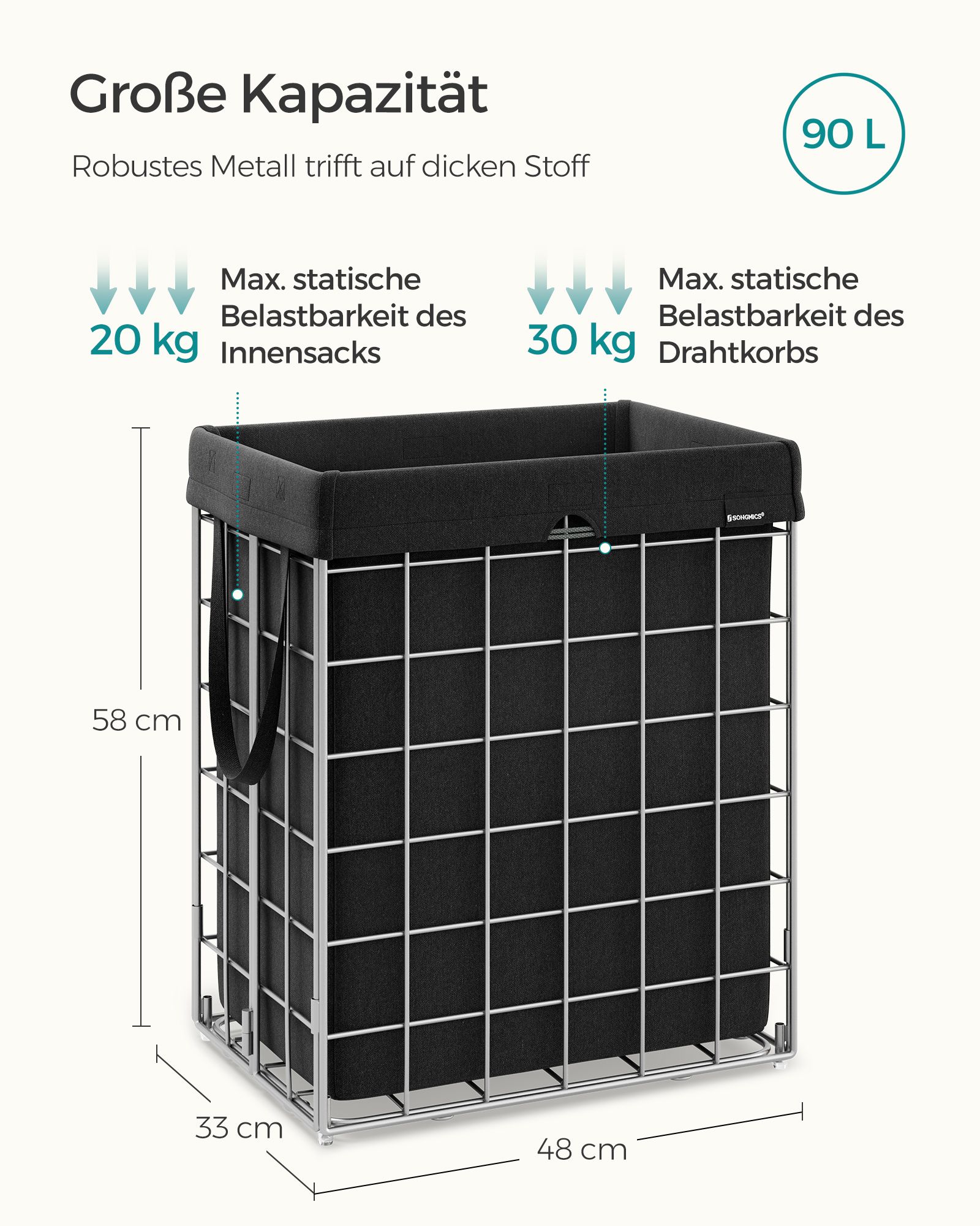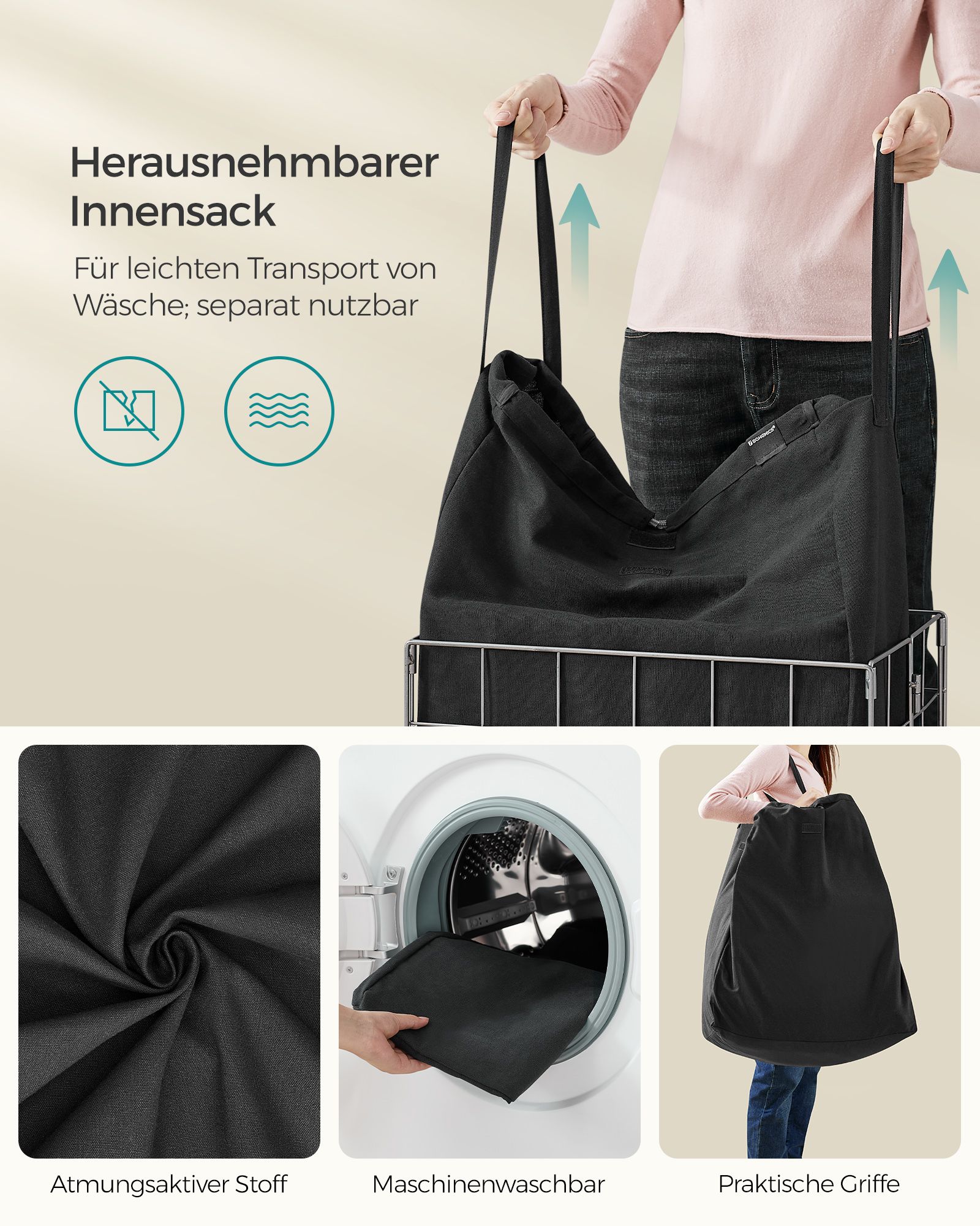 SONGMICS Laundry Basket 90L, Foldable Laundry Collector, Removable and Washable Laundry Bag, Metal Wire Frame, for Bedroom, Bathroom, Laundry Room, Black-Gray LCB190G01